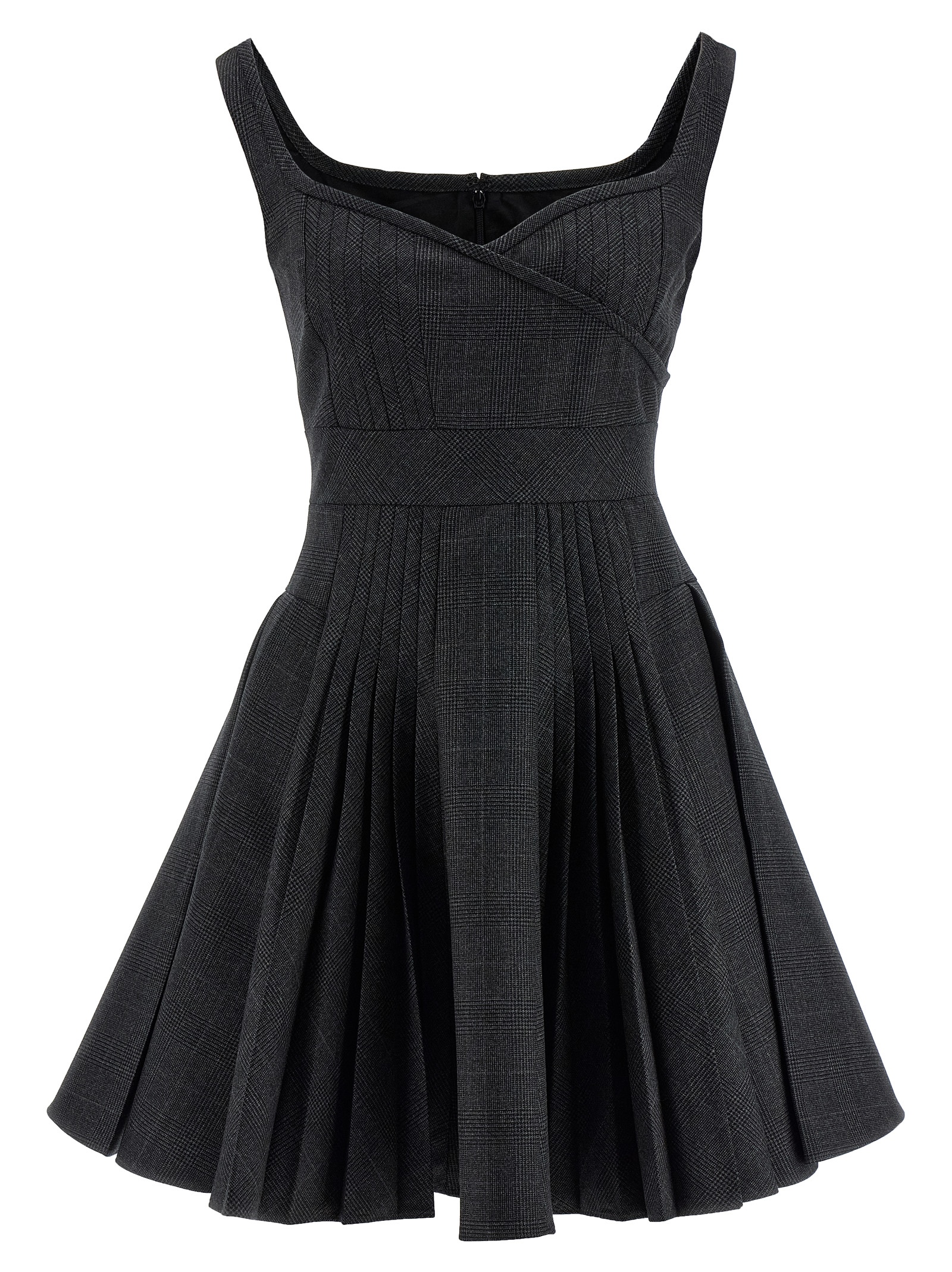 Prince of Wales mini dress with sweetheart neckline, shoulder straps, flared skirt with pleats, back zip closure.Характеристики товара