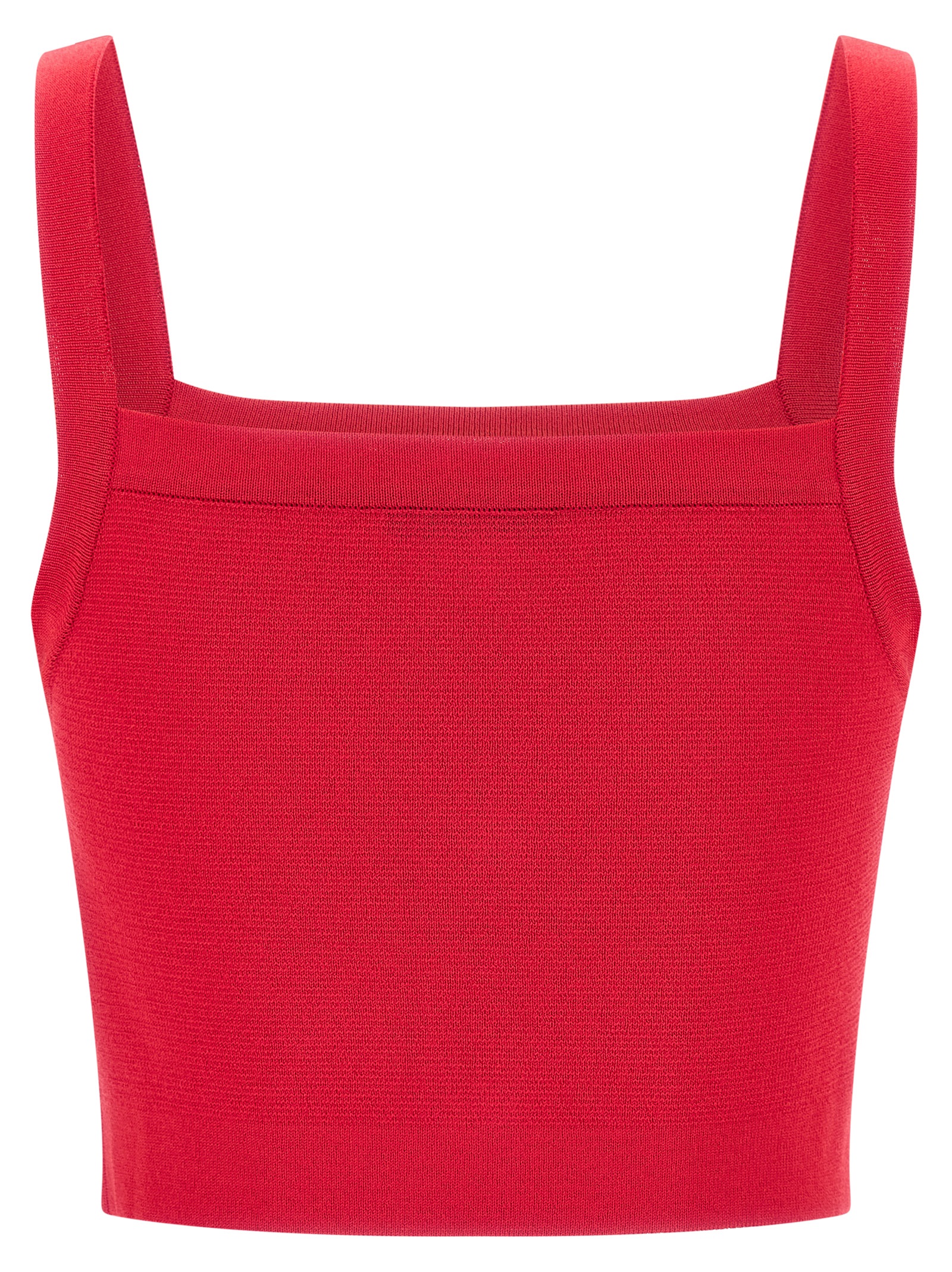 Shiny effect viscose knit top with 3 front 'Testa di leone' cropped button detail with thin straps.