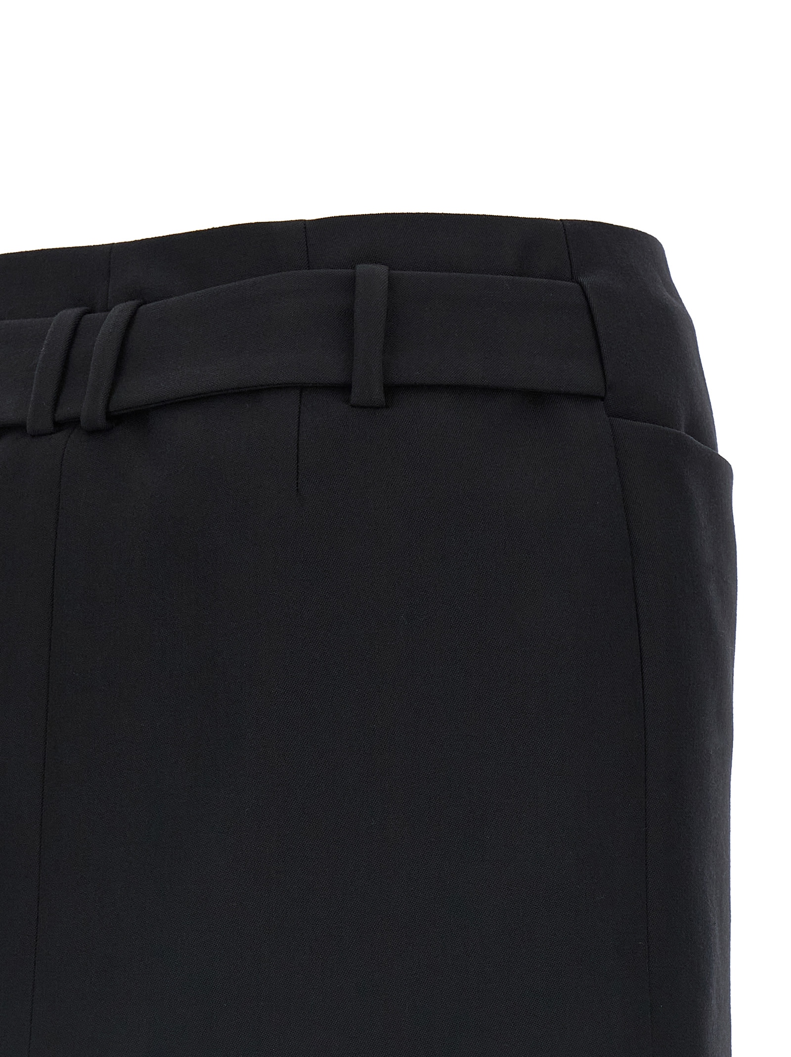Wallet mini skirt in grain de poudre wool with snap button closure and front split, pockets, belt with antiqued effect metal 'Anthem' buckle, lining.