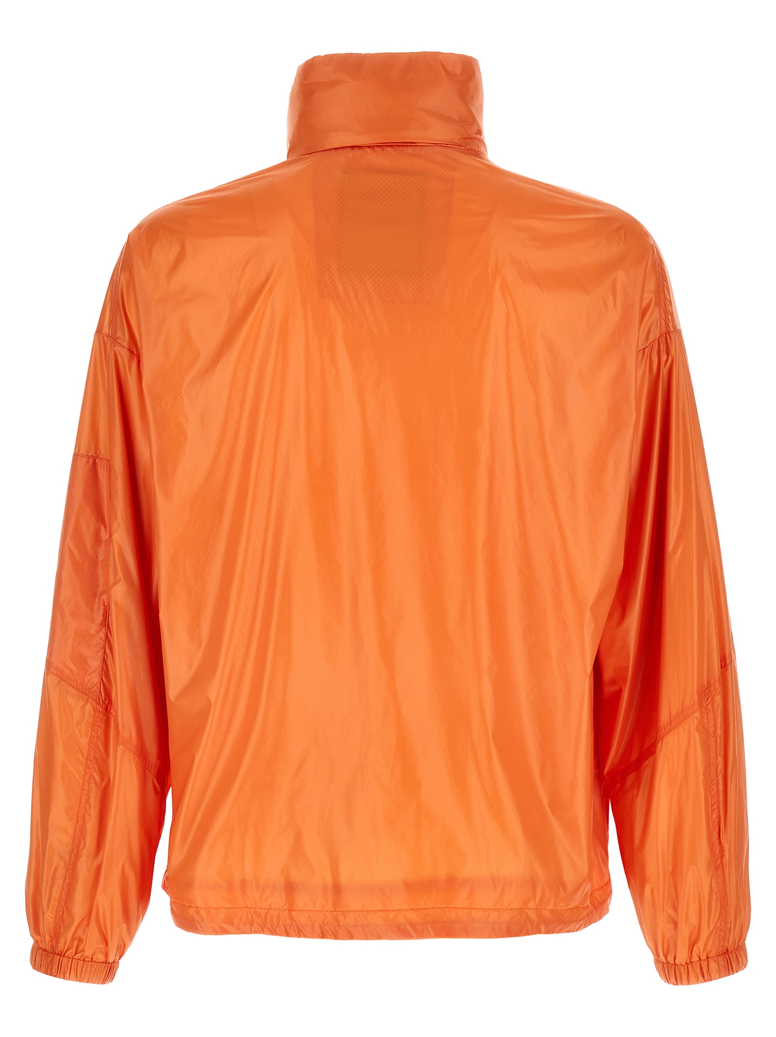 Water-repellent ultralight technical fabric jacket, mesh lining, standing collar with removable adjustable hood, front zip closure, pockets, long sleeves with elastic cuffs, drawstring on the hem, foldable into the inner pocket.Характеристики товара
