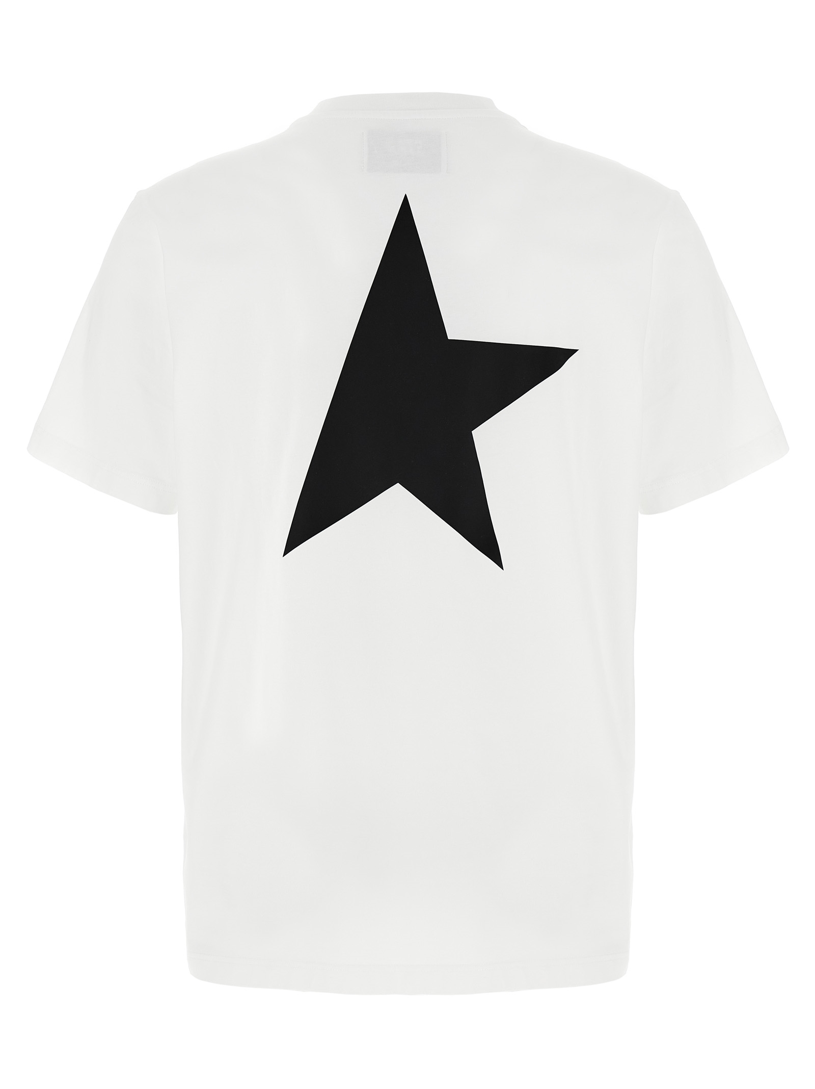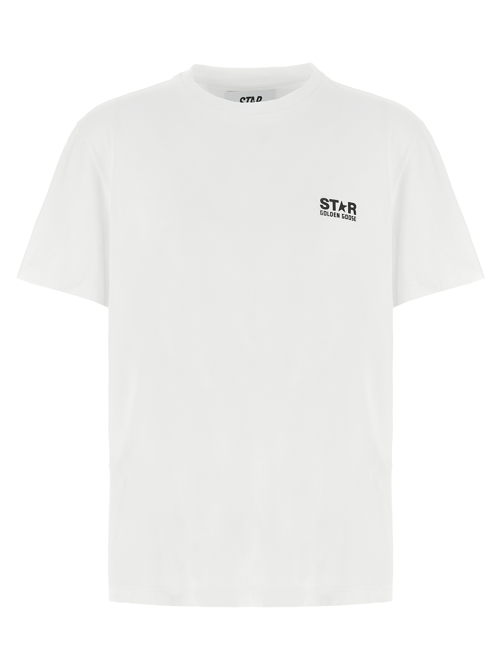 Cotton, crewneck t-shirt with a front and back logo print, and short sleeves.