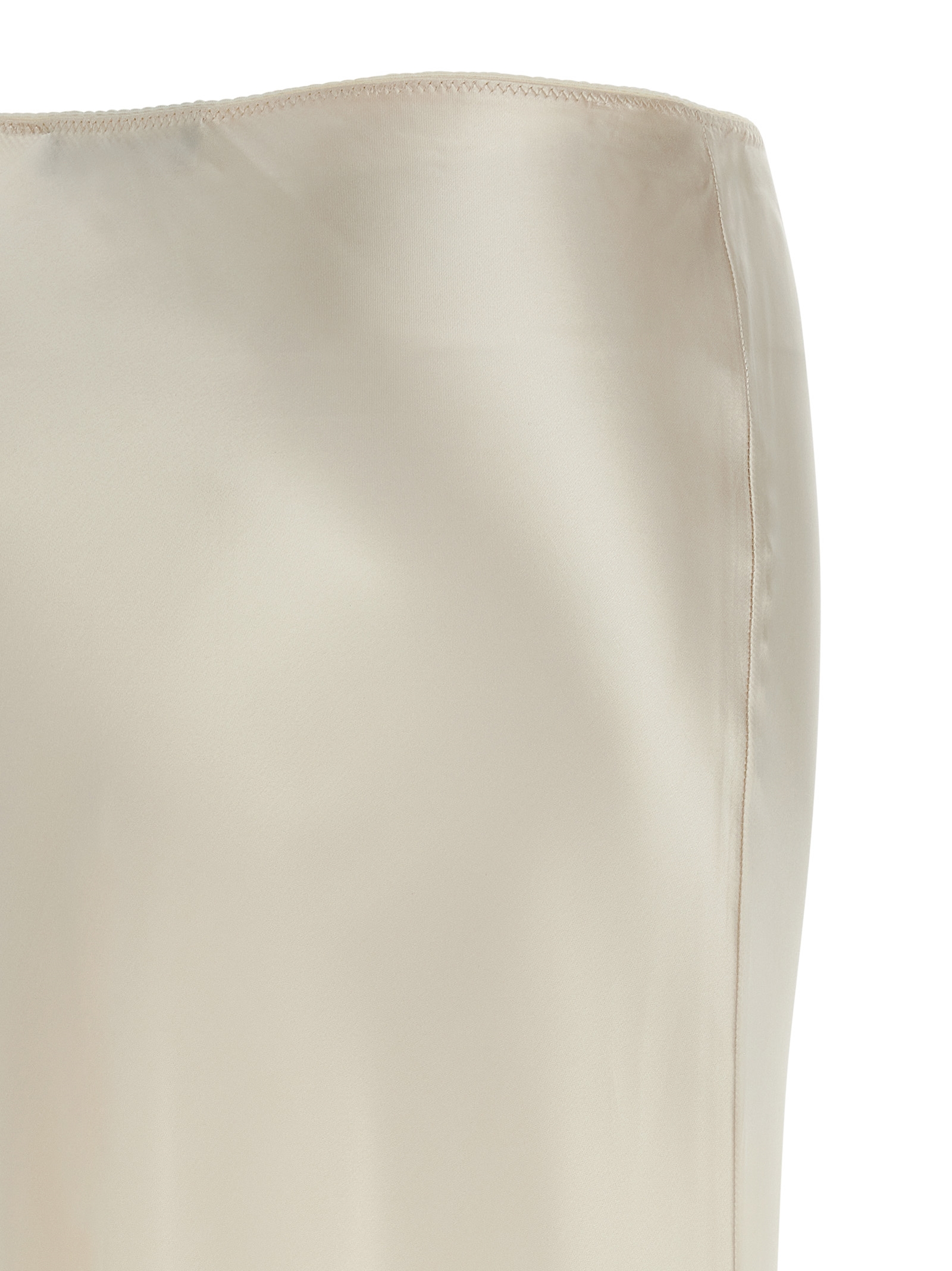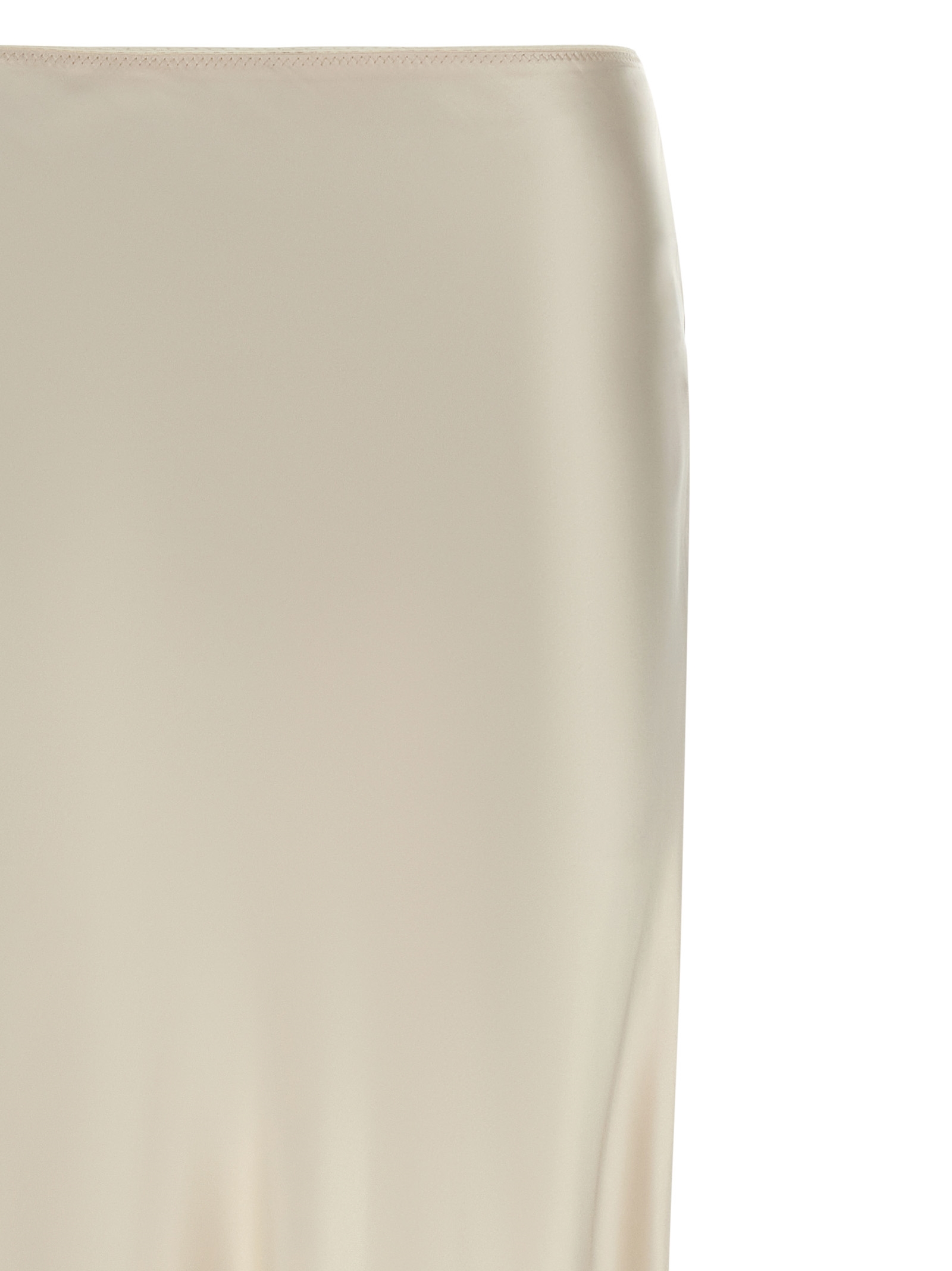 Long skirt in mirrored effect viscose satin, asymmetrical flared silhouette with side pleats, elastic waistband.