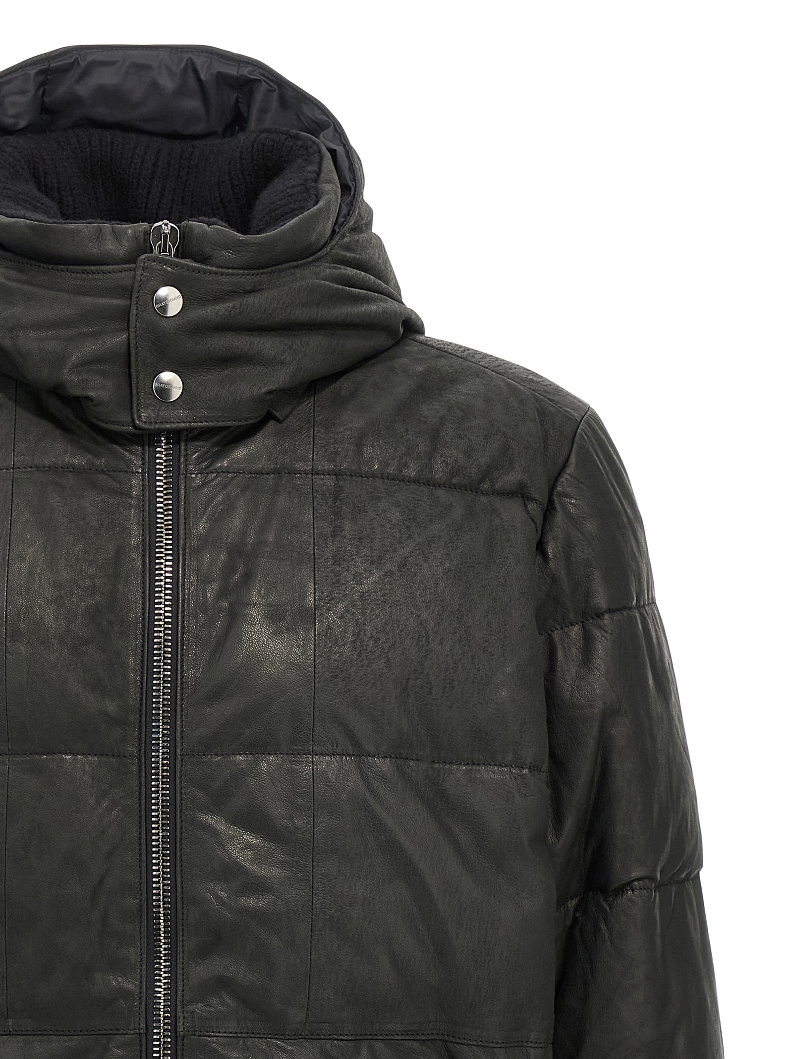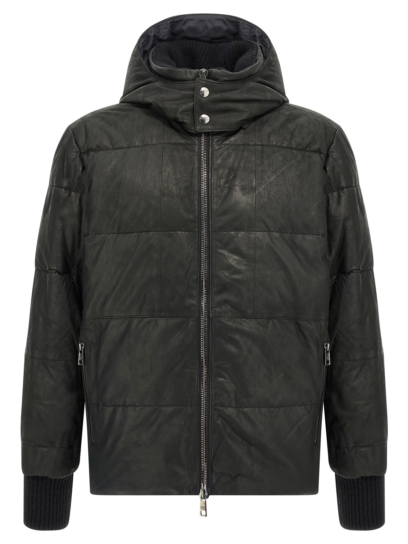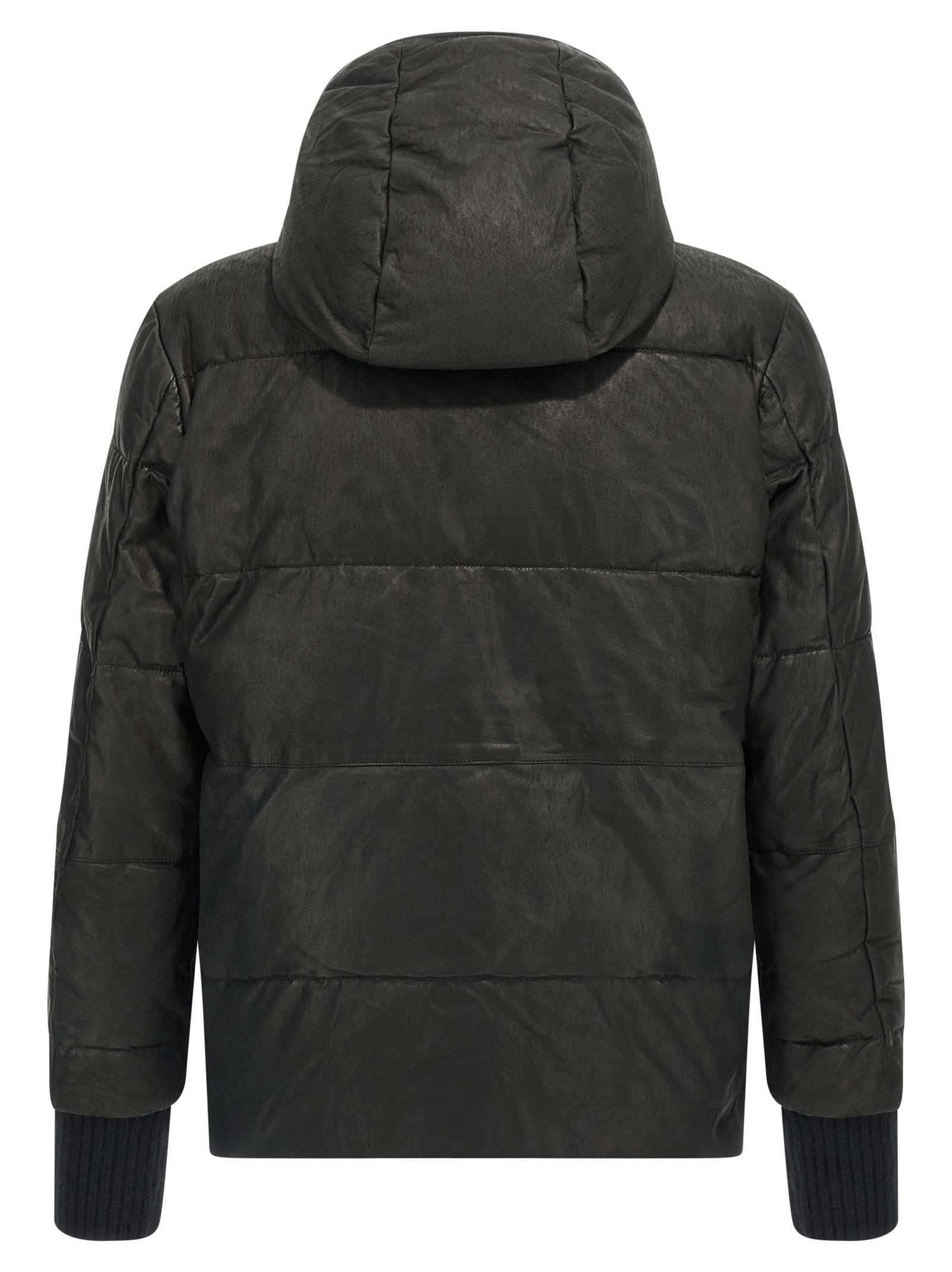 Tanned lambskin down jacket with ribbed wool knit details, removable hood, standing collar, front zip closure, pockets, long cuffed sleeves.Характеристики товара