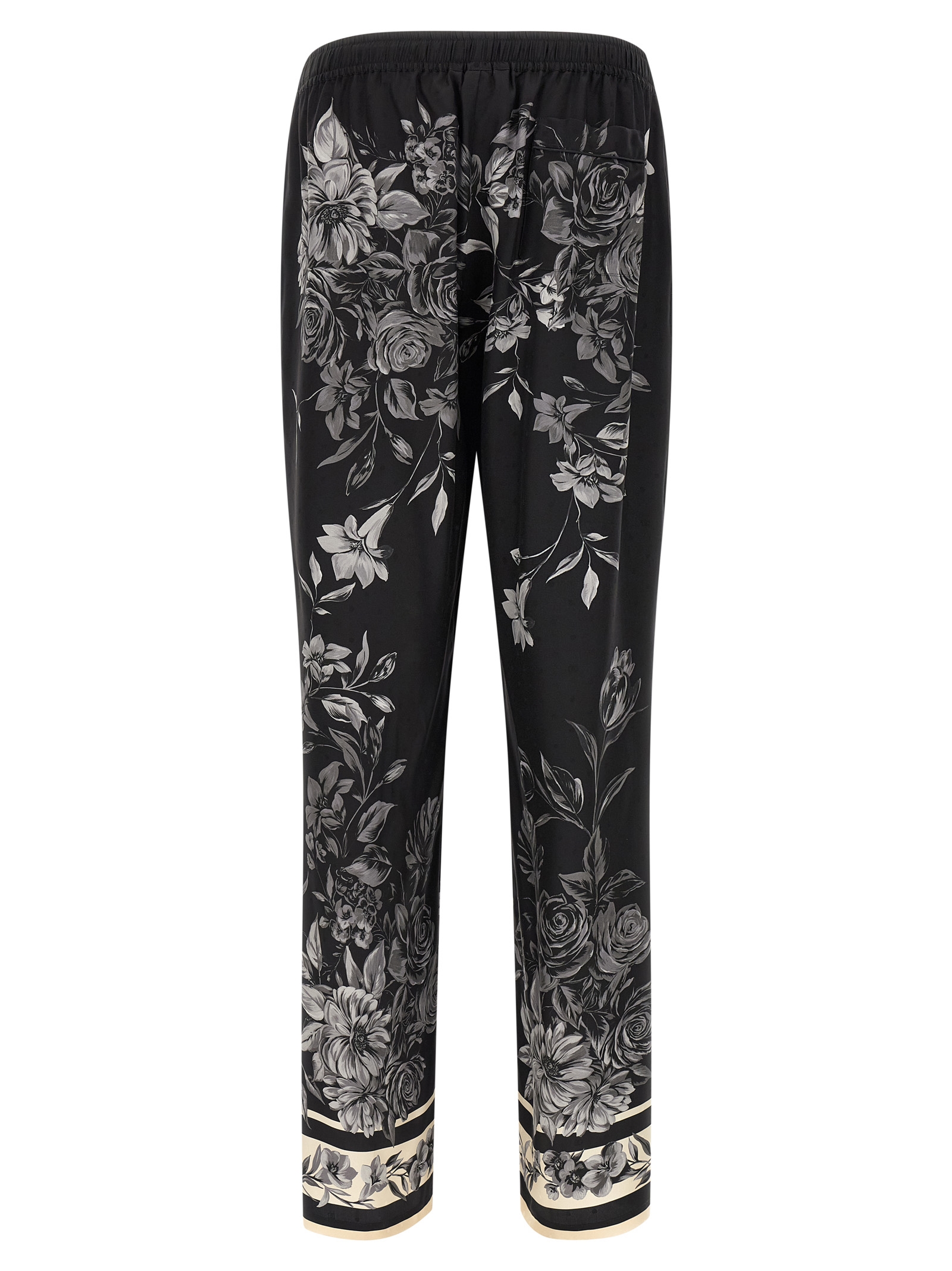 'Vanity' jacquard silk twill pants Mazzo di Fiori print, elastic waistband with drawstring, pockets, wide and straight leg. The differences in print placement you might find on this product is a characteristic of Dolce&Gabbana's Handmade products. A peculiarity that makes each garment or accessory unique and exclusive.