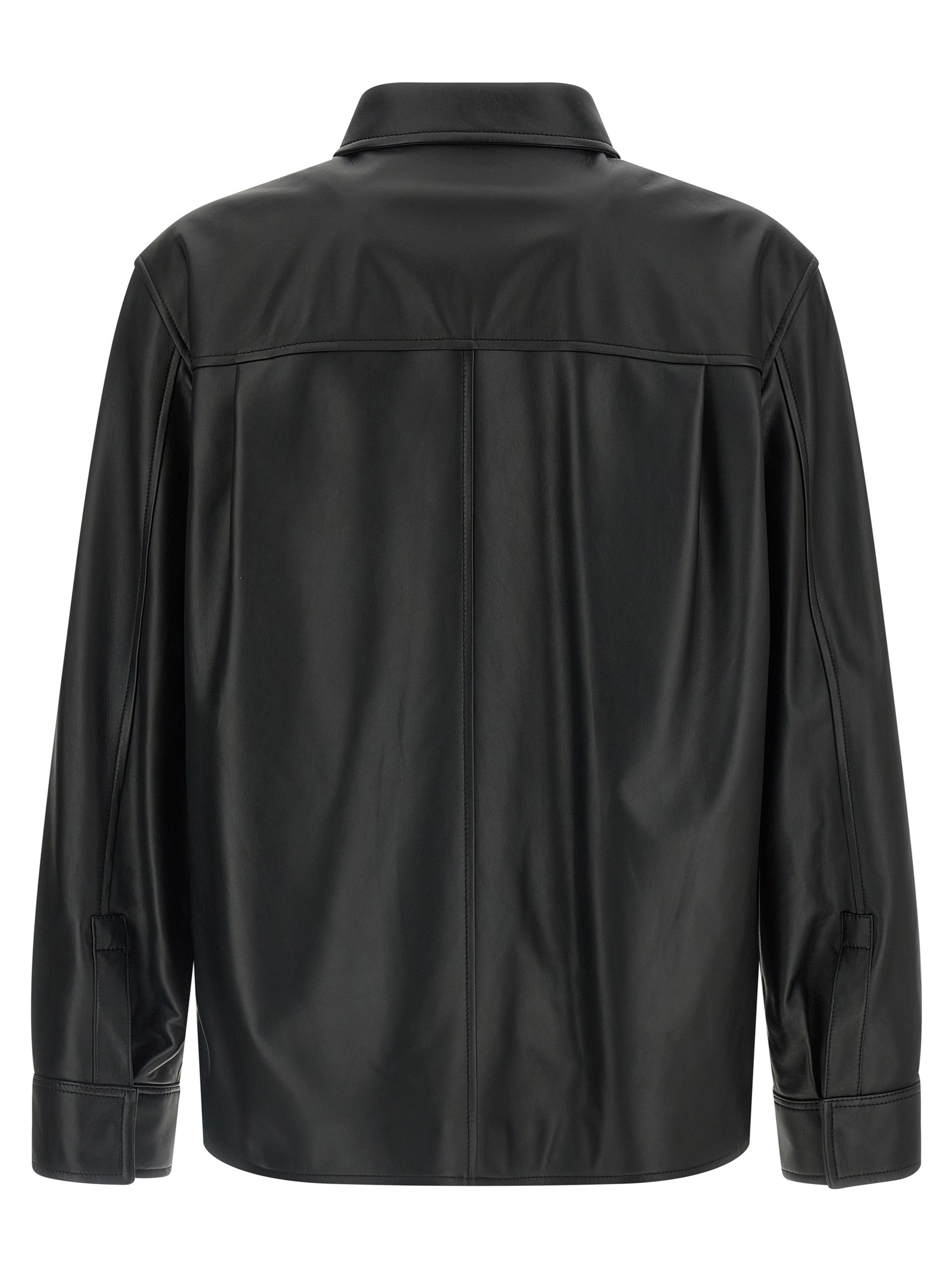 Nappa overshirt, pocket with embossed 'Anagram' logo, front hidden snap button closure, long cuffed sleeves, rounded hem, lining.