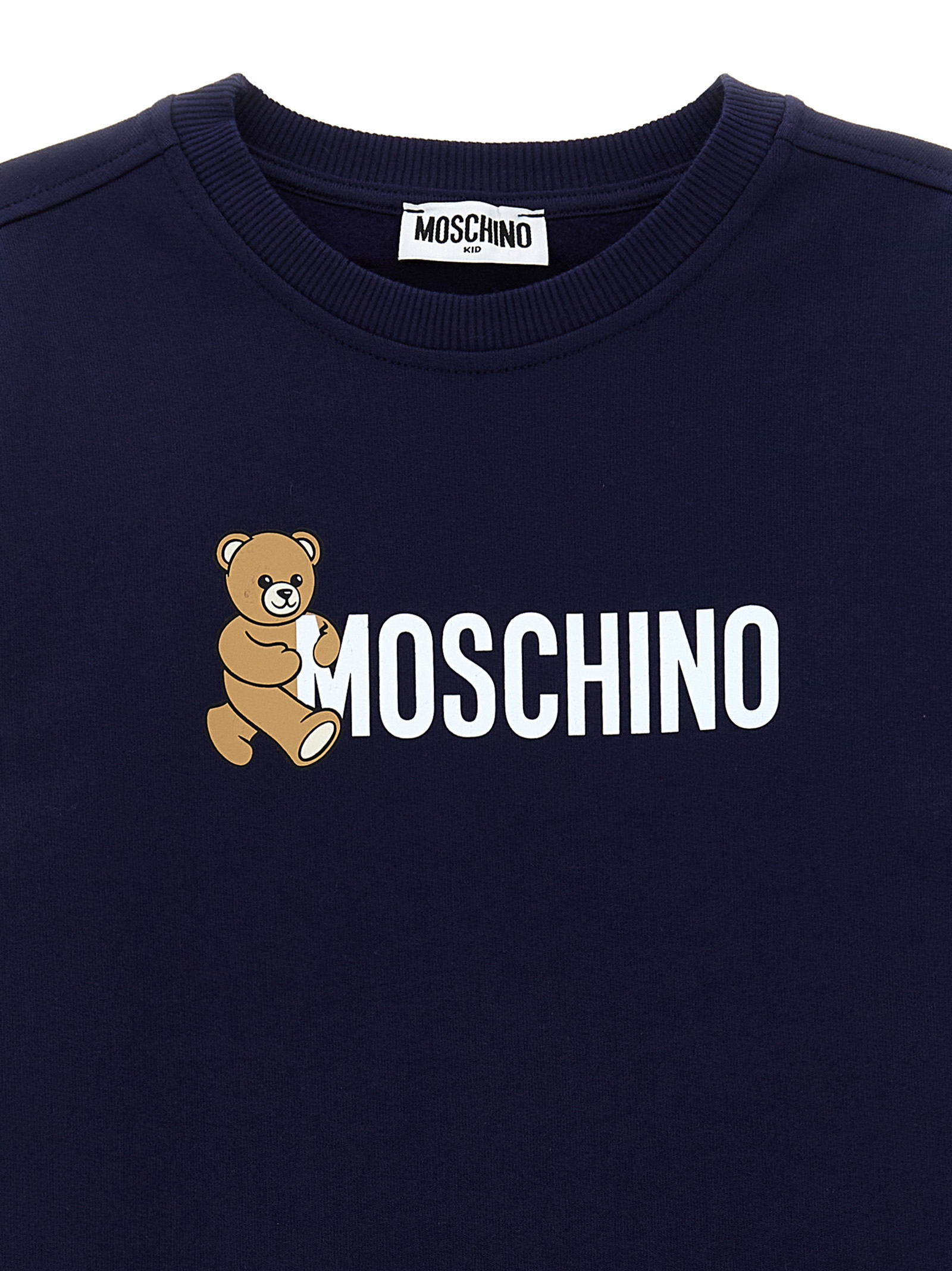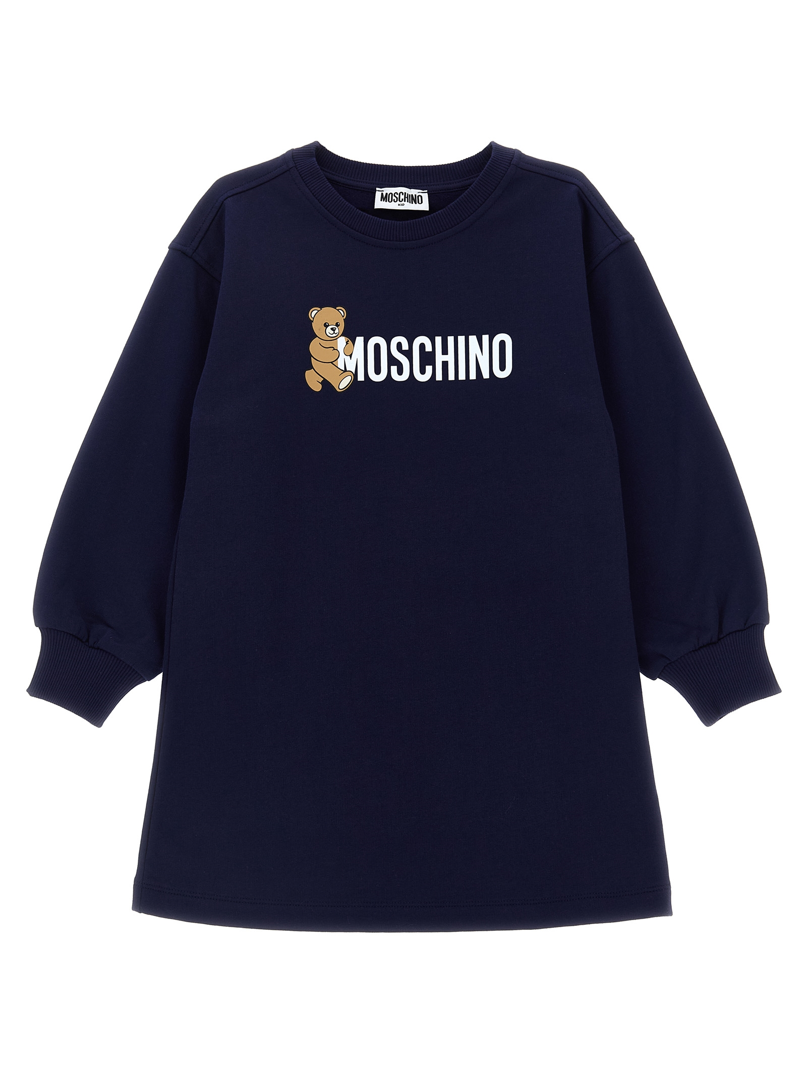 KIDS Lightly fleece cotton dress with front 'Moschino Teddy Bear' print, flared silhouette, crew neck, long cuffed sleeves.Характеристики товара