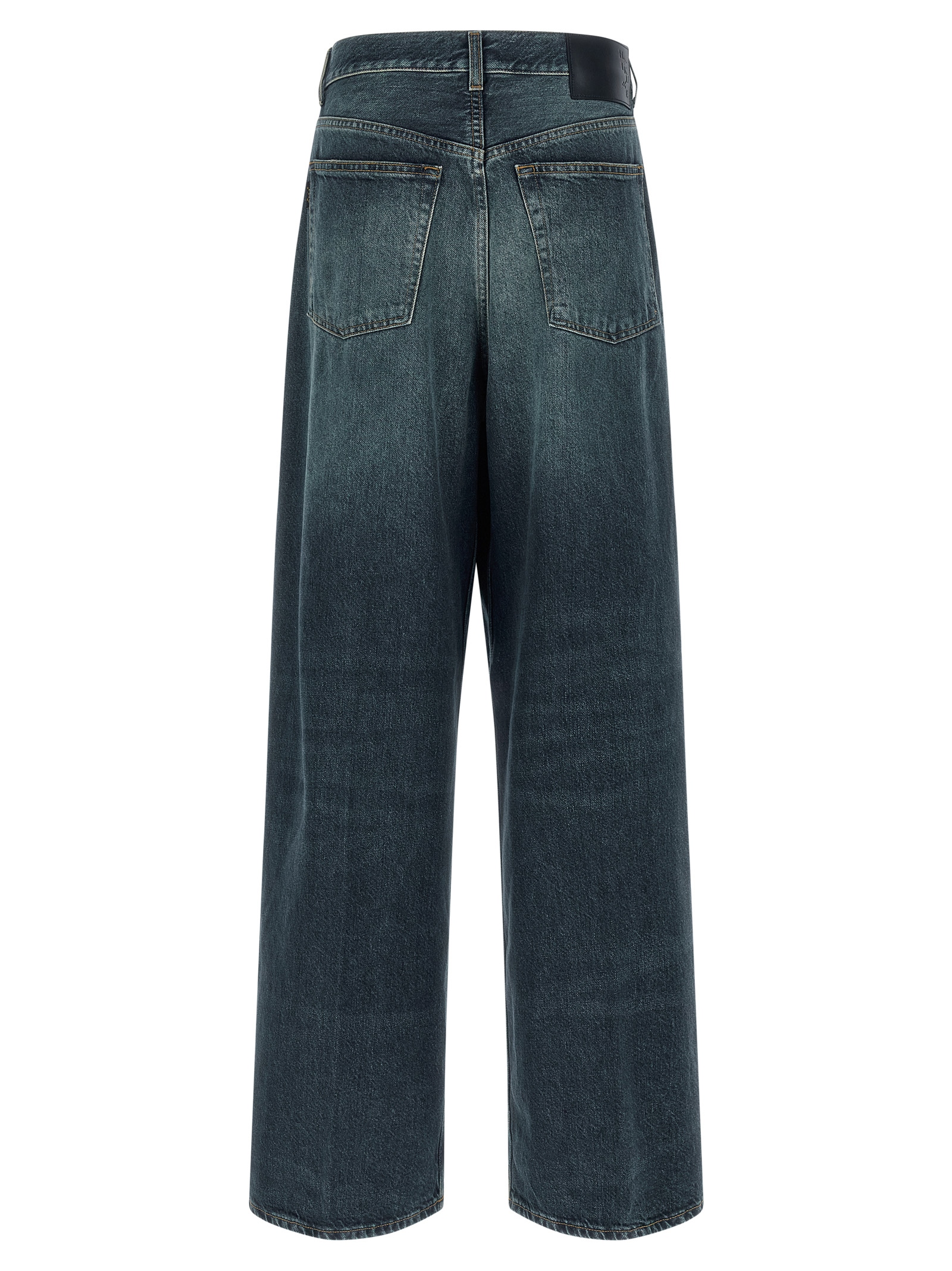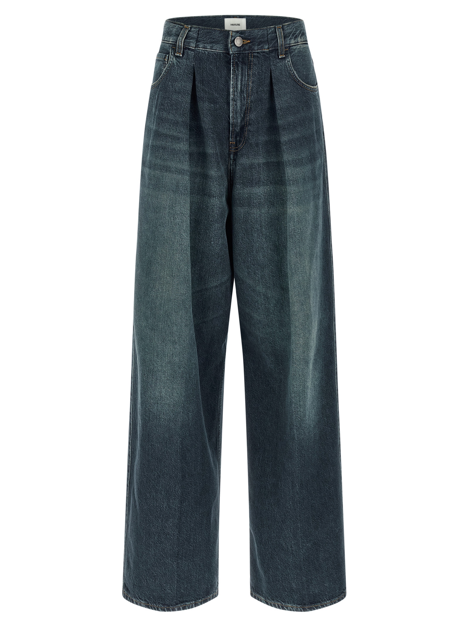 'Candy Intense Blue' jeans in delavé cotton denim, front pin tucks, wide leg, zip and button closure, back logo tag