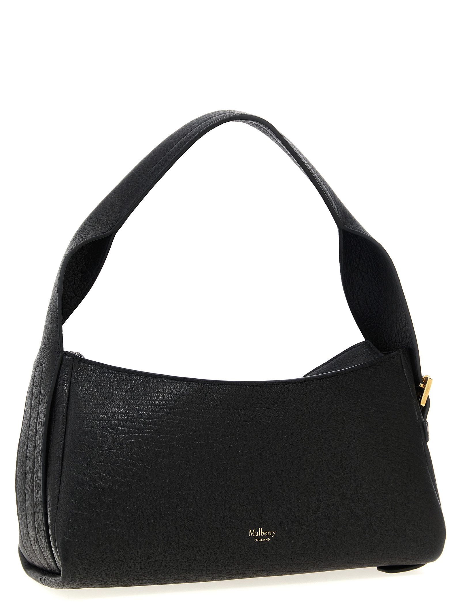 Maggie' grained leather shoulder bag with adjustable handle, top zip closure, double front pocket, front embossed logo at the back.