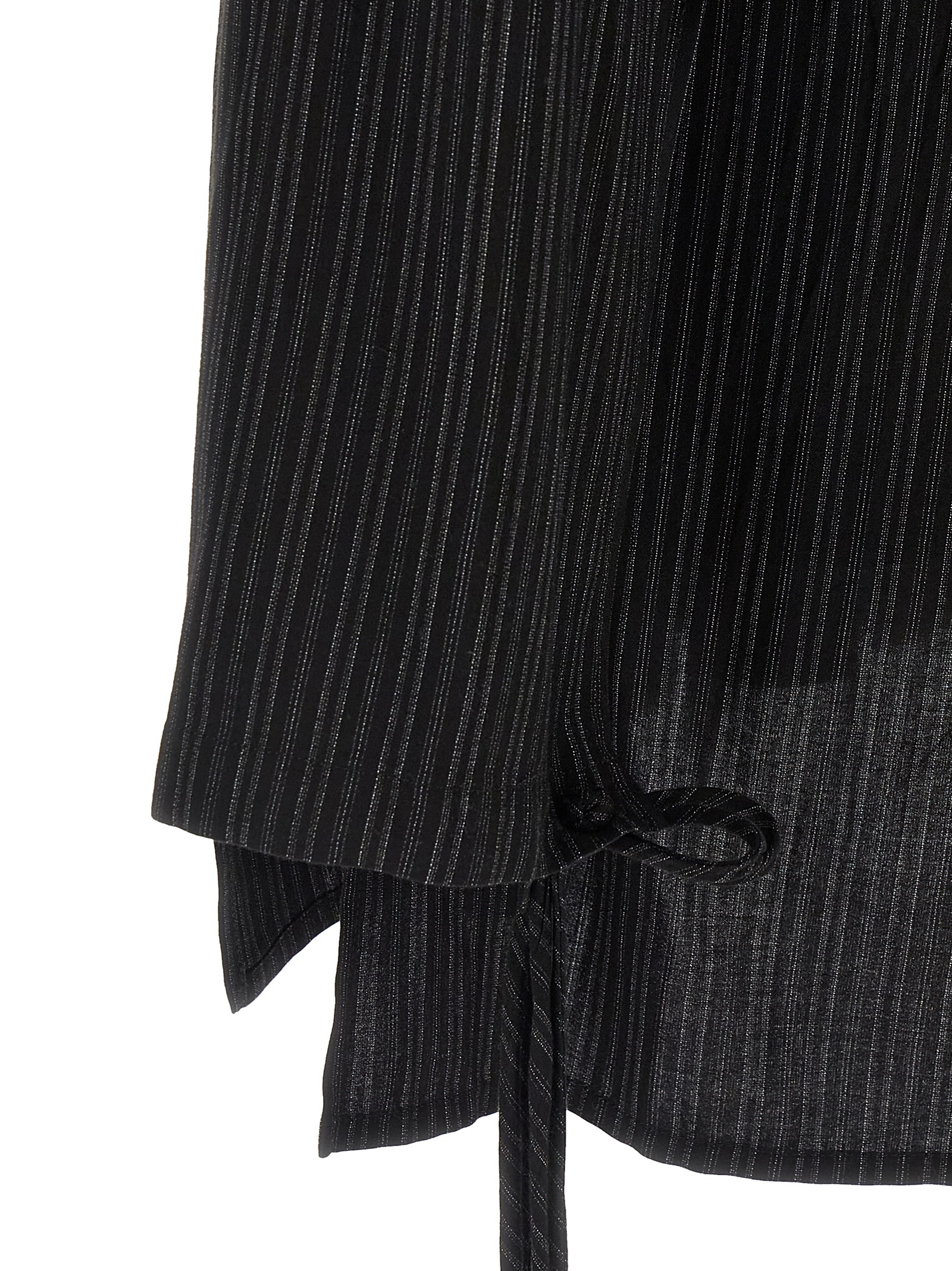 'Thin stripe' jacket in lightweight fabric, unlined with thin stripe workmanship, narrow and rounded lapel neckline, front lace closure, back split and deep side slits, long sleeves with lacing on the cuffs.