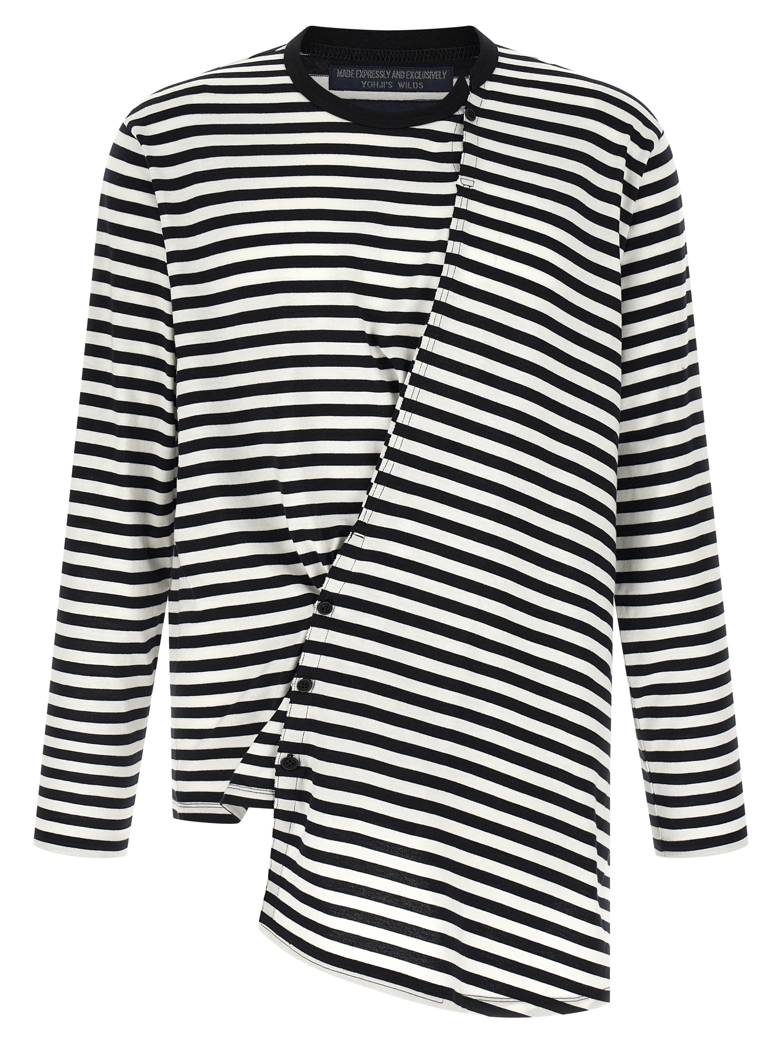 'Paneled' striped cotton jersey sweater, crew neck Loose fit with asymmetric details, panels joined on the front with buttons and buttonholes, dropped shoulders, long sleeves.