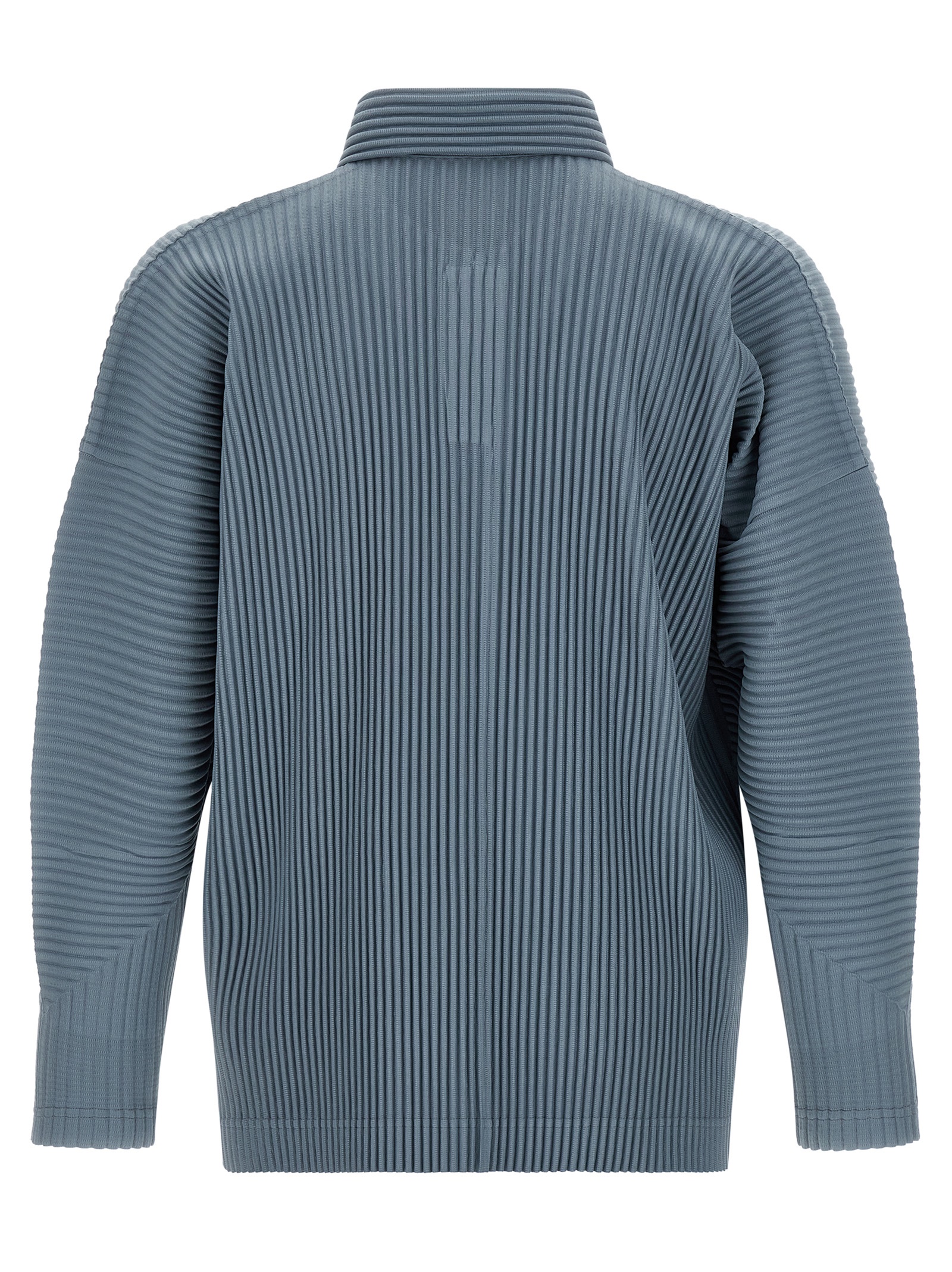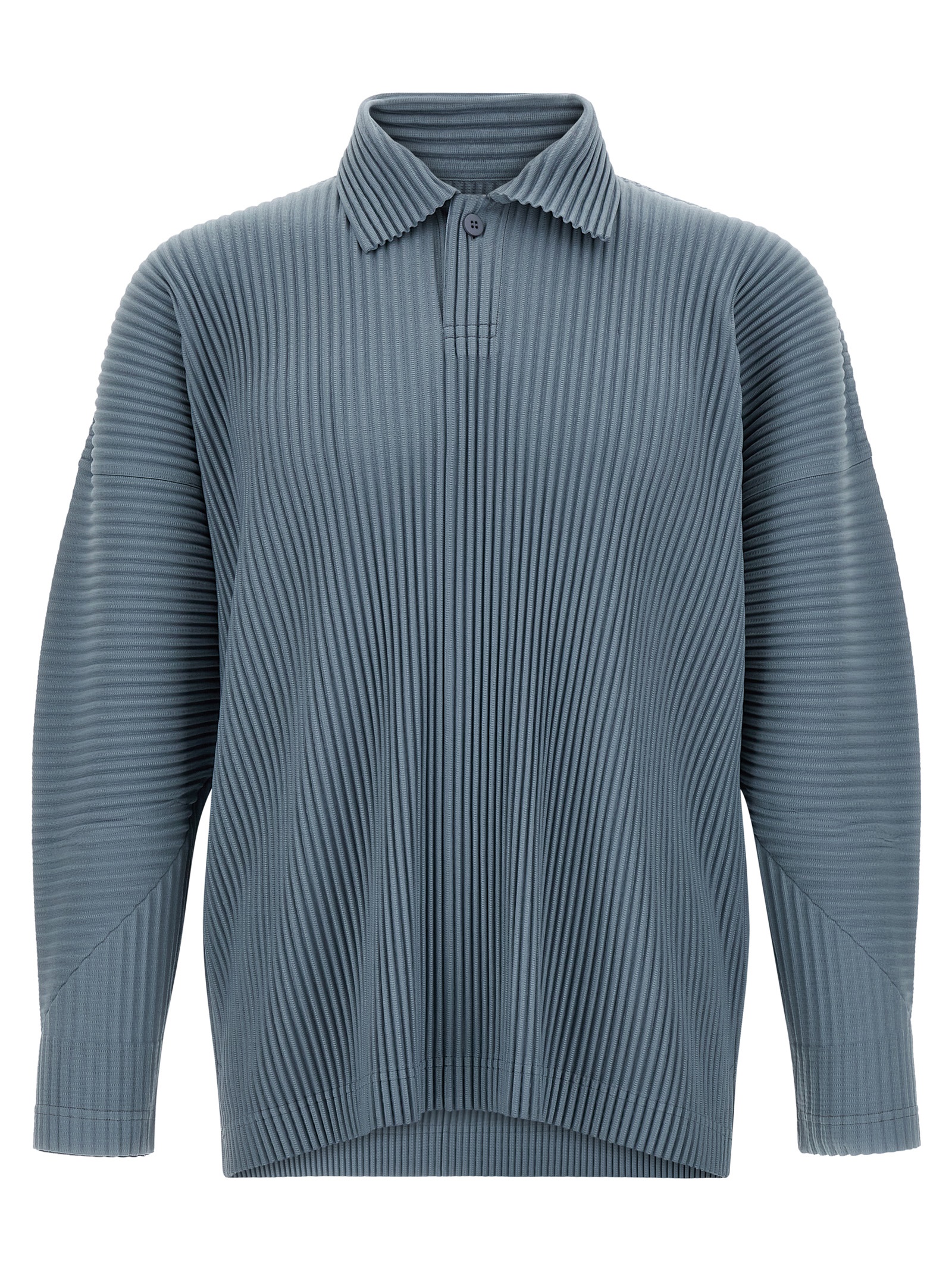 'Monthly Colors: August' polo shirt in pleated fabric, collar and button, long wide sleeves with cuffs.