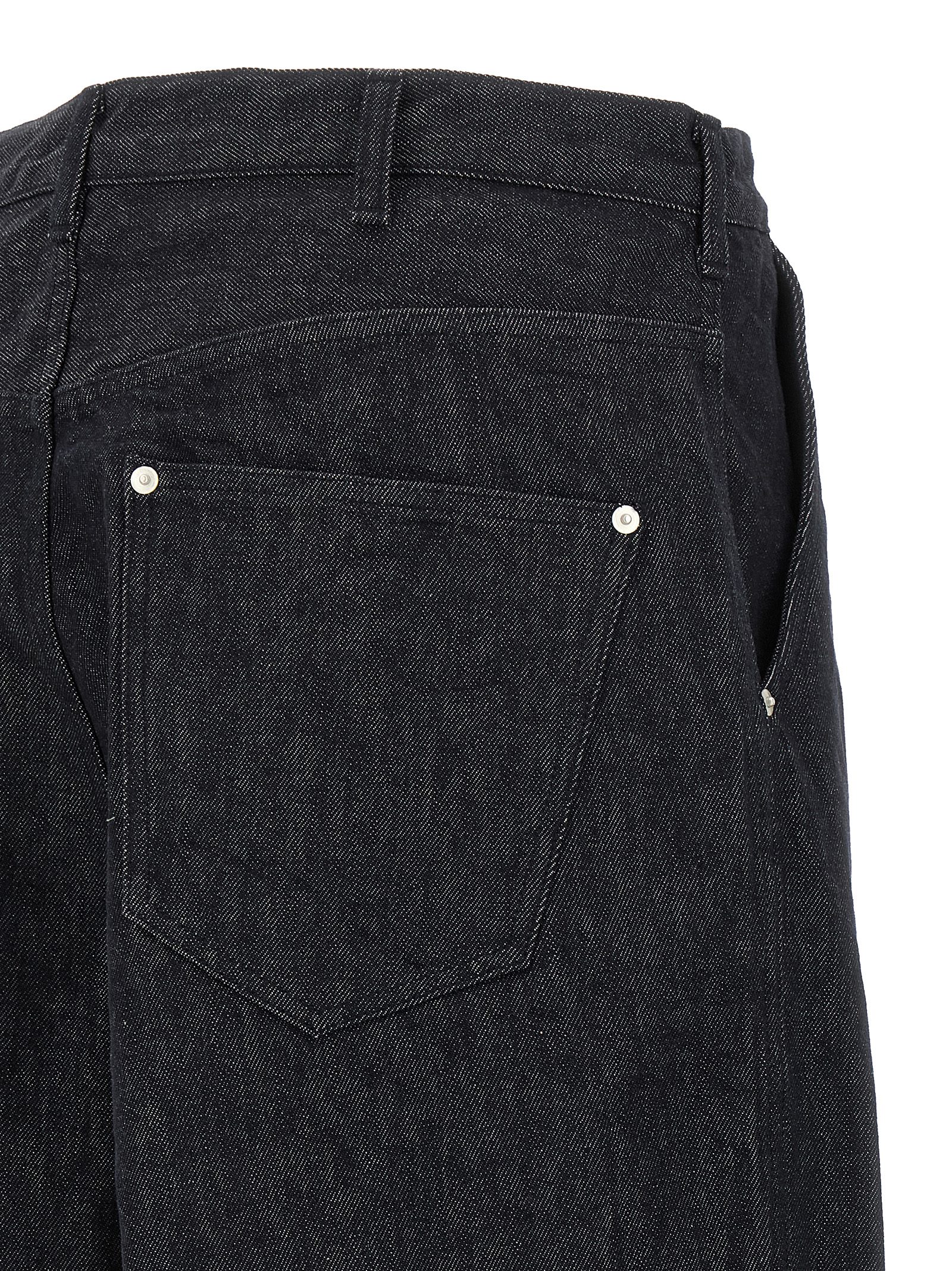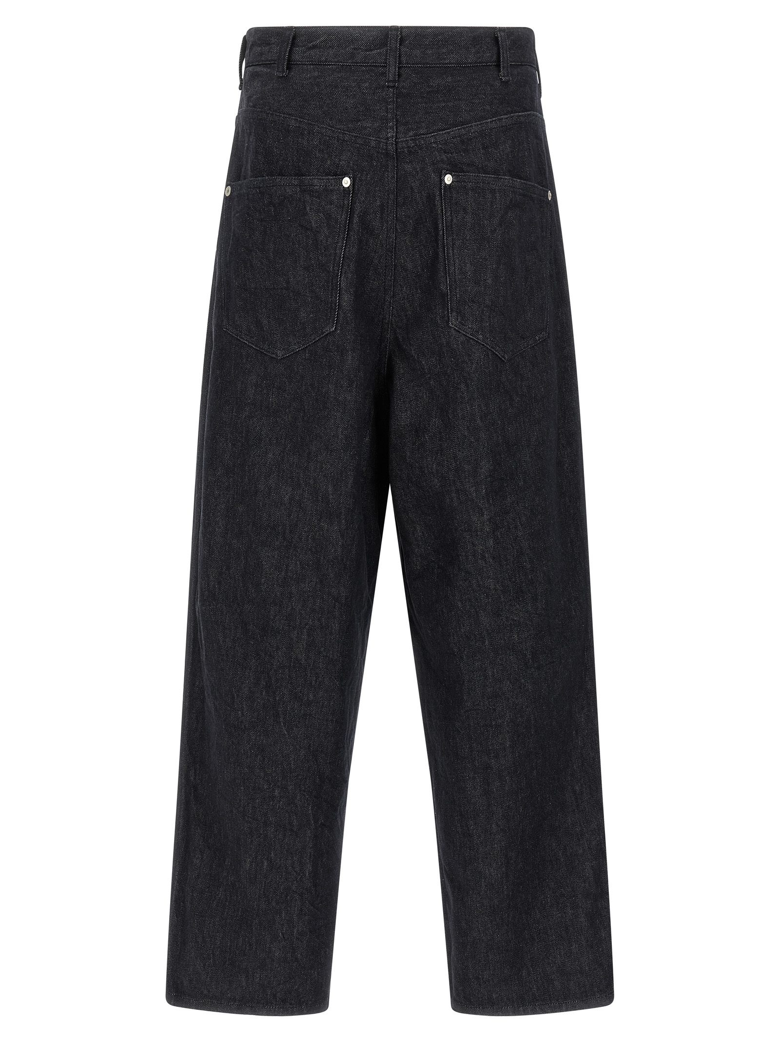 Garment-dyed rigid cotton denim jeans, low crotch, wide and straight leg, zip and front button closure, pockets.