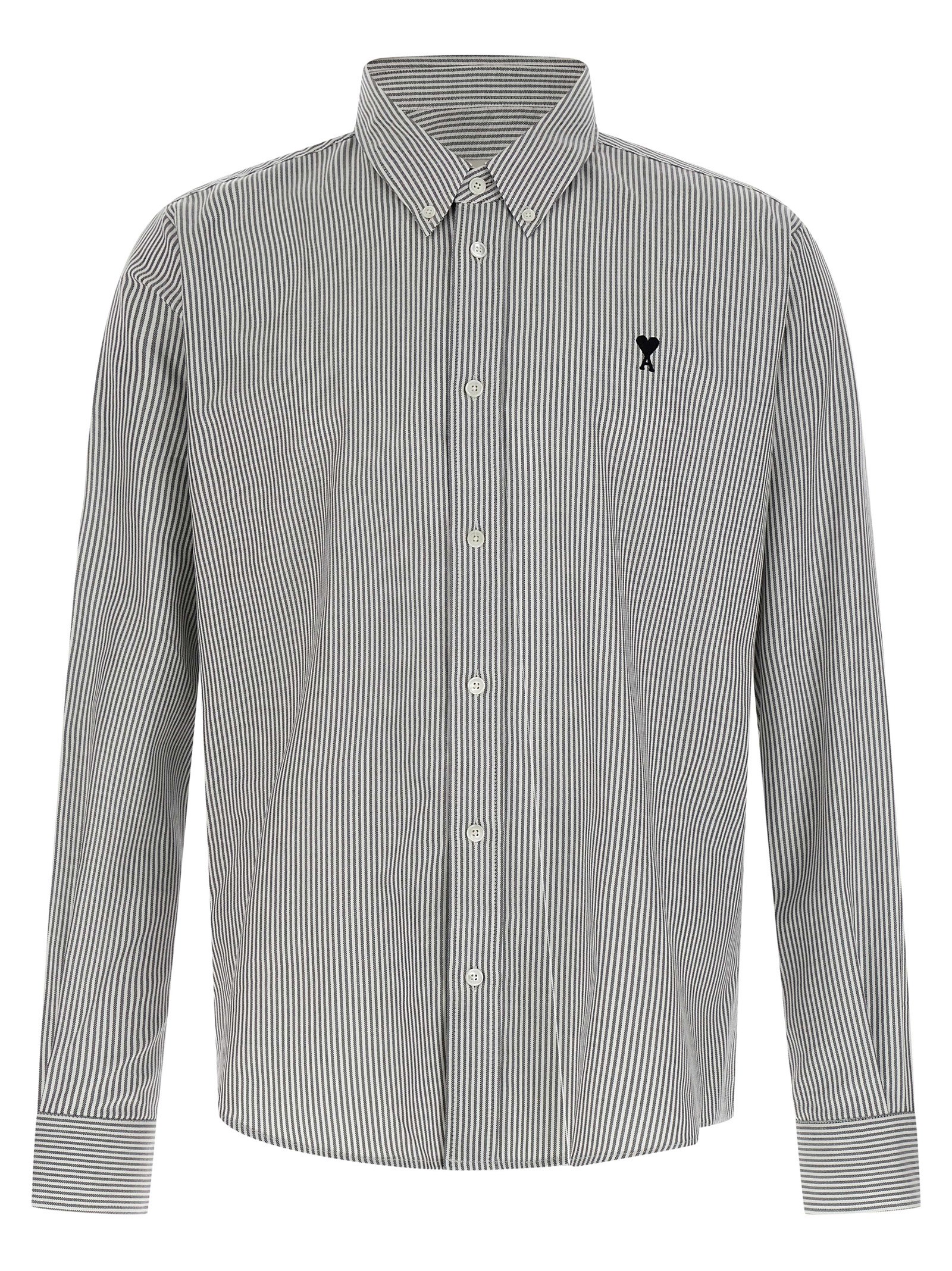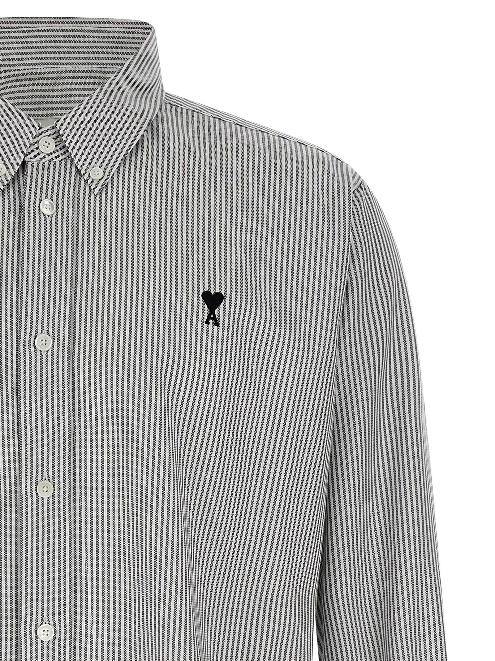Striped Oxford cotton shirt with button-down style with 'Ami De Coeur' embroidered logo, front button closure, and long cuffed sleeves.