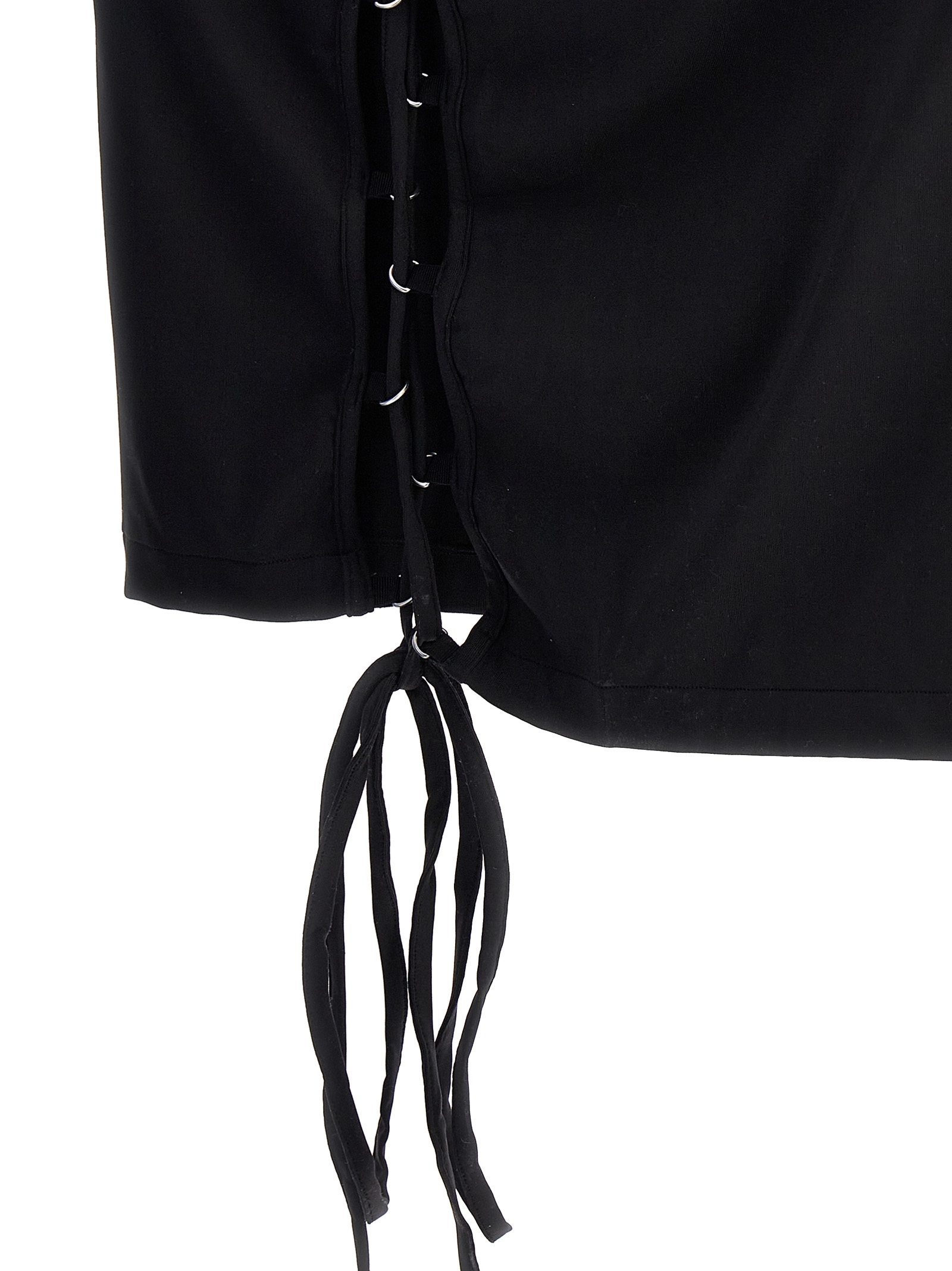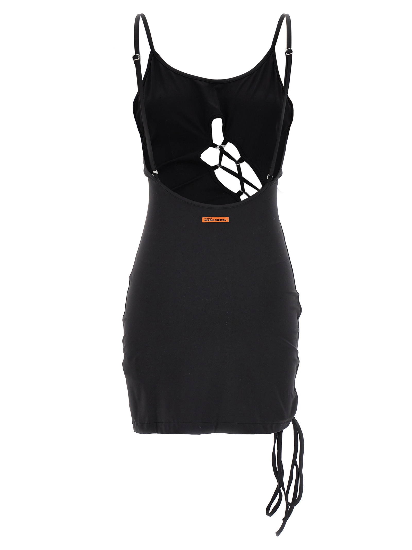 'Lace-up' mini dress in stretch fabric with deep split with lace up, adjustable shoulder straps.