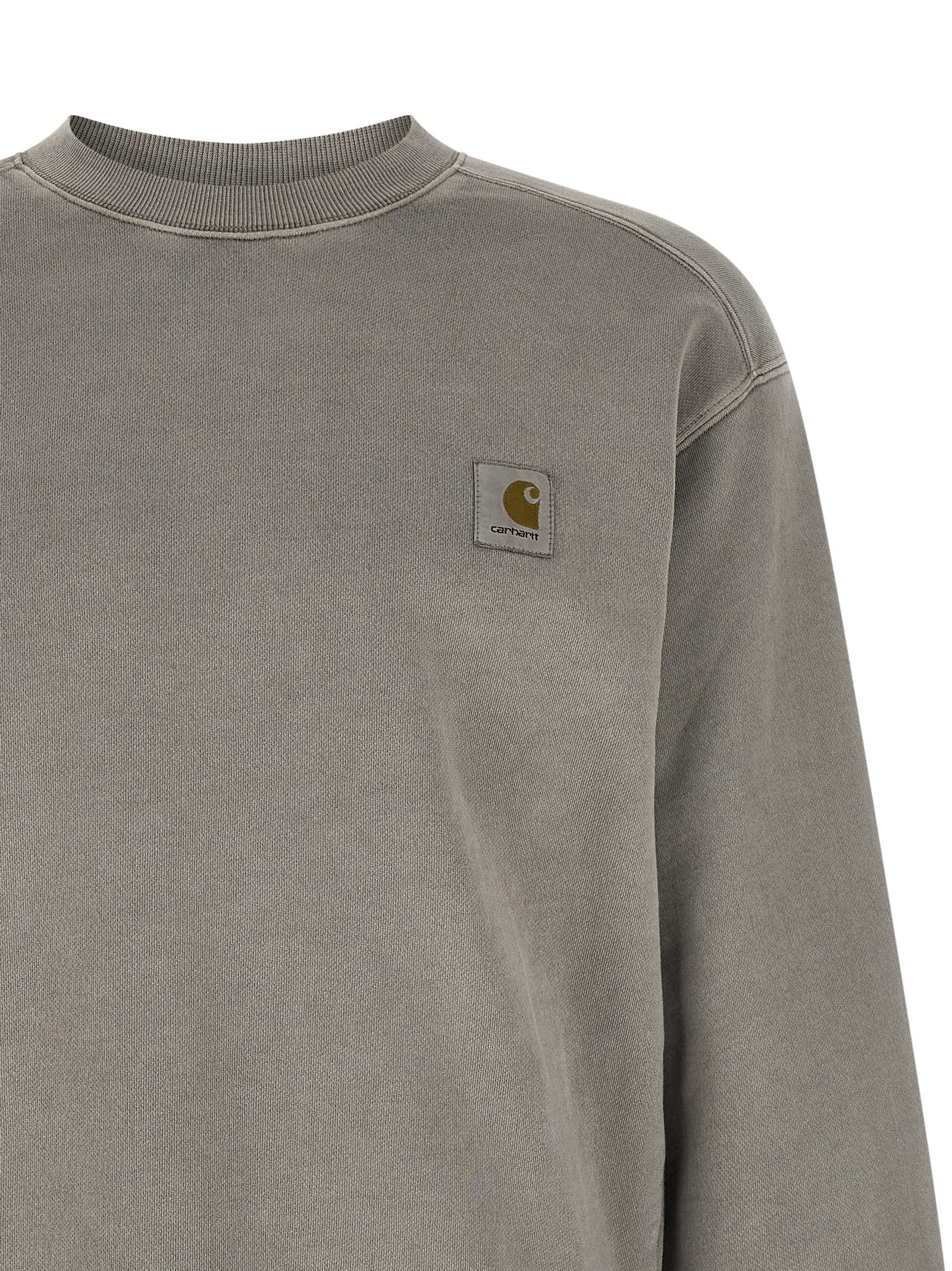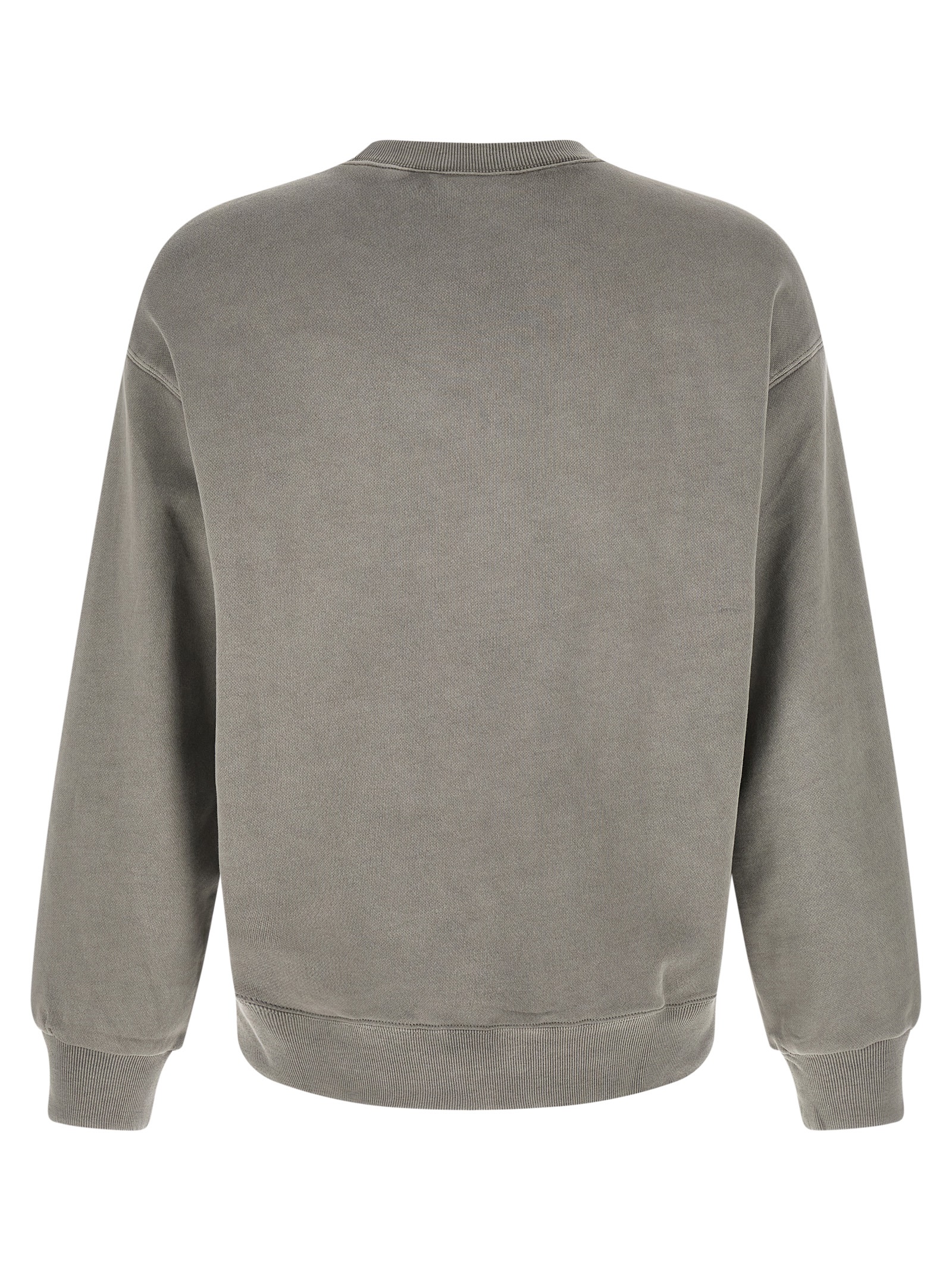 'Nelson' sweatshirt in heavy unbrushed cotton jersey dyed a délavé effect garment, front logo patch, crew neck, long sleeves with cuffs and dropped shoulders, and band on the hem.