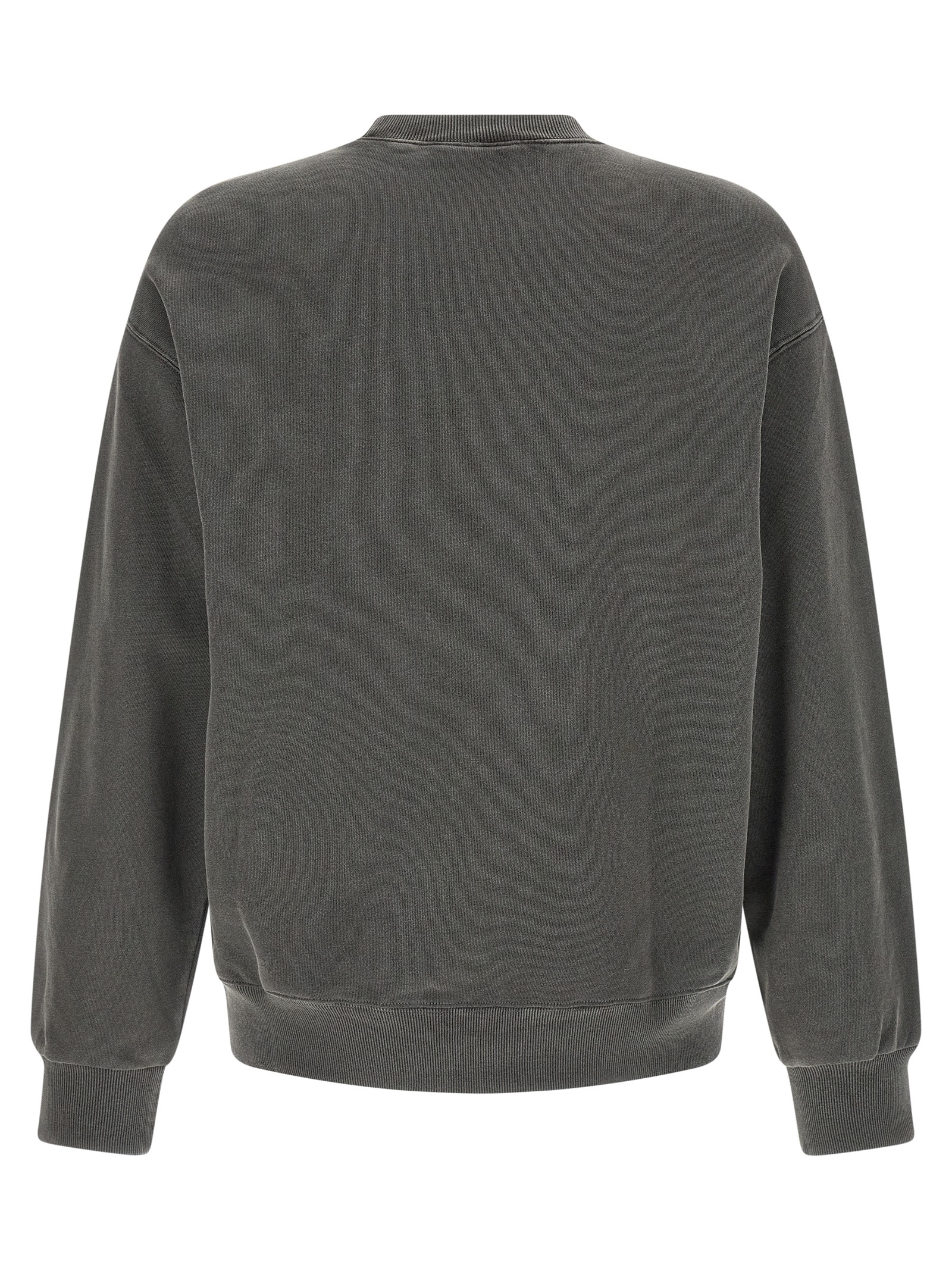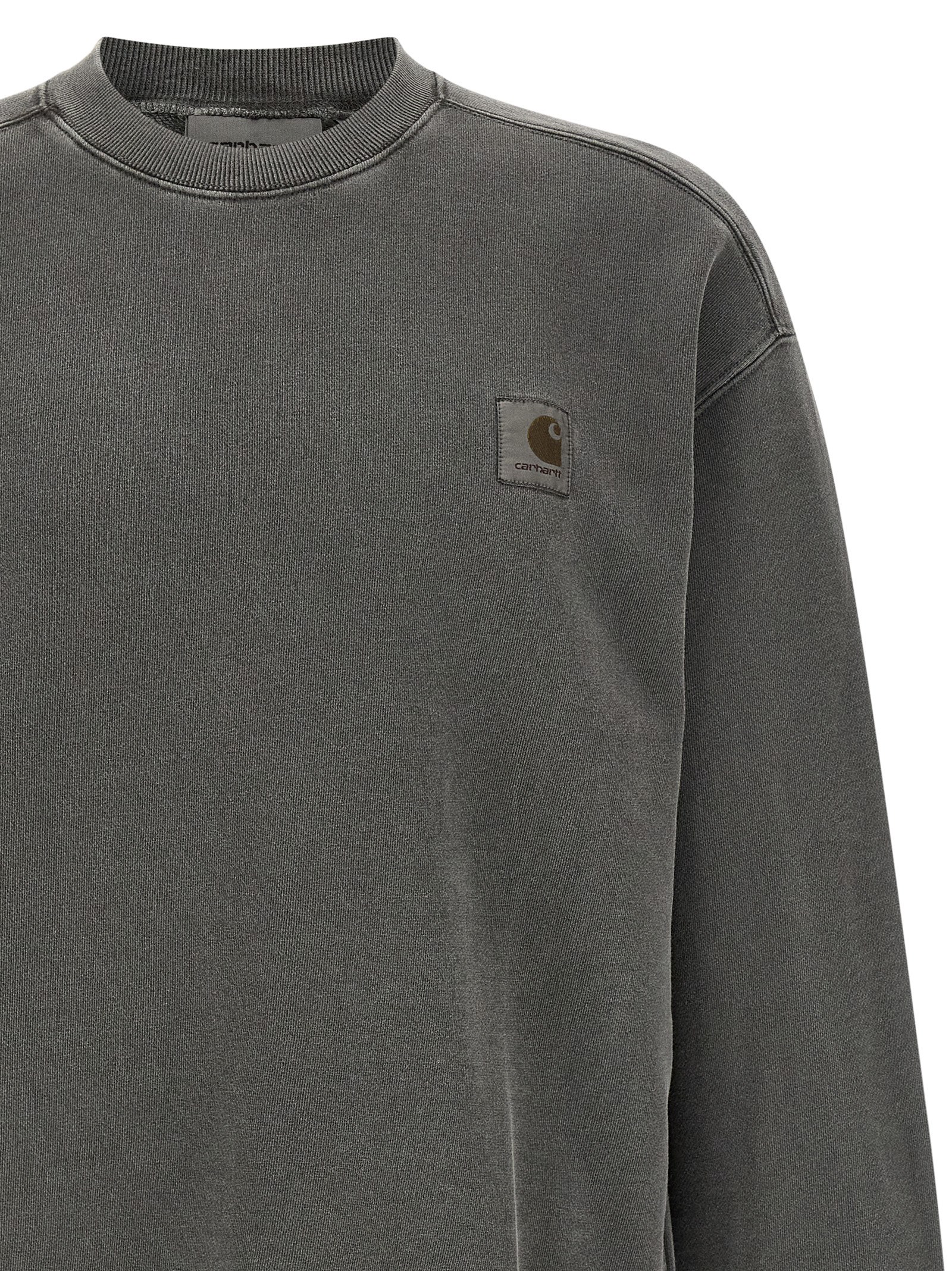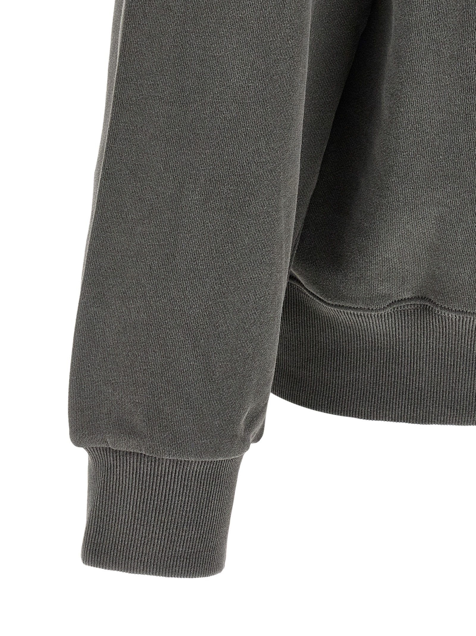 'Nelson' sweatshirt in heavy unbrushed cotton jersey dyed a délavé effect garment, front logo patch, crew neck, long sleeves with cuffs and dropped shoulders, and band on the hem.