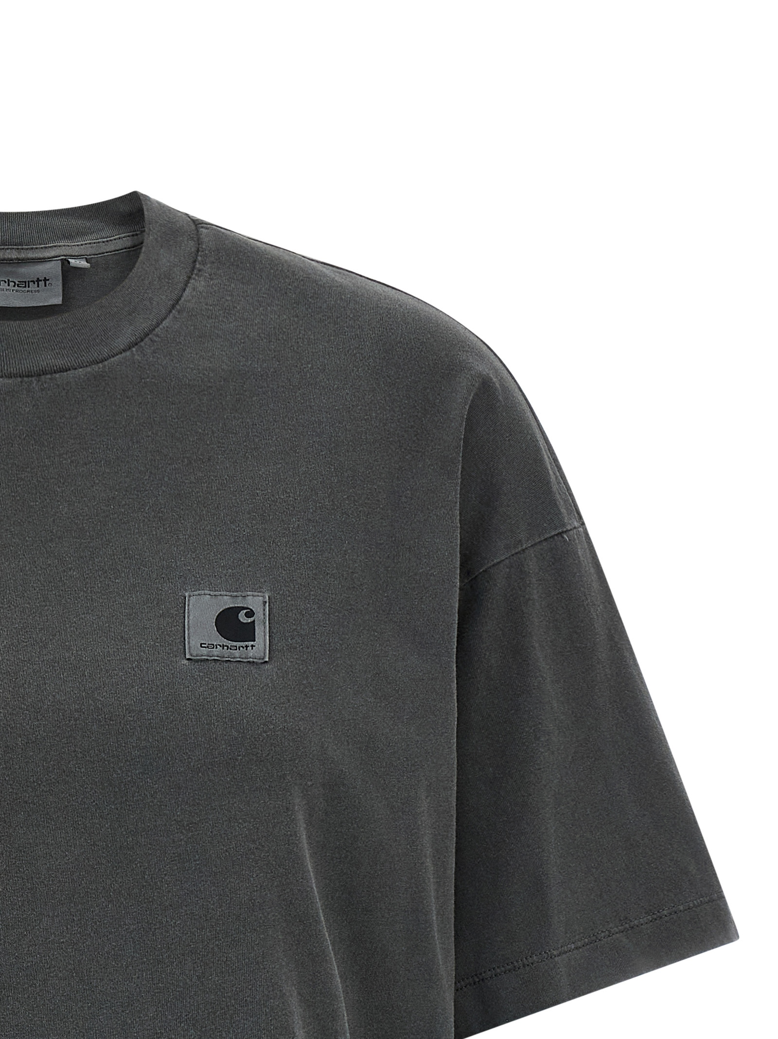 'Nelson' t-shirt in lightweight used-effect garment-dyed cotton jersey, tone-on-tone logo patch on the front, crew neck, short sleeves with dropped shoulders. SUSTAINABLE: This product is made of organic cotton.