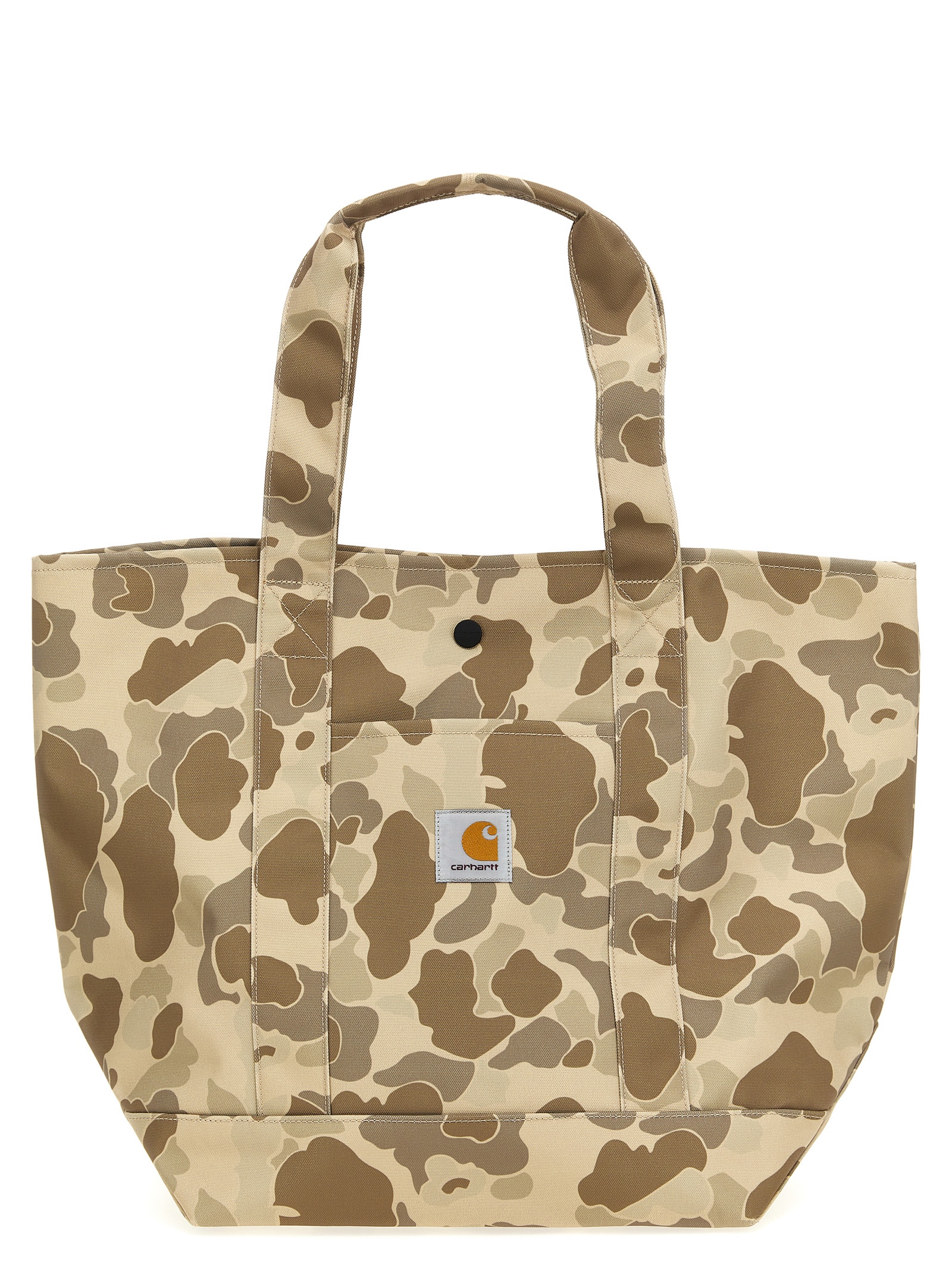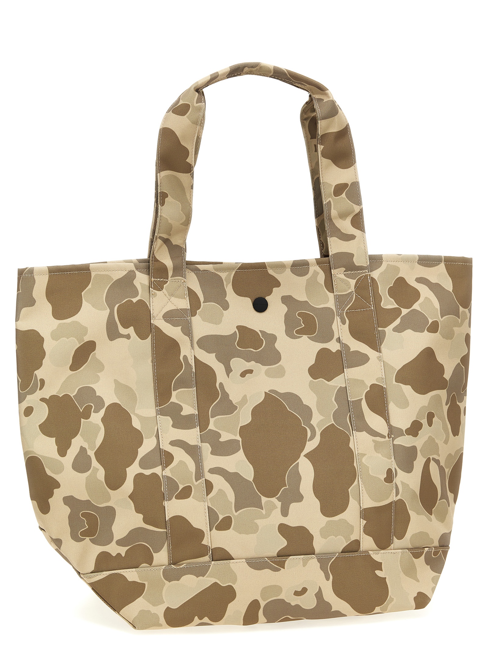 'Jakob Tote' shopping bag in heavy polyester canvas with no camouflage print lining, front logo patch pocket, double fixed handle, snap button closure. SUSTAINABLE: Product made from recycled polyester.Характеристики товара
