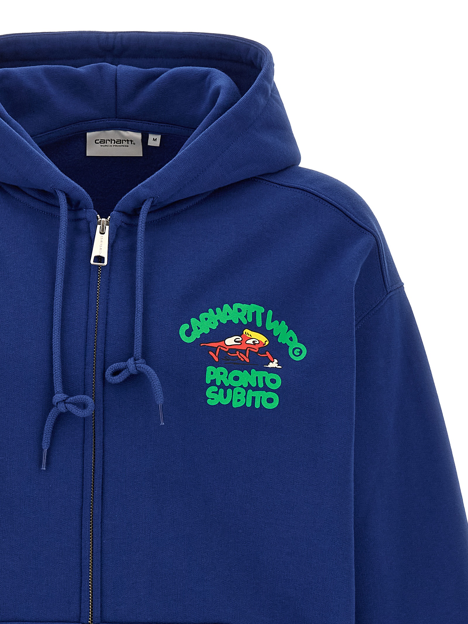 'Hooded Pronto Sweat Jacket' cotton blend hoodie with front and back print, front zip closure, kangaroo pockets, long cuffed sleeves.