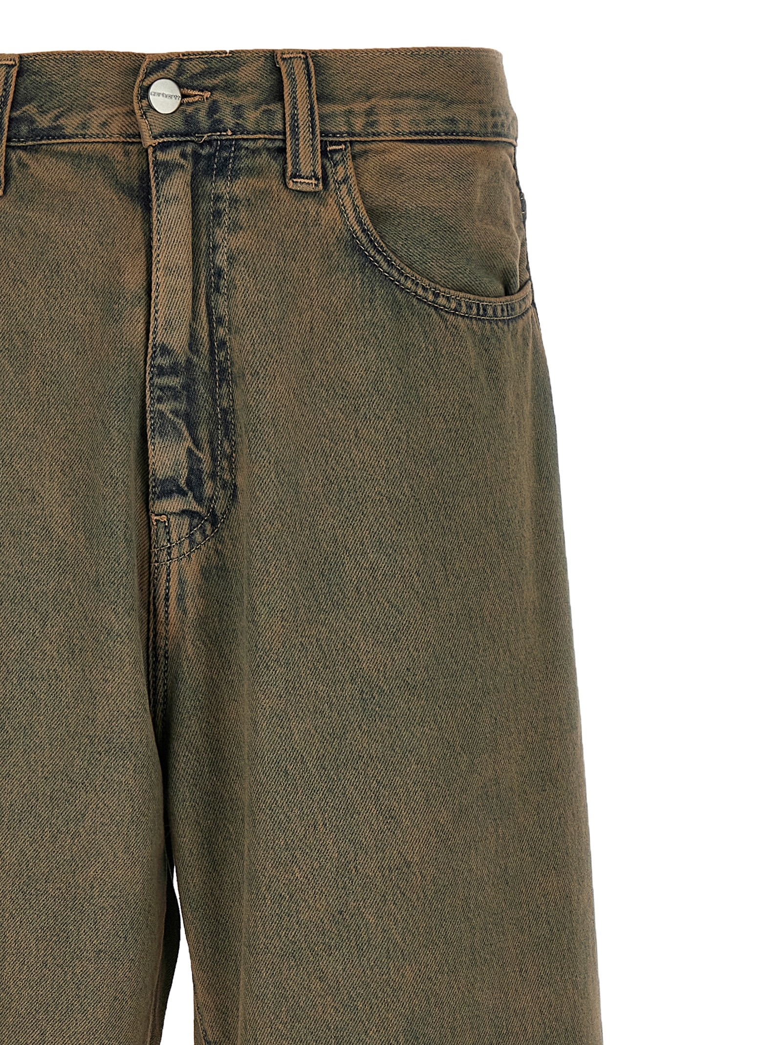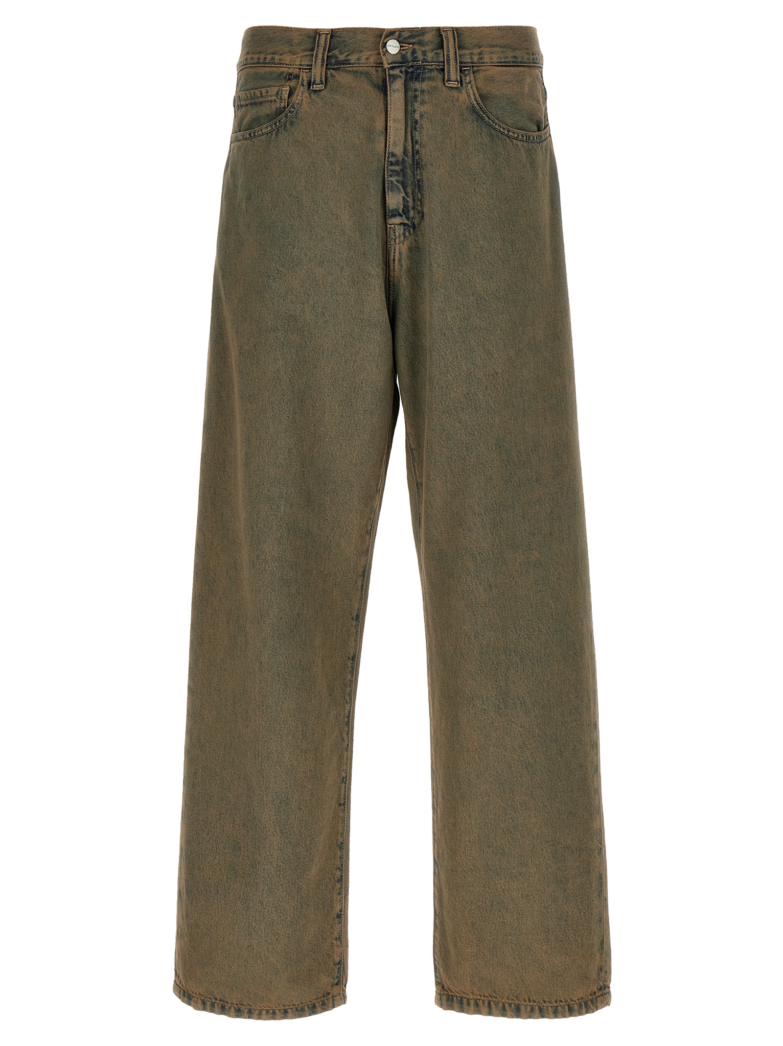 'Landon' 'Smithtown' cotton denim jeans, back logo patch, wide straight leg, zip and button closure, five pockets.