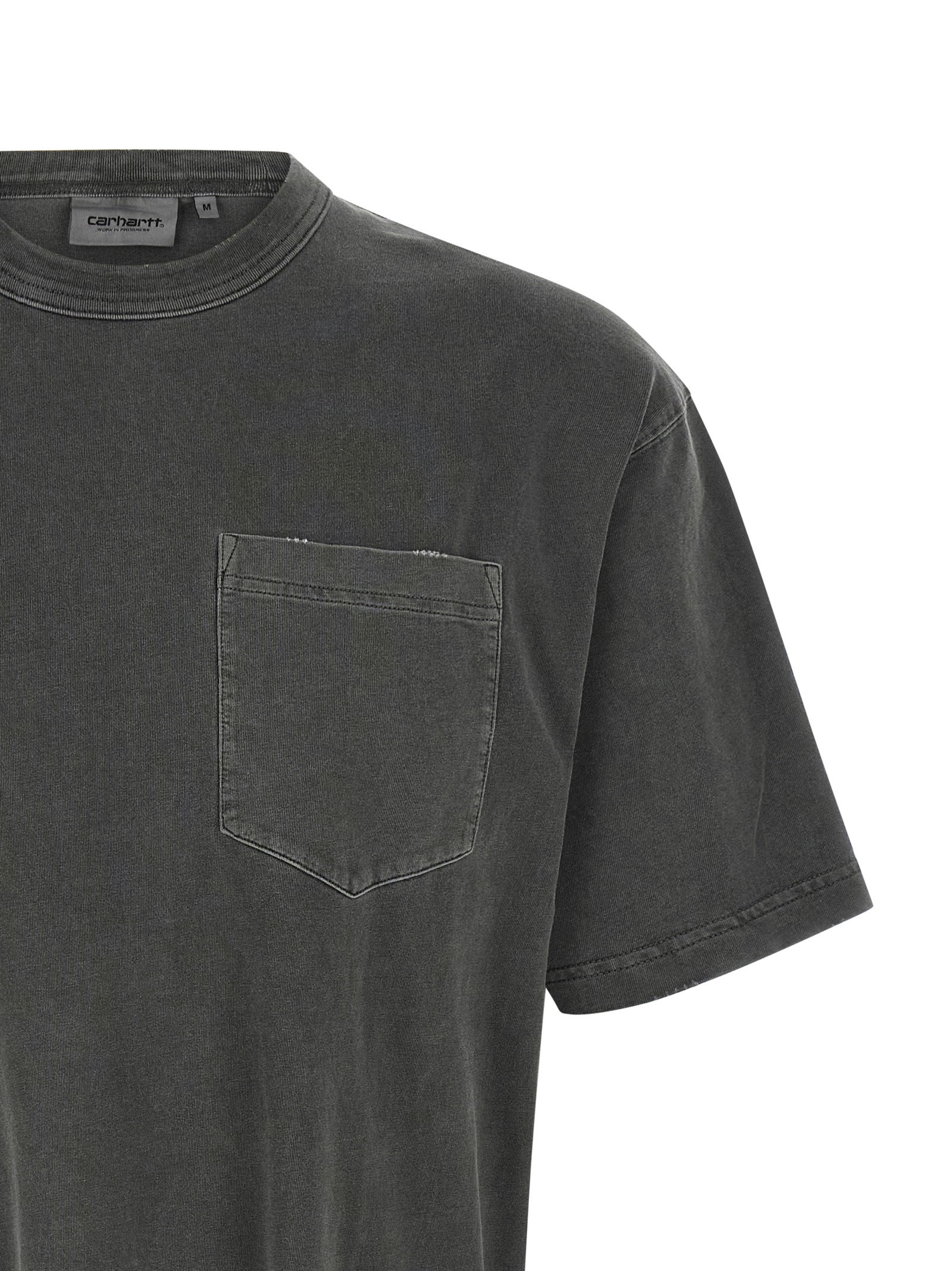'Torion Pocket' garment-dyed cotton t-shirt with crew neck, front logo patch, short sleeves.