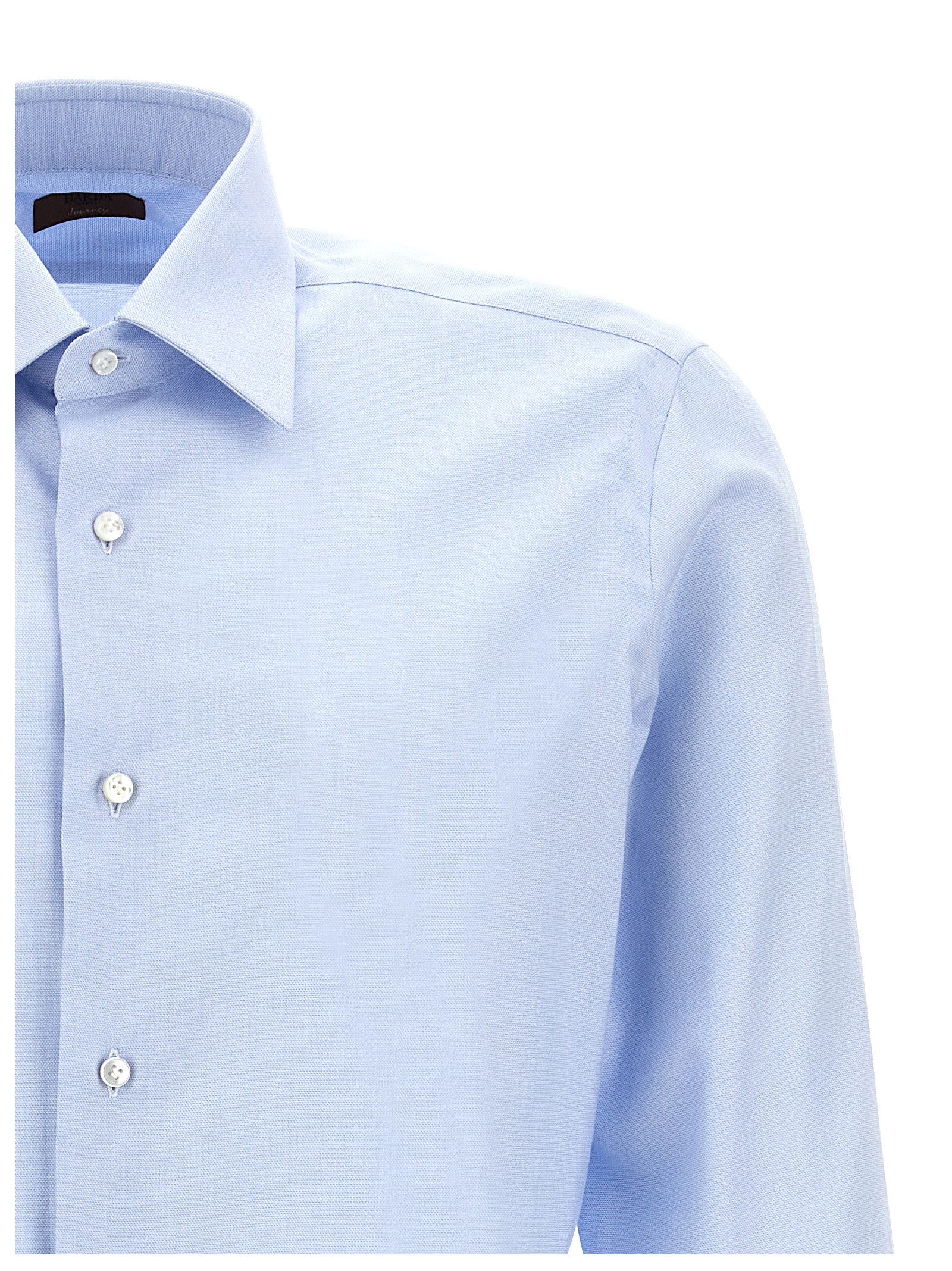 'Journey' micro-pearl cotton shirt with button closure, long cuffed sleeves.