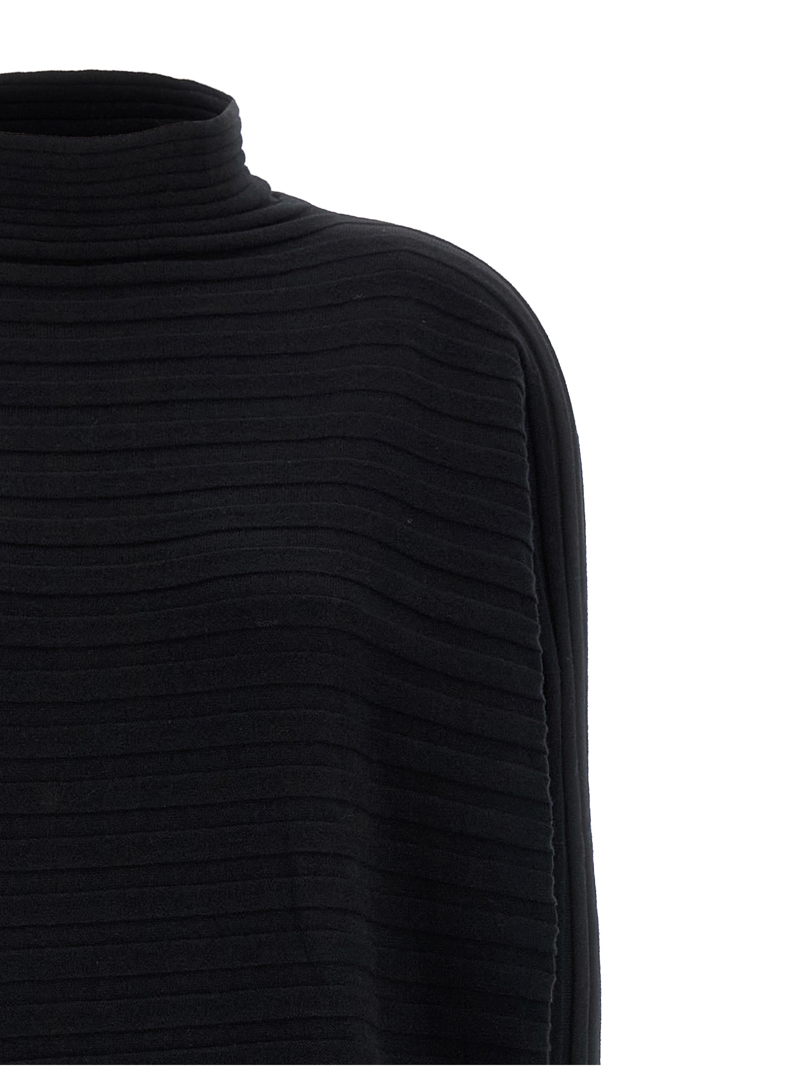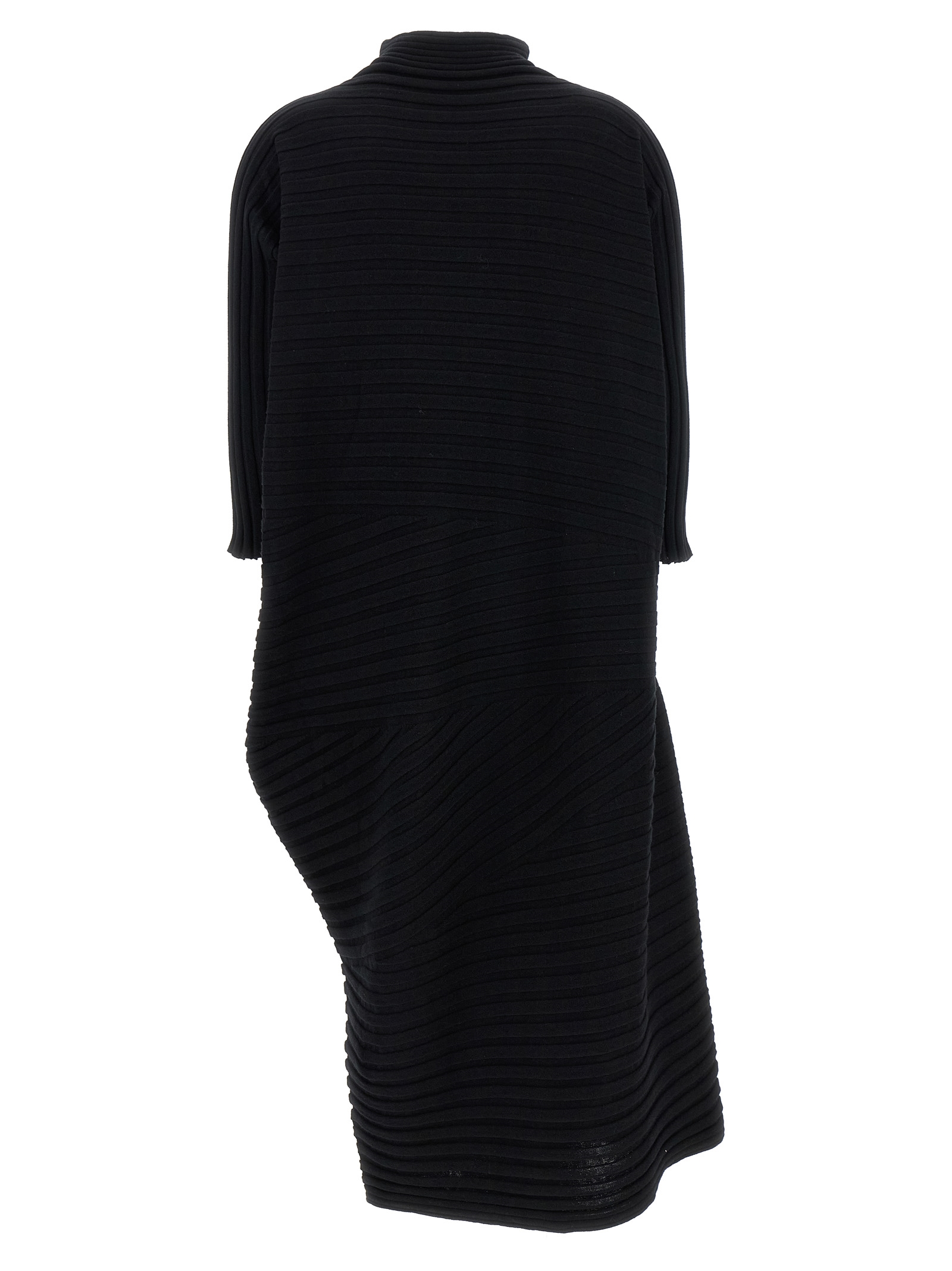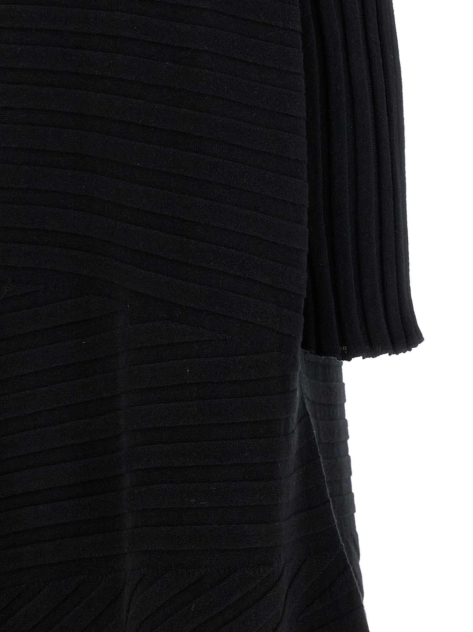 Платье-миди из хлопка и кашемира, выполненное из кашемирового трикотажа с использованием сочетания двух структур вязки с неровной текстурой, уникальный прямой силуэт, созданный комбинацией двух трикотажных структур в основе и утке, высокий воротник, рукава 3/4, асимметричный подол.Характеристики товара