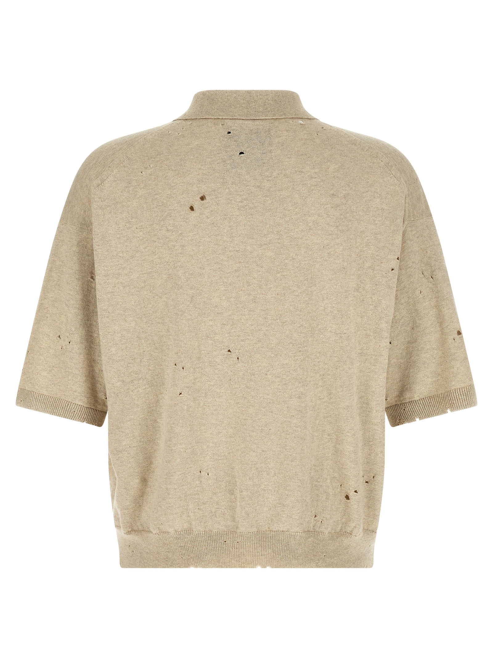 Used-effect cotton polo shirt with small holes, embroidery and front logo patch, open collar, short sleeves with cuffs and dropped shoulder, and headband on the hem.Характеристики товара