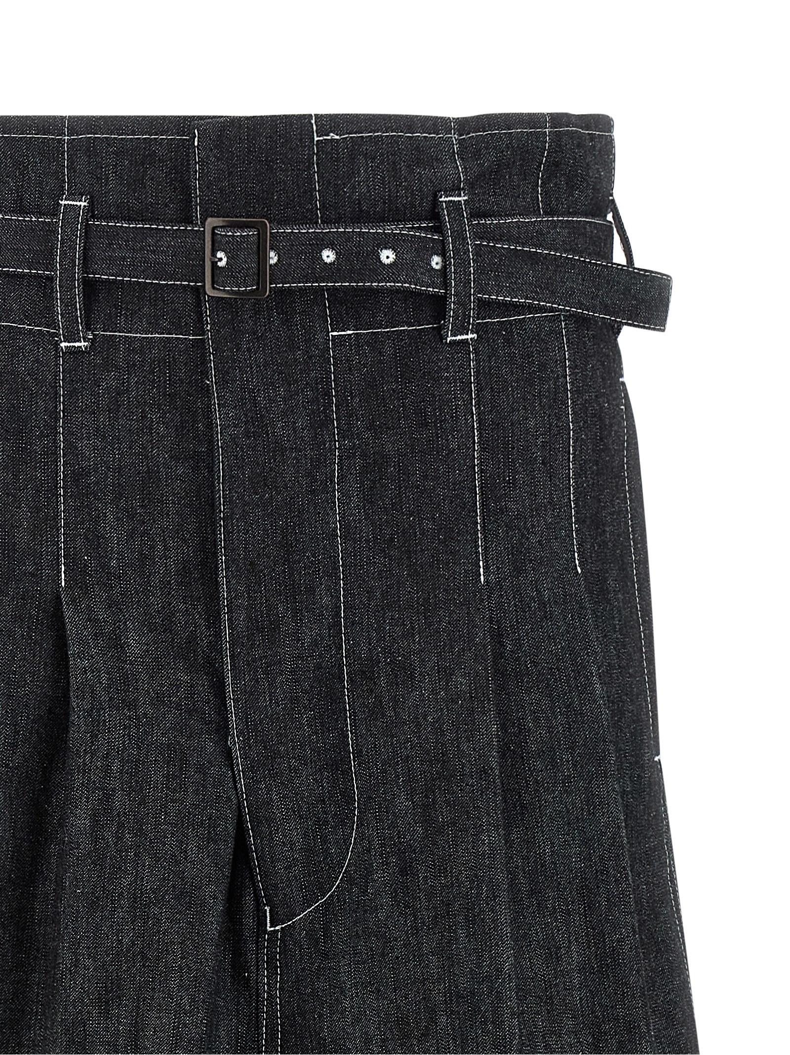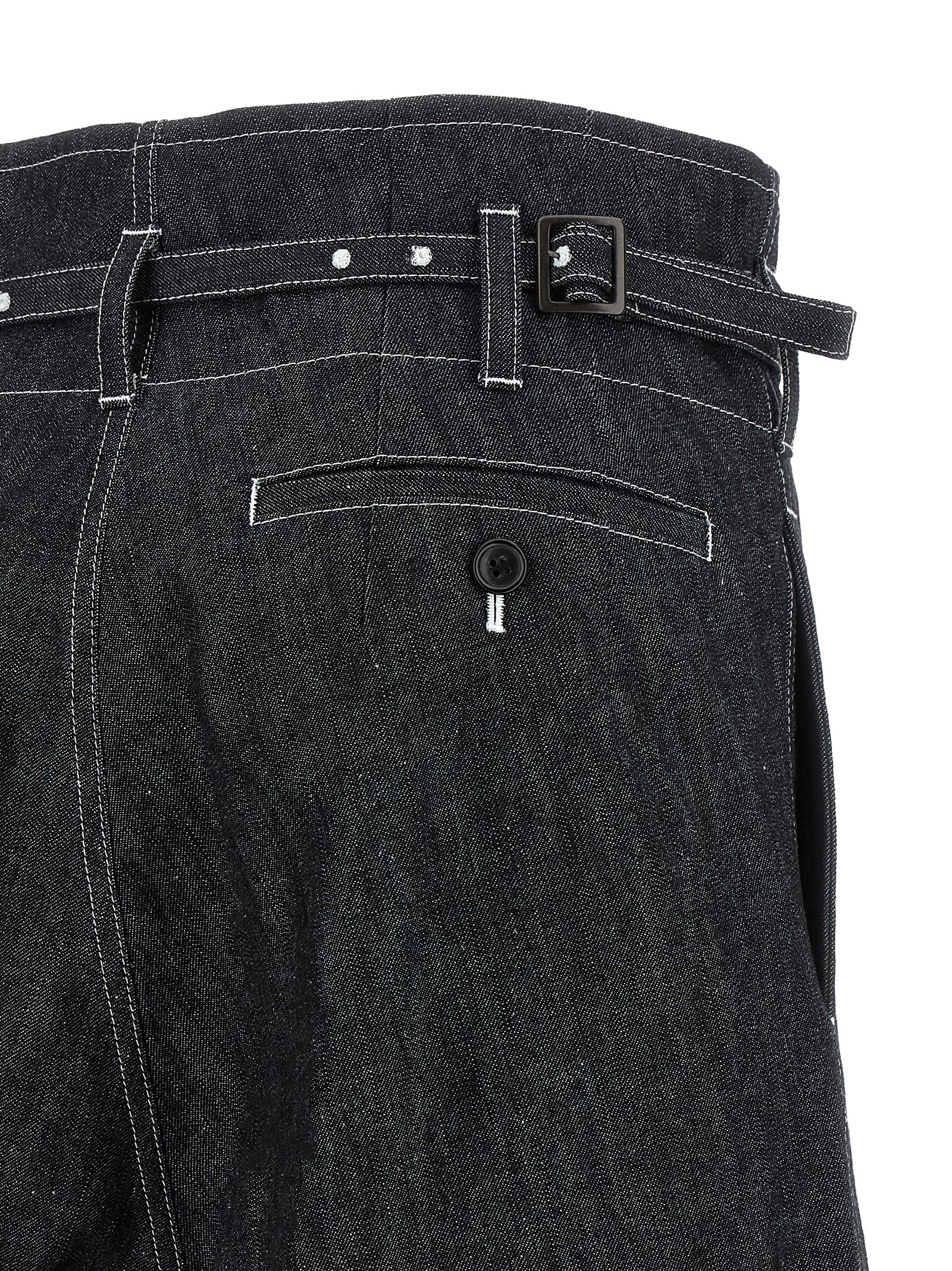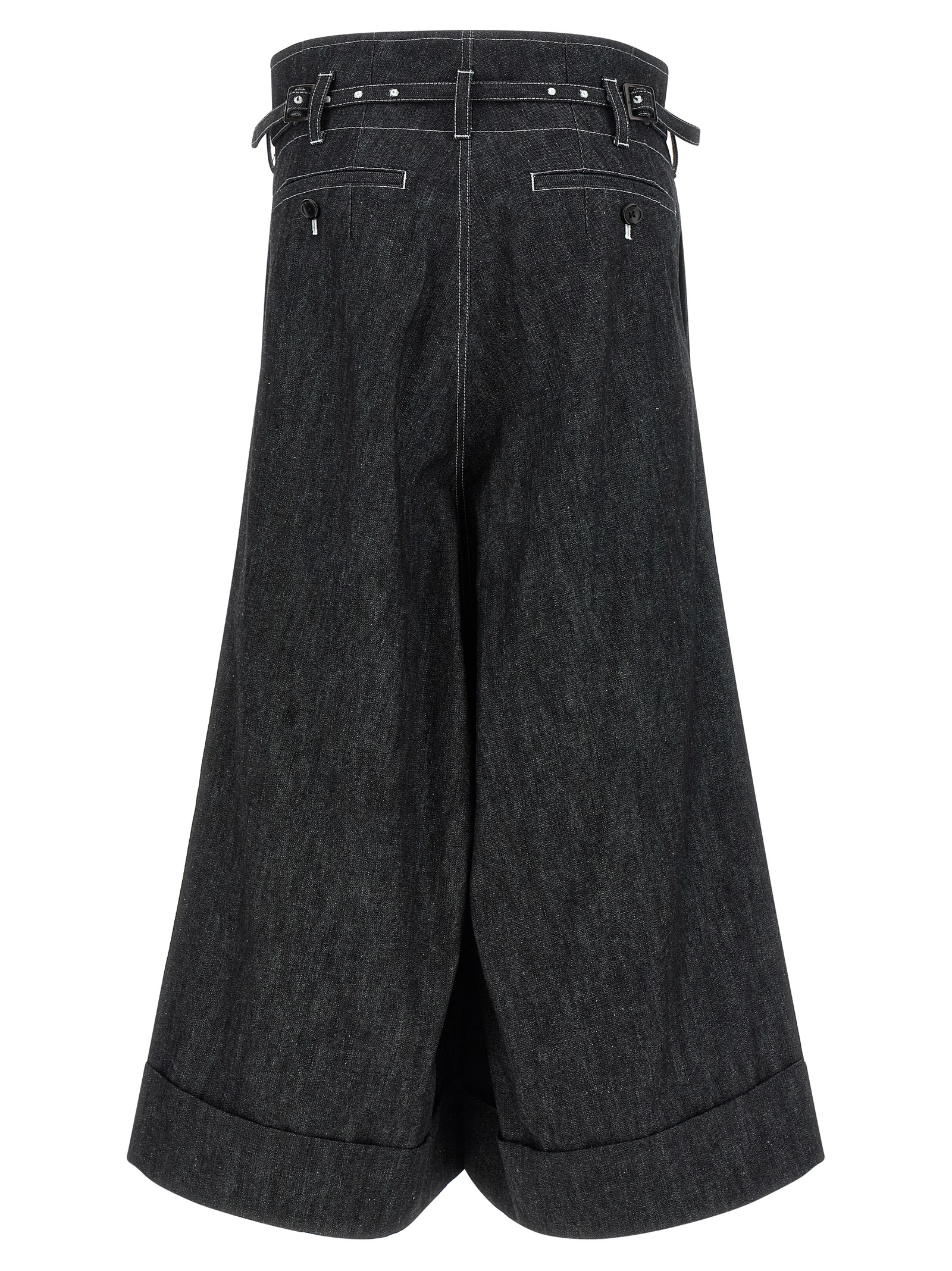 Хлопковые джинсы из денима с контрастной строчкой, высокая талия, мешковатая конструкция, укороченный крой, низкая посадка, широкие расклешенные штанины, застежка на молнию и крючок спереди, карманы, подвороты внизу штанин, съемный пояс в тон.Характеристики товара
