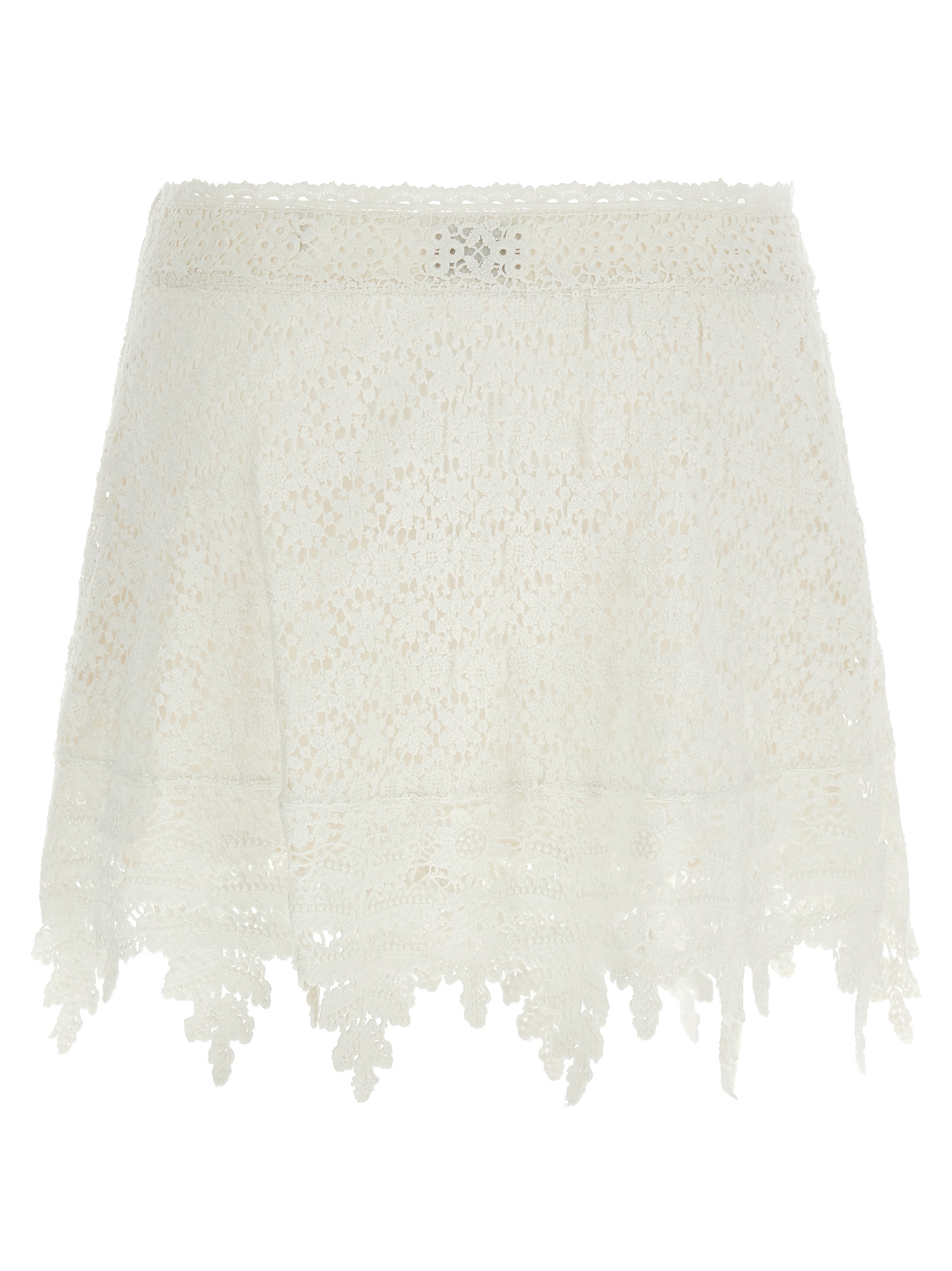Mini 'Hanta' crochet cotton skirt, pince, side zip closure, underskirt, asymmetrical hem.