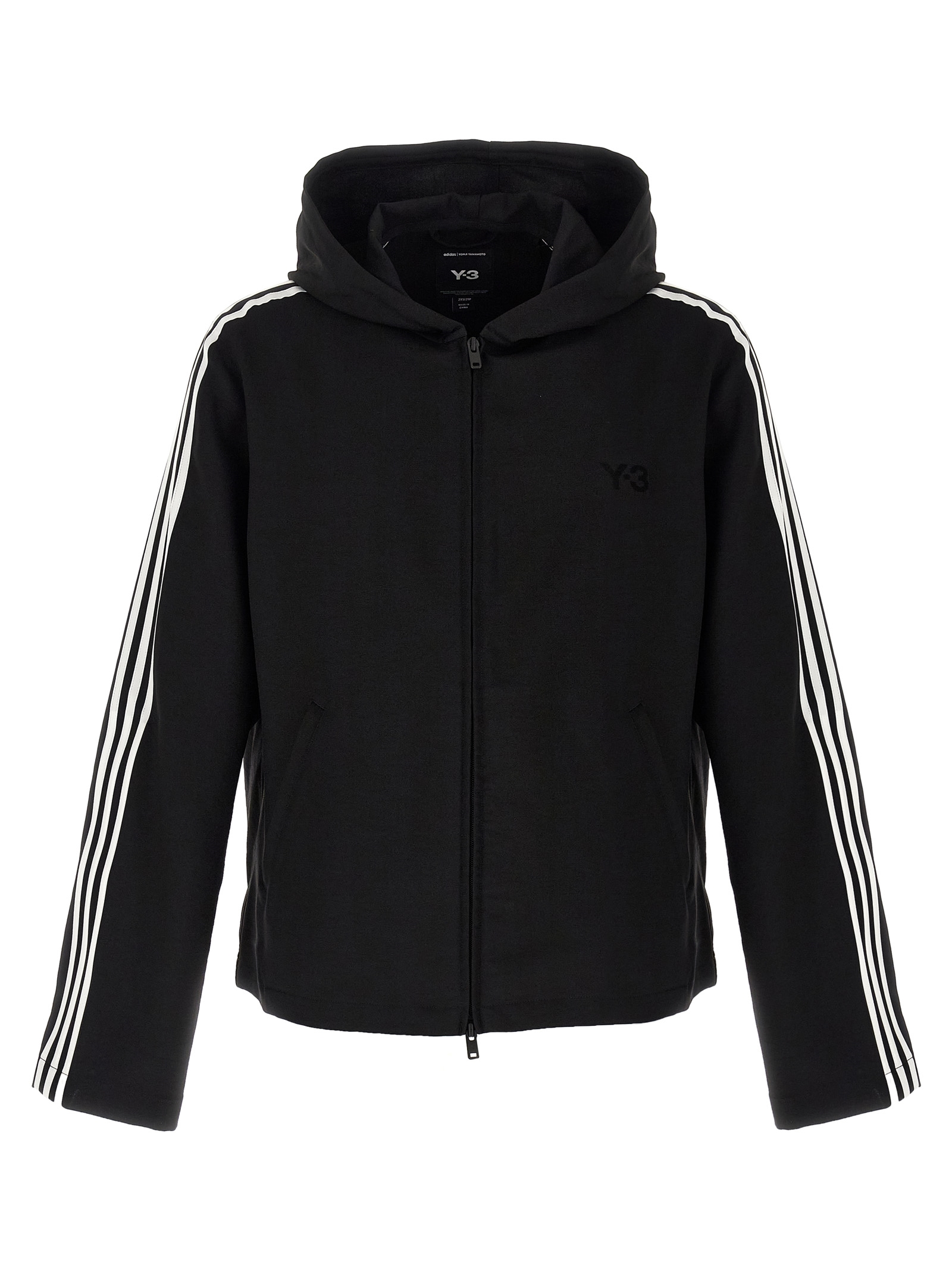 'Y-3 3-Stripes' hoodie in lyocell, nylon and sheep wool blend with contrast details, tone-on-tone logo and front zip closure, long flared sleeves with dropped shoulders, part of the strips are reinforced with wire.Характеристики товара