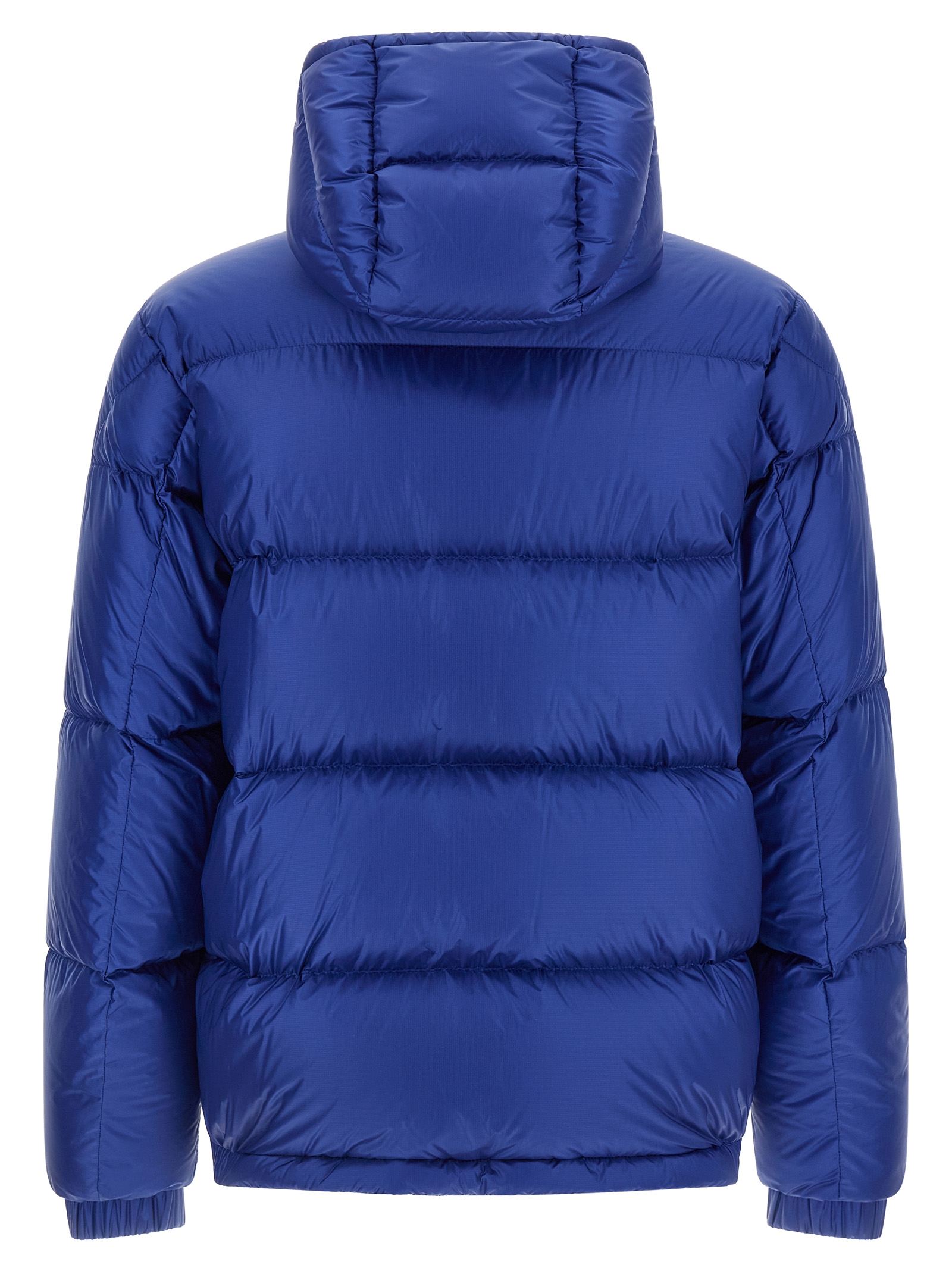 'Rivau' down jacket in technical fabric with boudin quilting with goose down padding, adjustable hood, high neck with ribbed wool knit lining, front zip closure, pockets, long sleeves with elastic cuffs, felt logo patch, elastic at the hem.