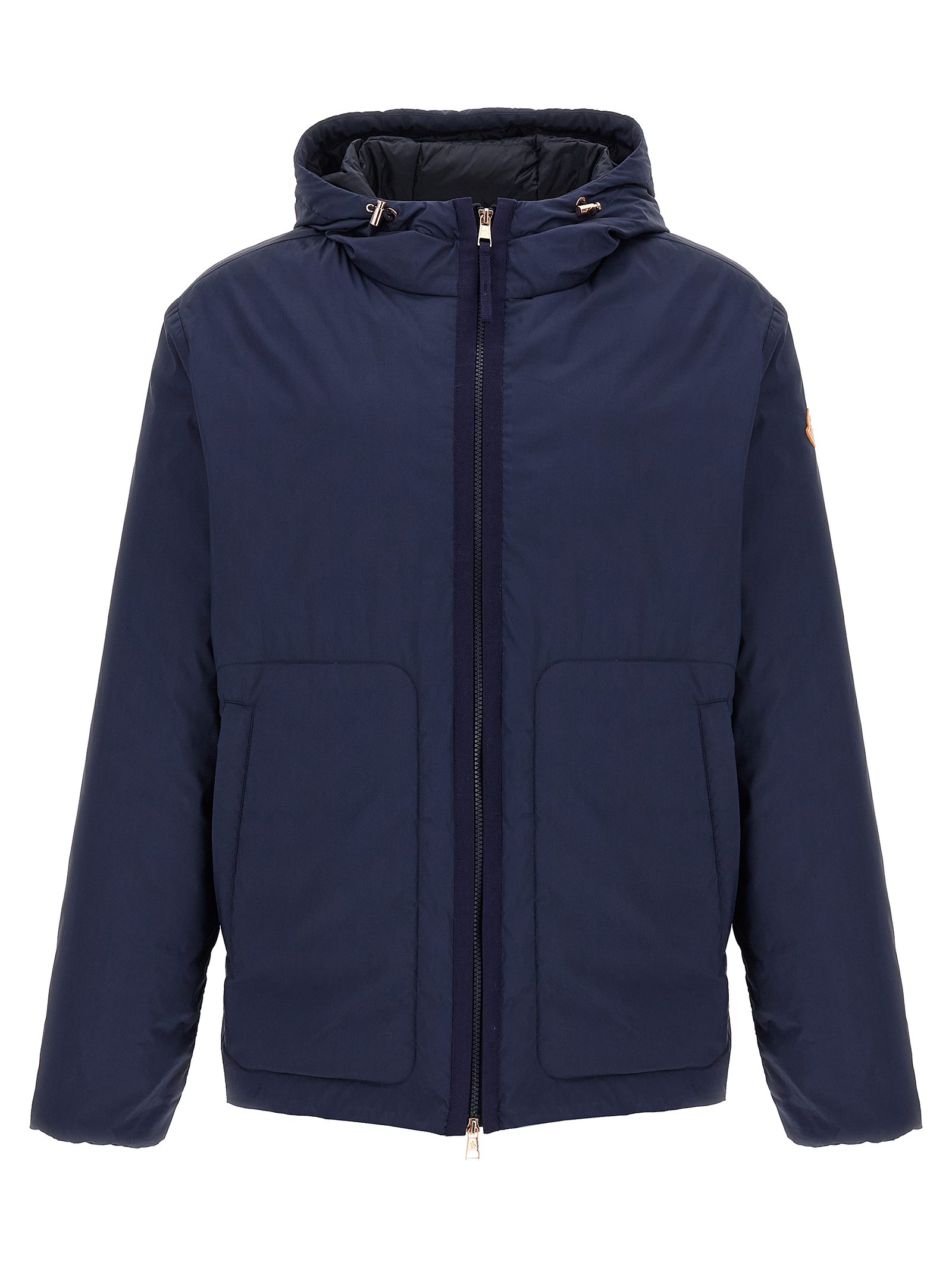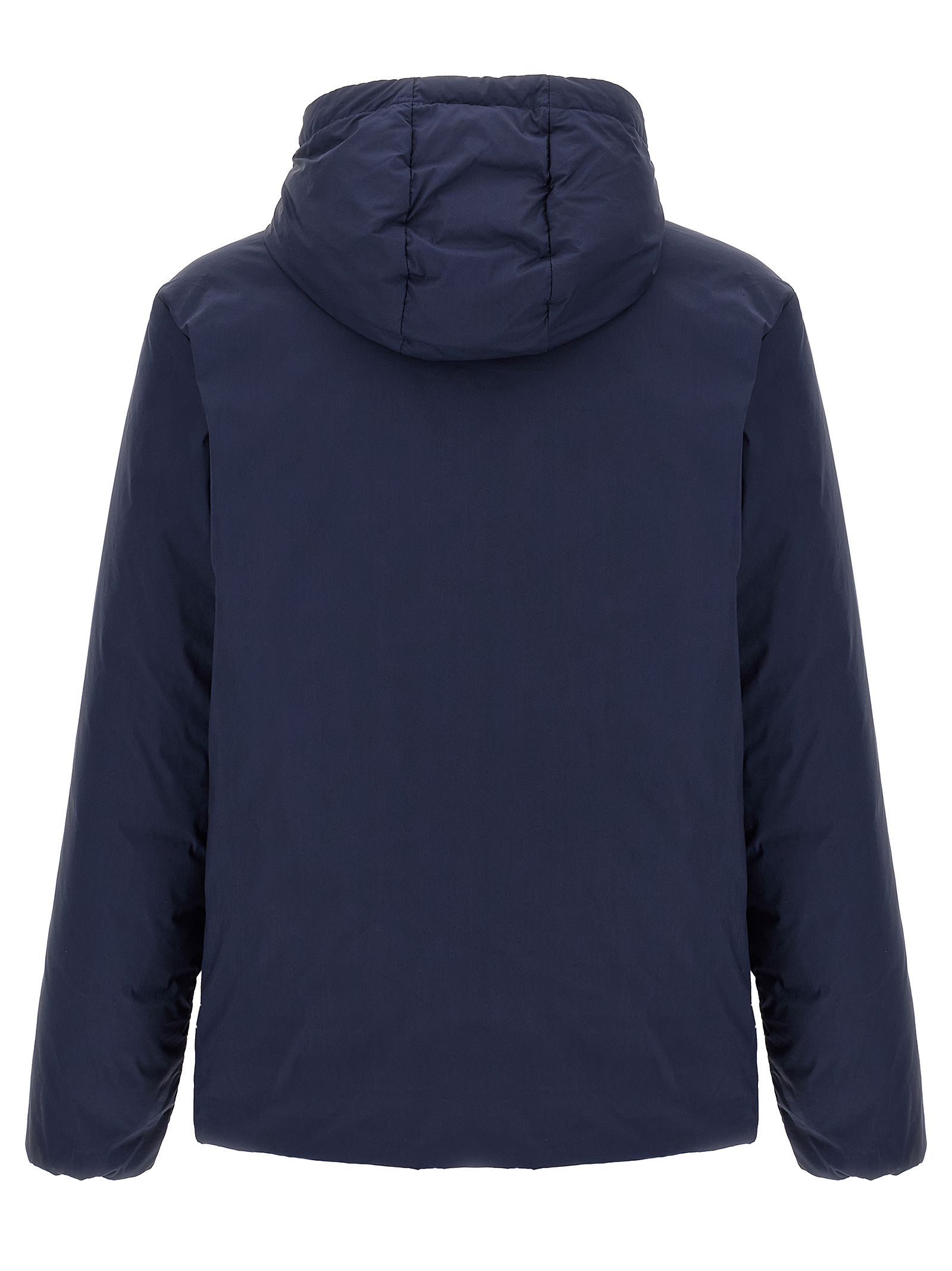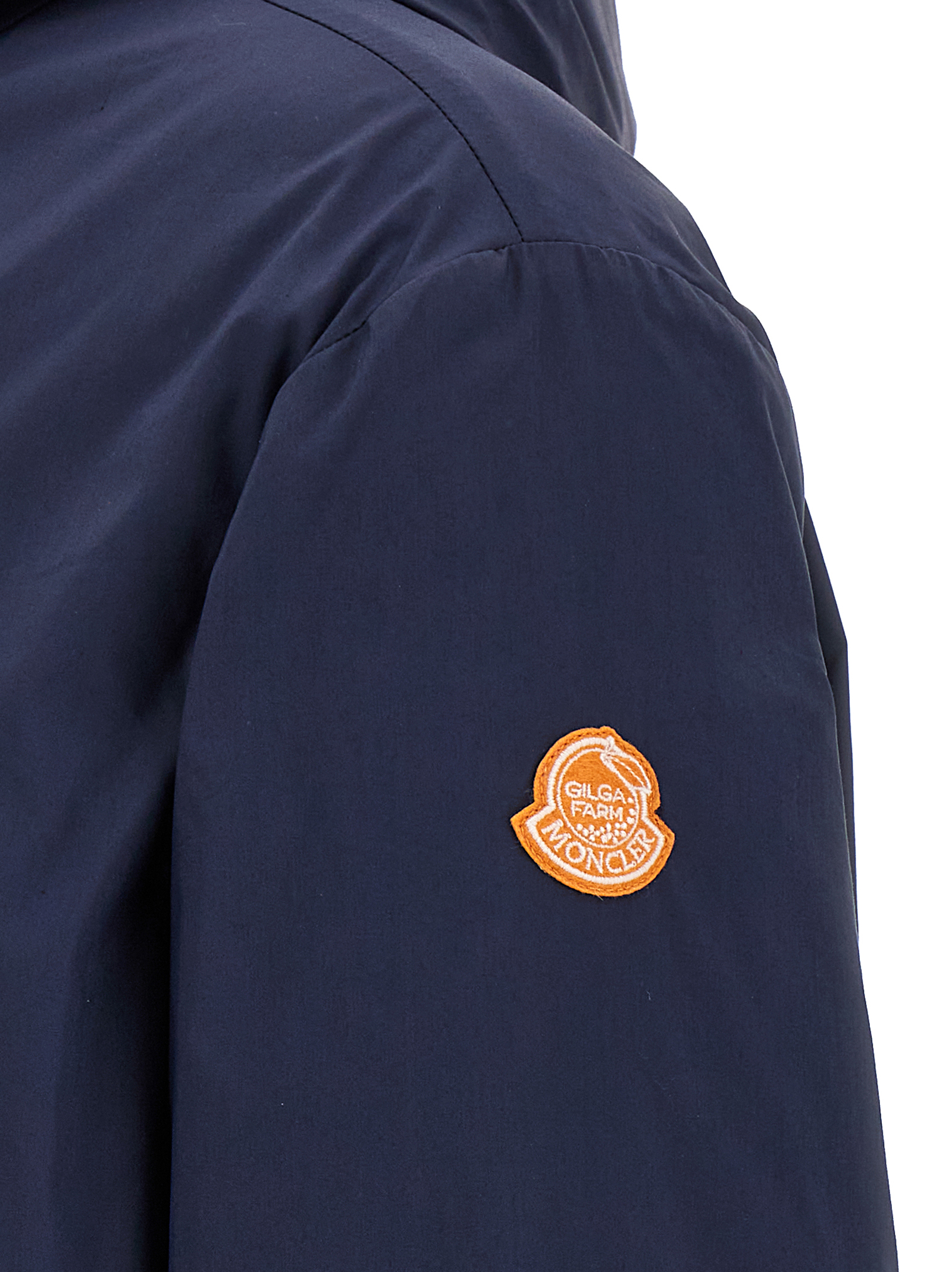 Donald Glover's Moncler x Gilga Farm 'Caracara' down jacket in technical fabric with goose down padding with quilted lining, adjustable hood, front zip closure, pockets, long sleeves with elastic cuffs, felt logo patch, and drawstring on the hem.