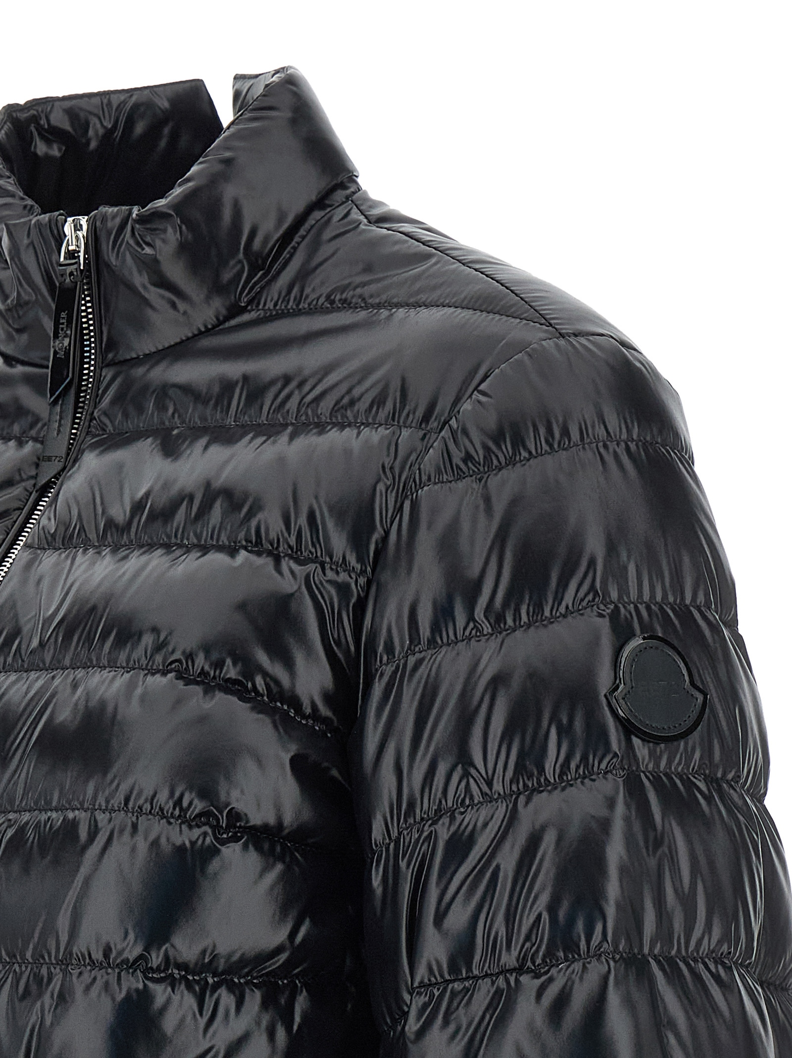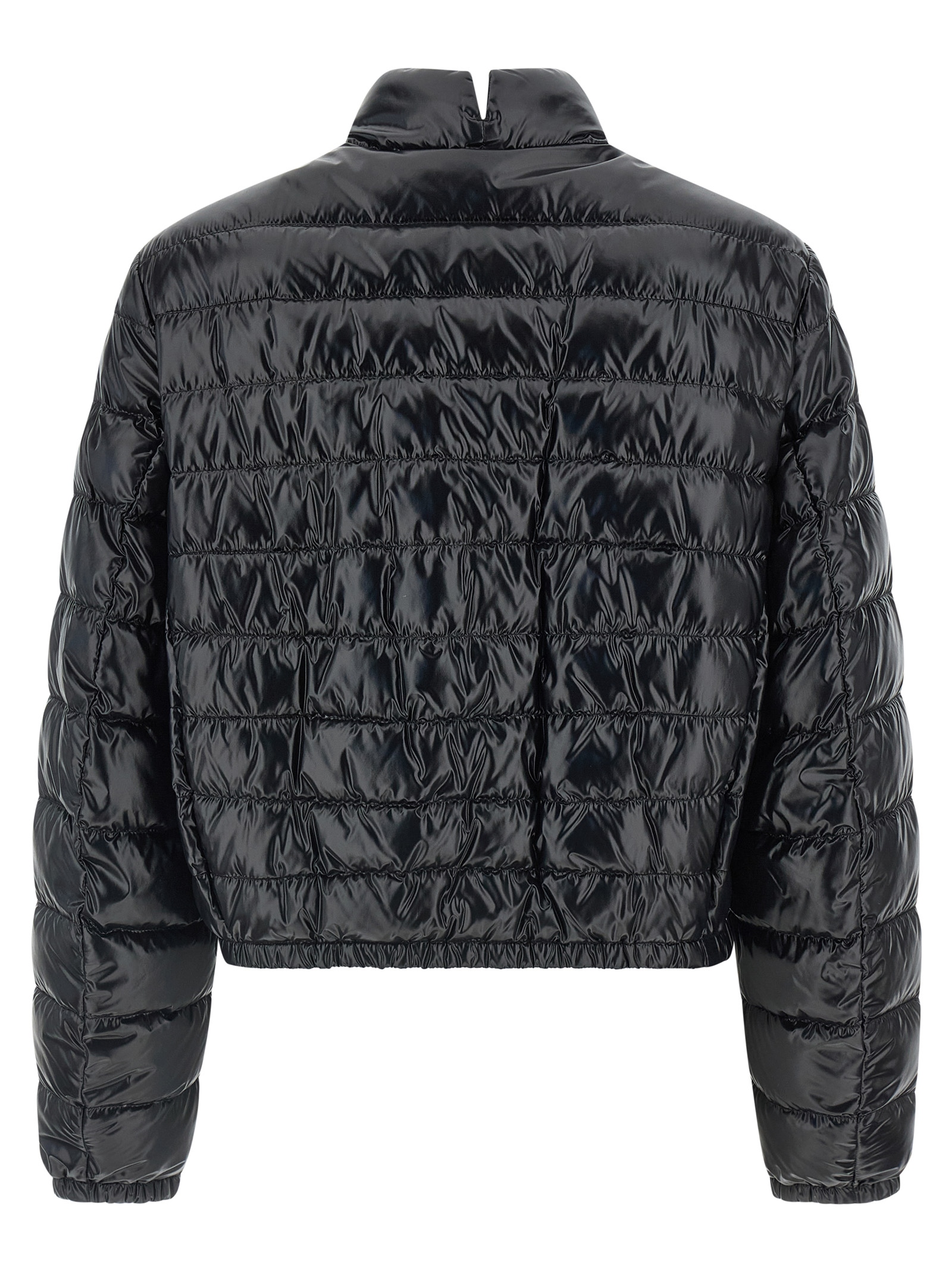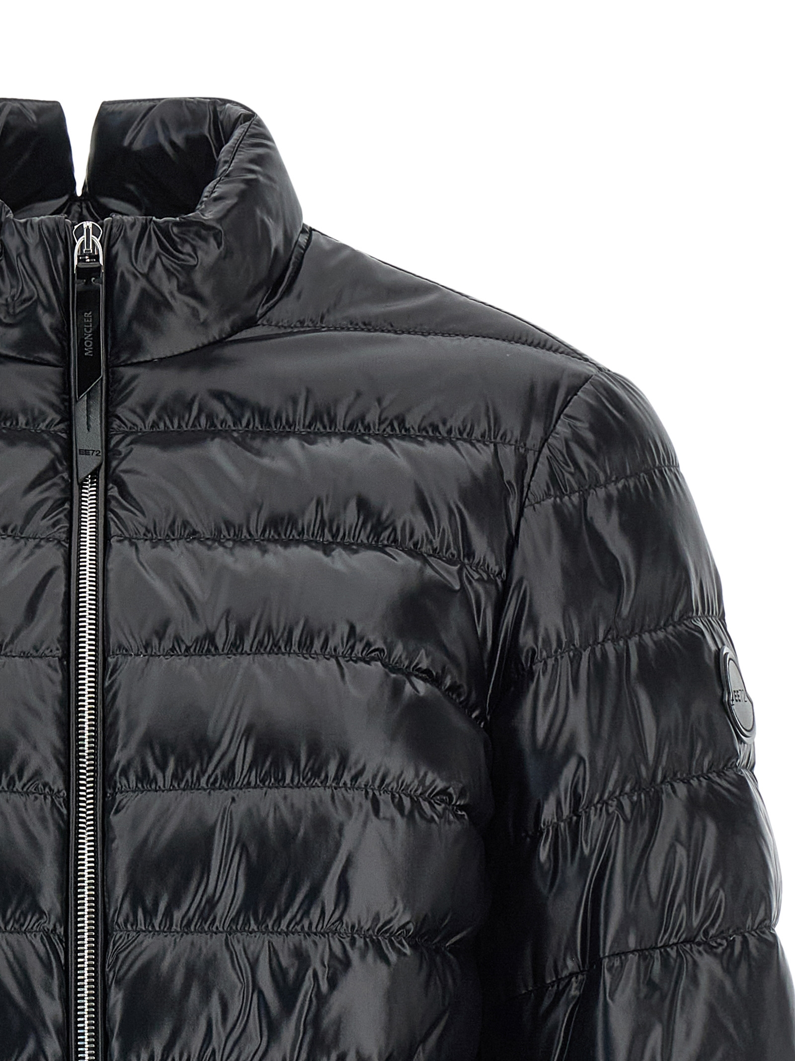 Moncler x Edward Enninful 'Knut' down jacket in quilted laqué nylon slightly padded with goose down, high neck, front zip closure, pockets, long sleeves with elastic cuffs, tone-on-tone logo patch appliqué, and elastic hem.
