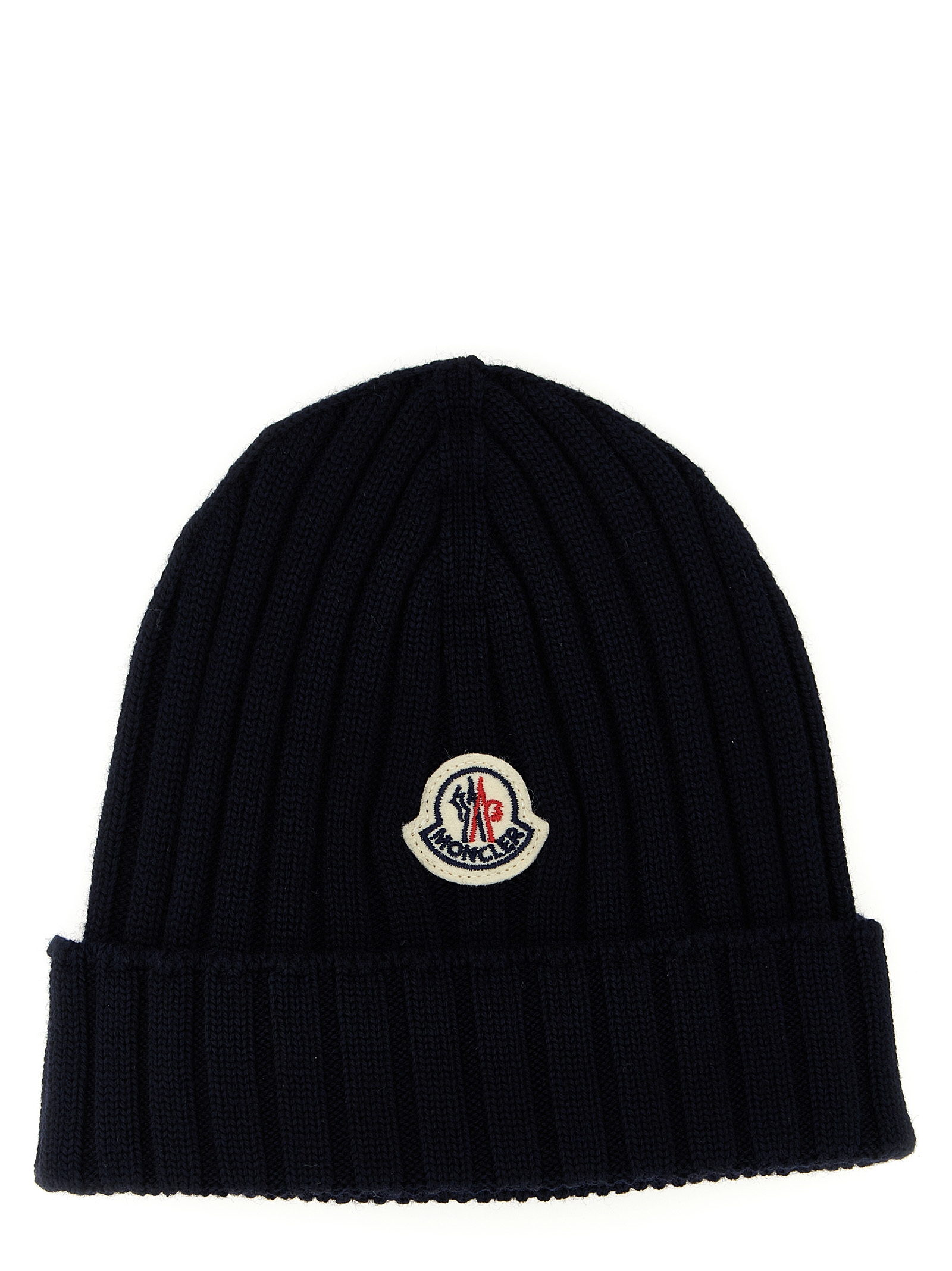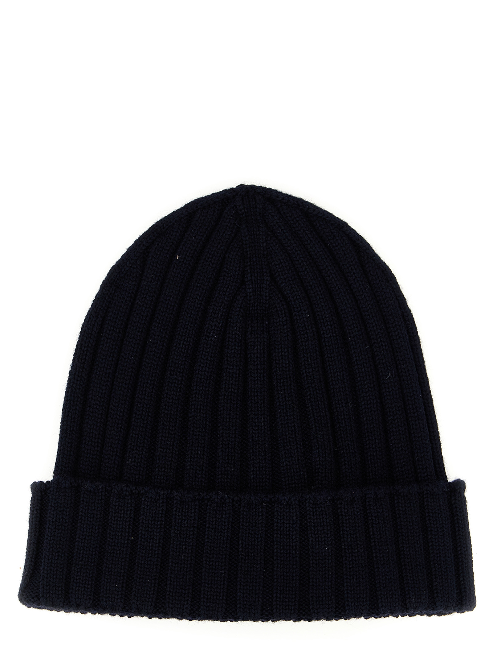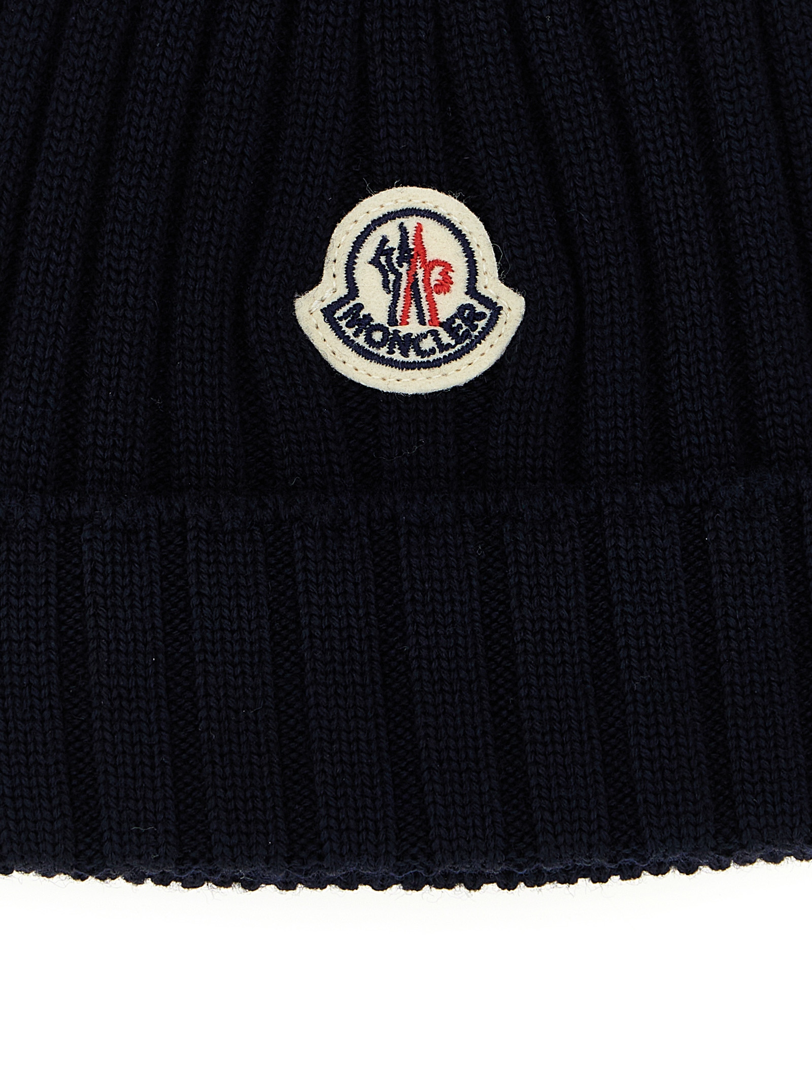 KIDS Ultra-fine half-ribbed Merino wool beanie, front felt logo patch.