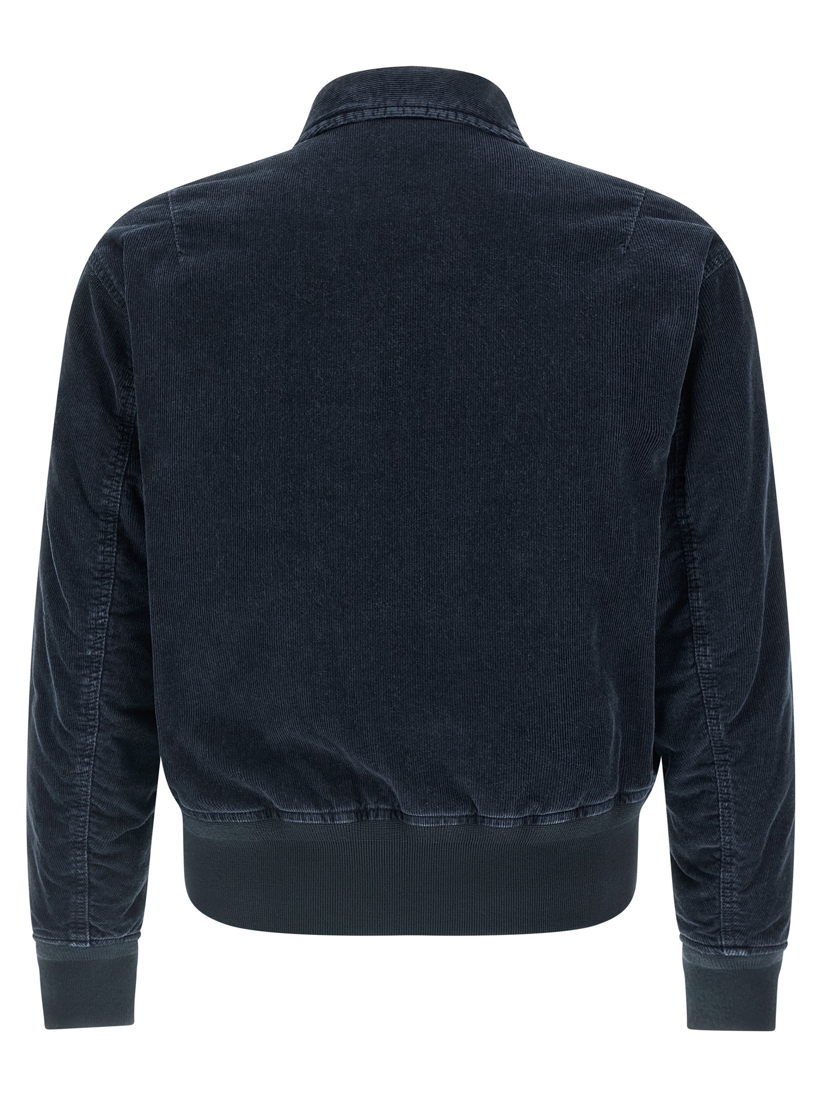 Garment-dyed 2000 stripes cotton corduroy Micro Corduroy-Rinsed bomber jacket with stretch knit details, padded cotton lining, shirt collar, front zip closure, pockets, long cuffed sleeves and logo badge.