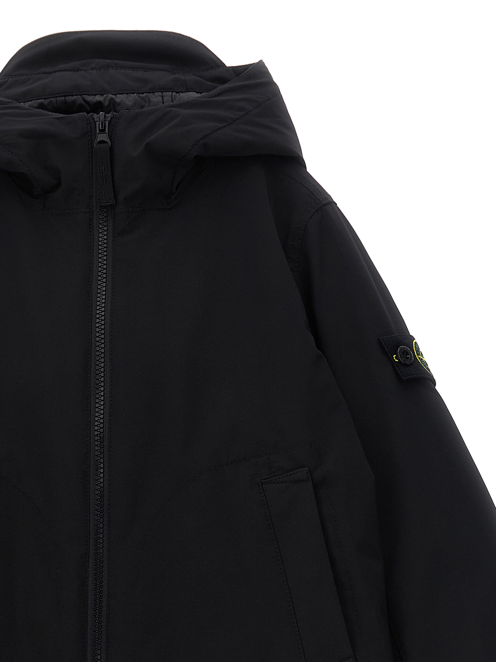 KIDS Water-repellent Primaloft® fabric parka with quilted nylon lining, hood with visor, front zip closure, pockets, long sleeves with front logo badge.