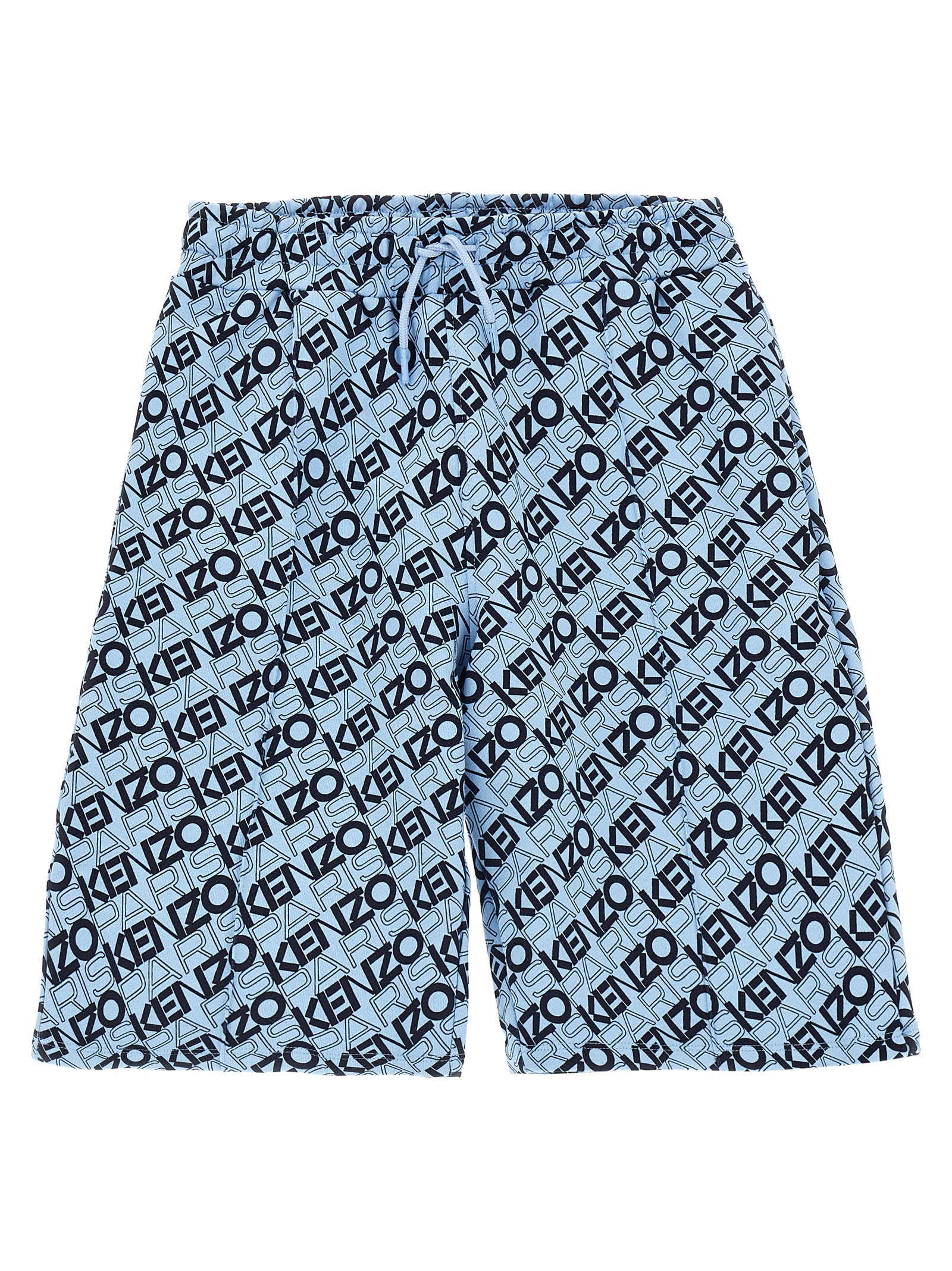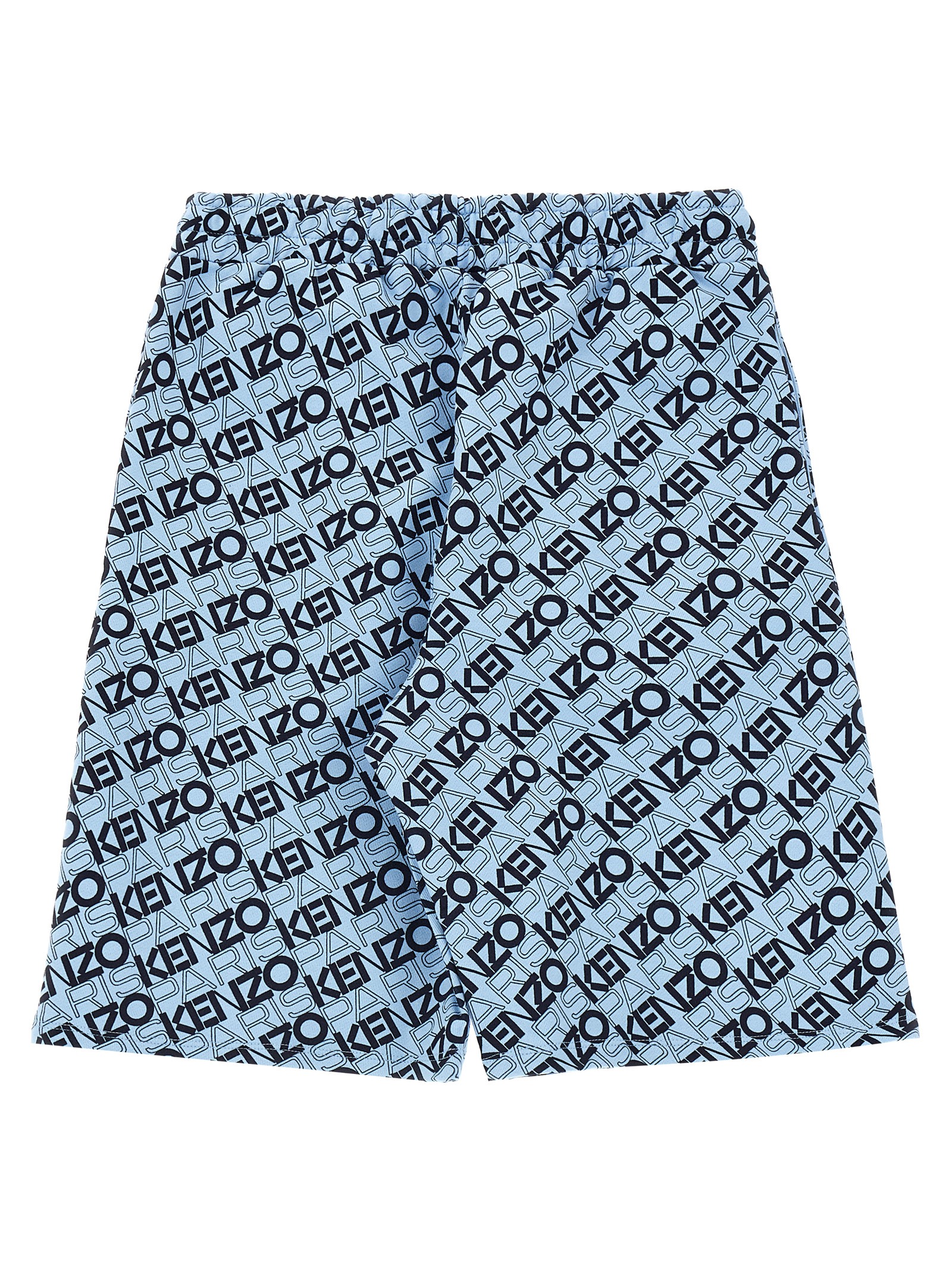 KIDS Gauze cotton bermuda shorts with all-over logo print, adjustable drawstring elastic waistband, pockets. SUSTAINABLE: This product is made of organic cotton.