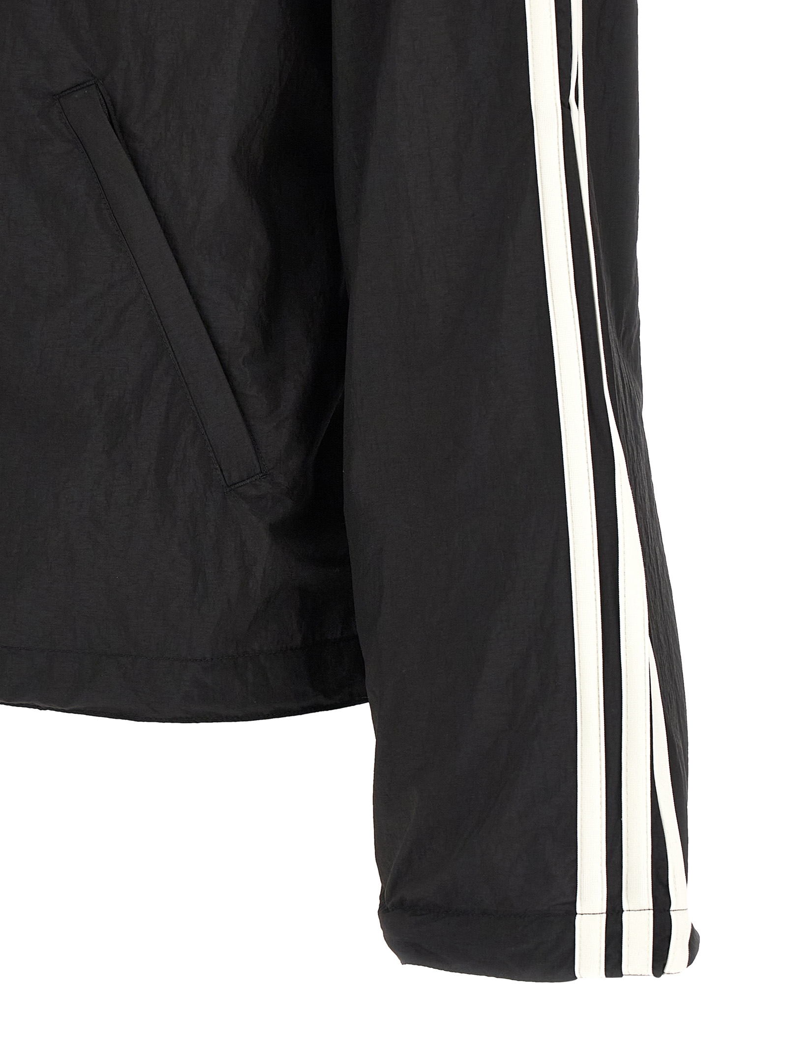 Tech fabric hoodie with 'Y-3' logo print and front zip closure, pockets, long sleeves with iconic 3 contrast stripes and wire on the sleeve hem, drawstring on the hem, unlined.