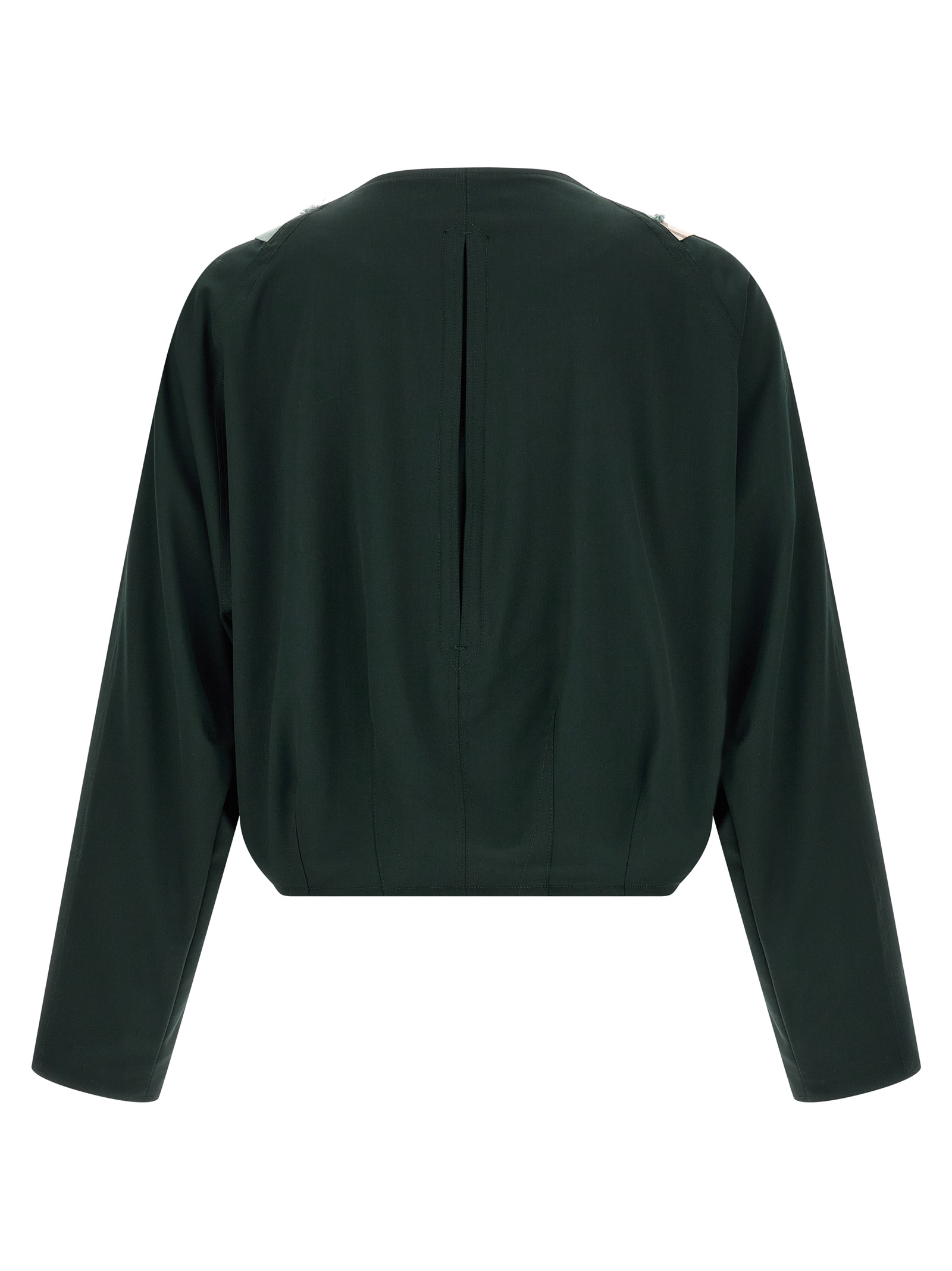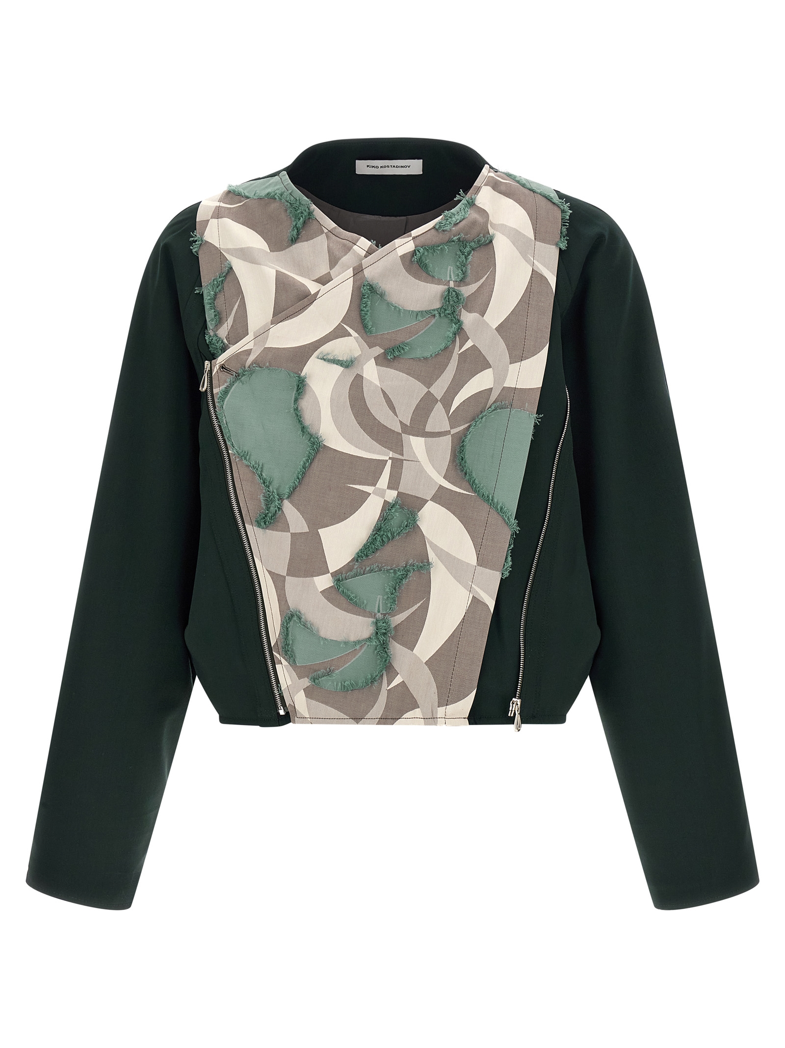 Virgin wool Csomor blouson with geometric pattern fabric insert on the front with raw cut hem details, front crossed V-neck with adjustable zip and button asymmetric closure, pockets, long sleeves with dropped shoulders, lining.Характеристики товара