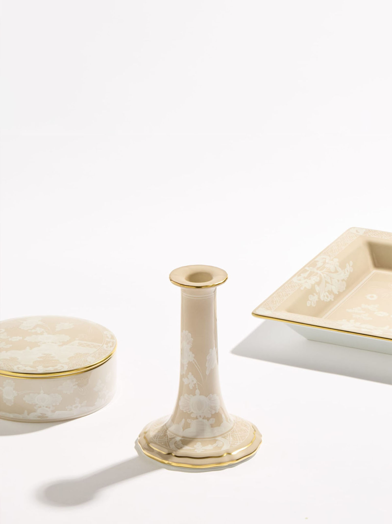 Design candle holder with beige meringue decoration and gold thread. 'Oriente Italiano' collection. Not suitable for microwave.Өнімнің ерекшеліктері