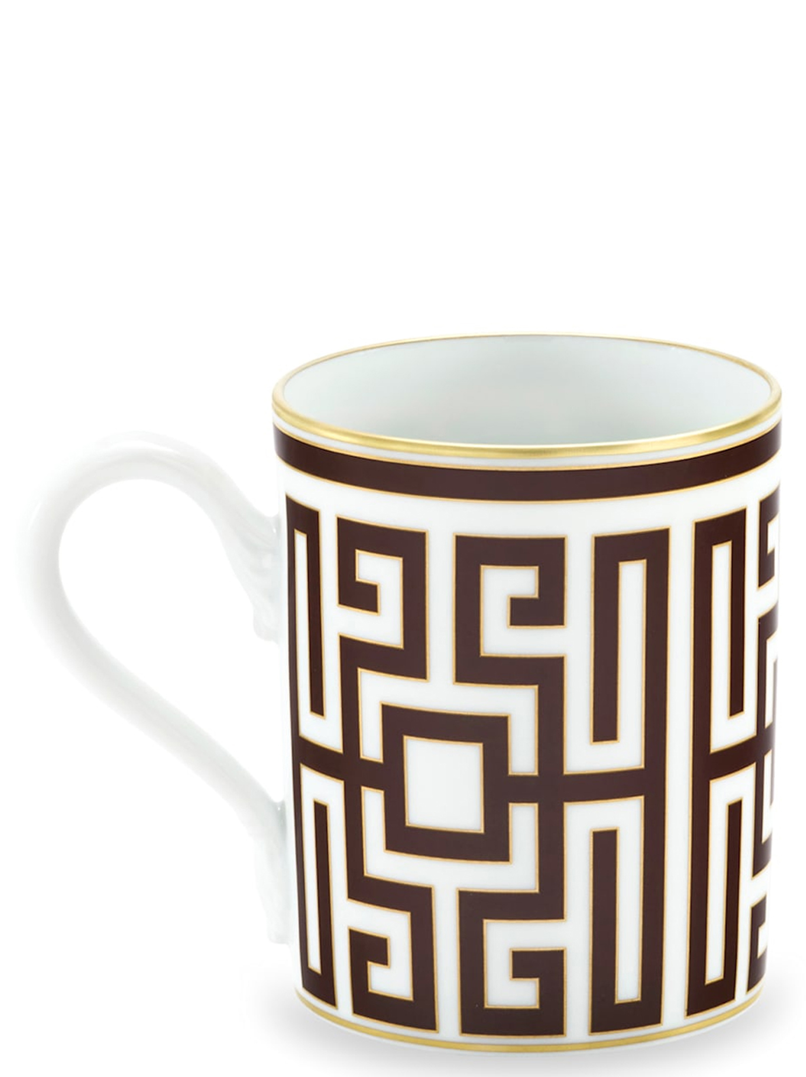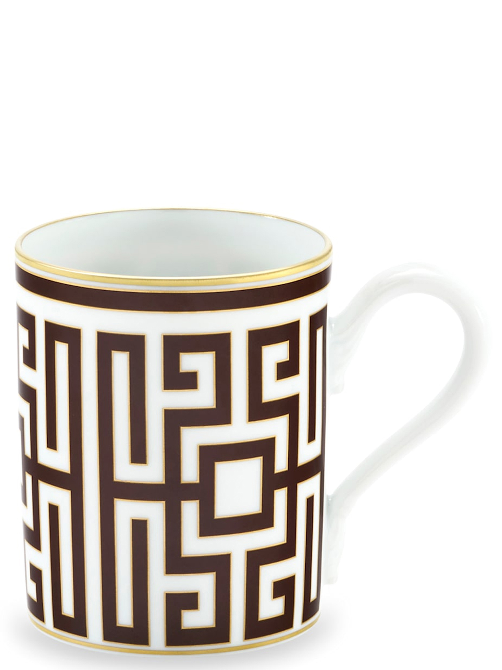 Porcelain cup with Ebony decoration and gold thread. 'Labirinto' collection by Gio Ponti. Not suitable for microwave. Dishwasher safe with gentle cycle.