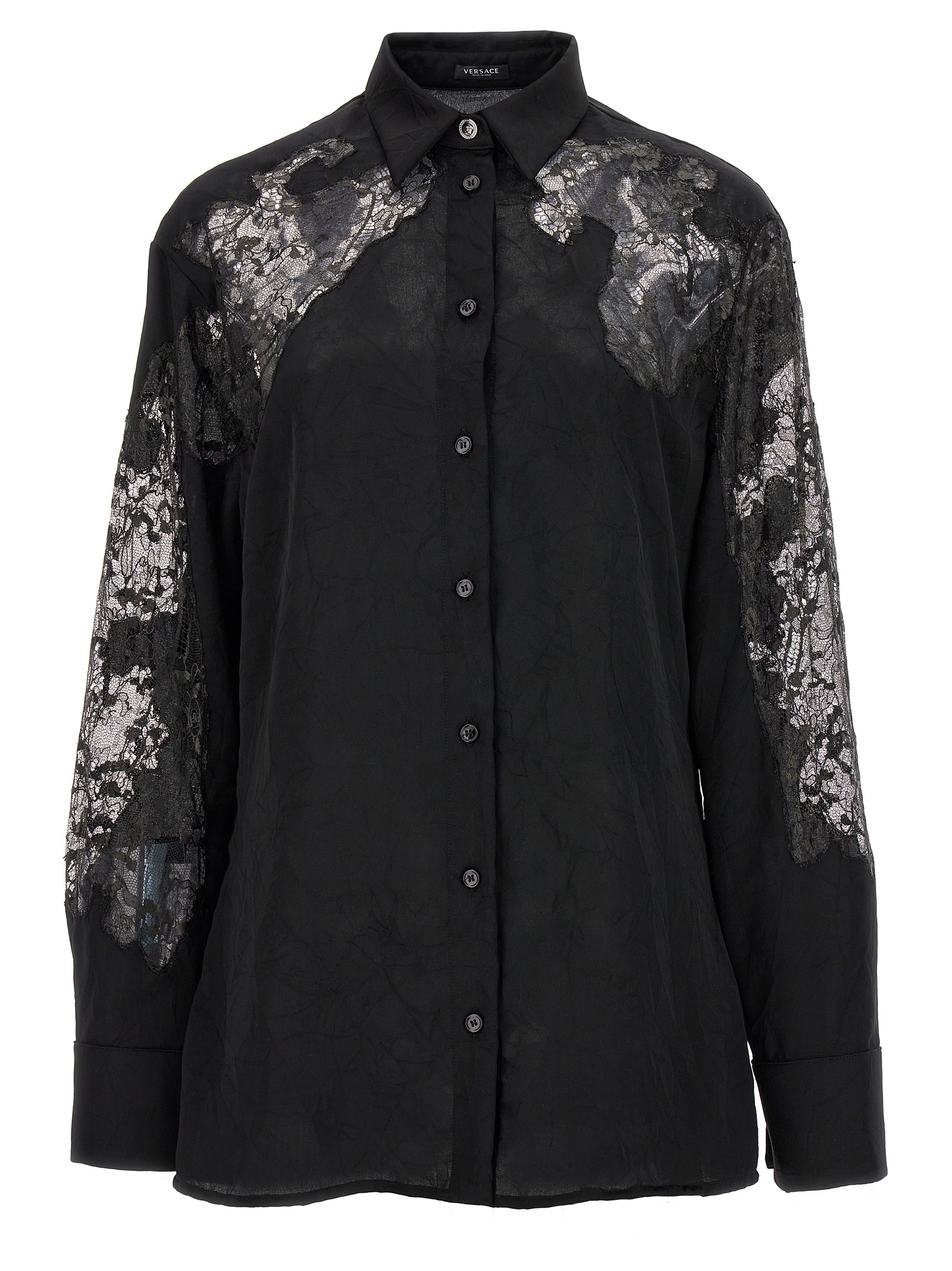 Recycled-effect satin shirt with lace inserts, long cuffed sleeves and a button closure.Өнімнің ерекшеліктері
