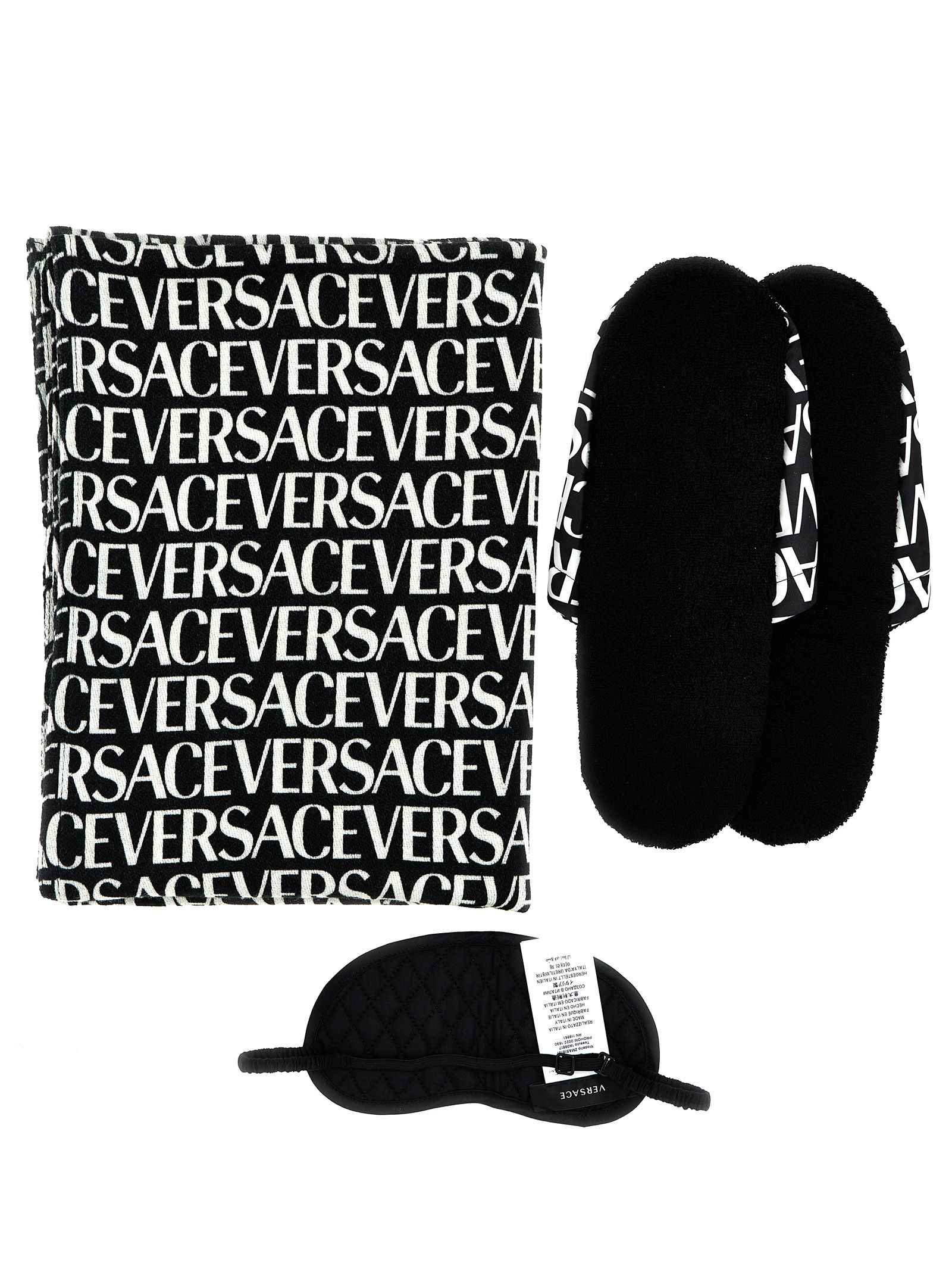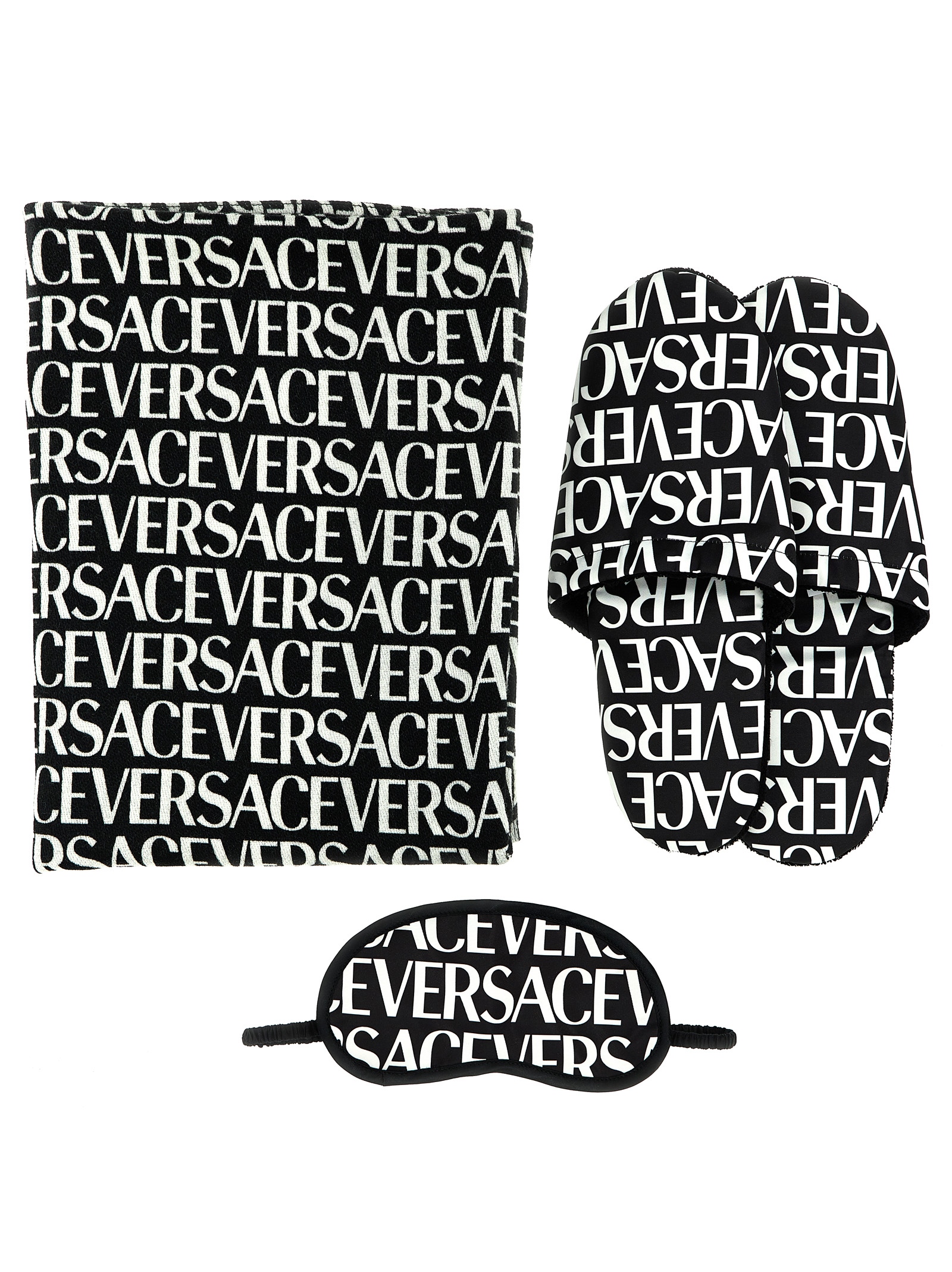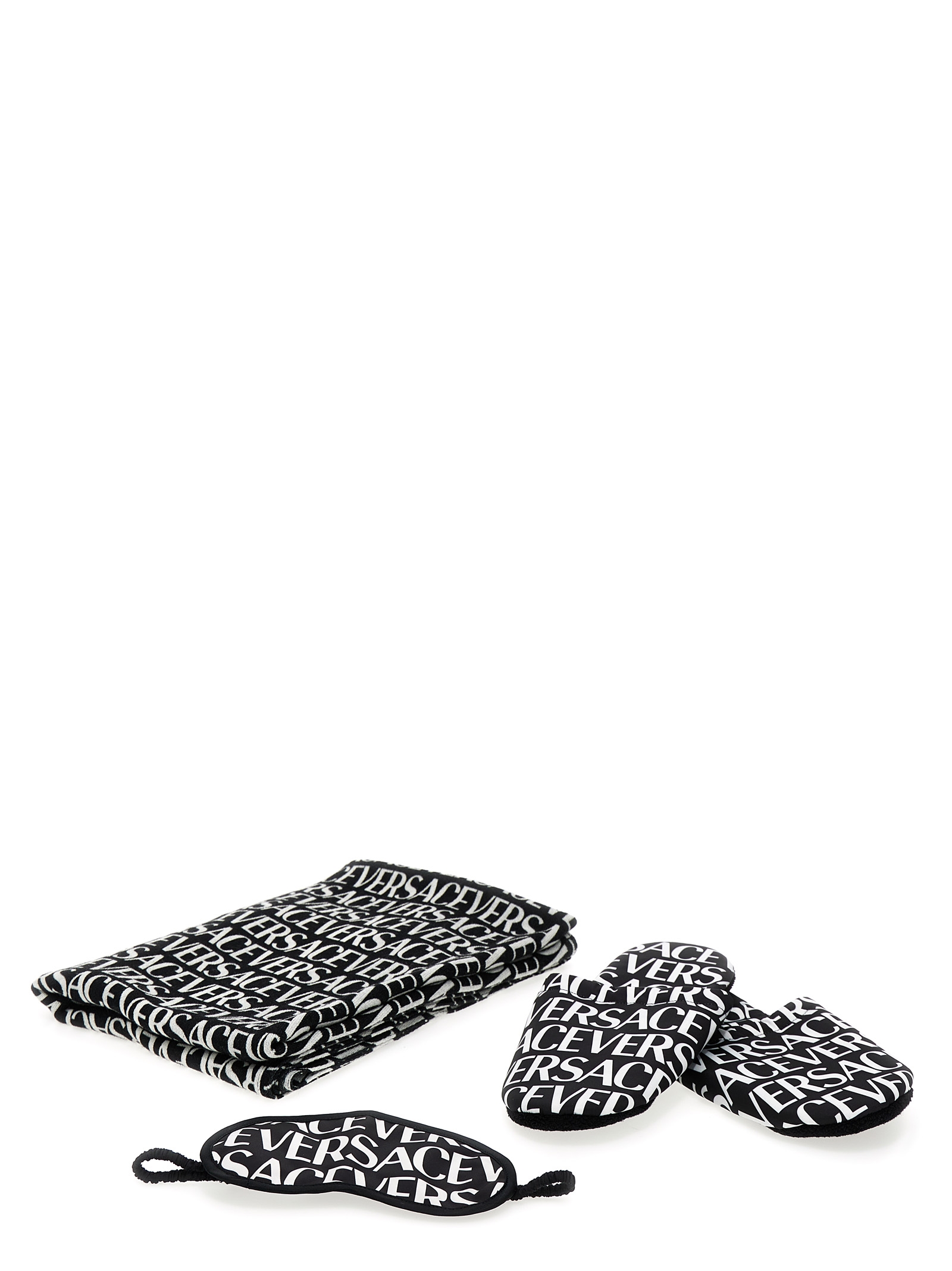 Versace Allover travel kit with slippers, eye mask, and blanket.Өнімнің ерекшеліктері