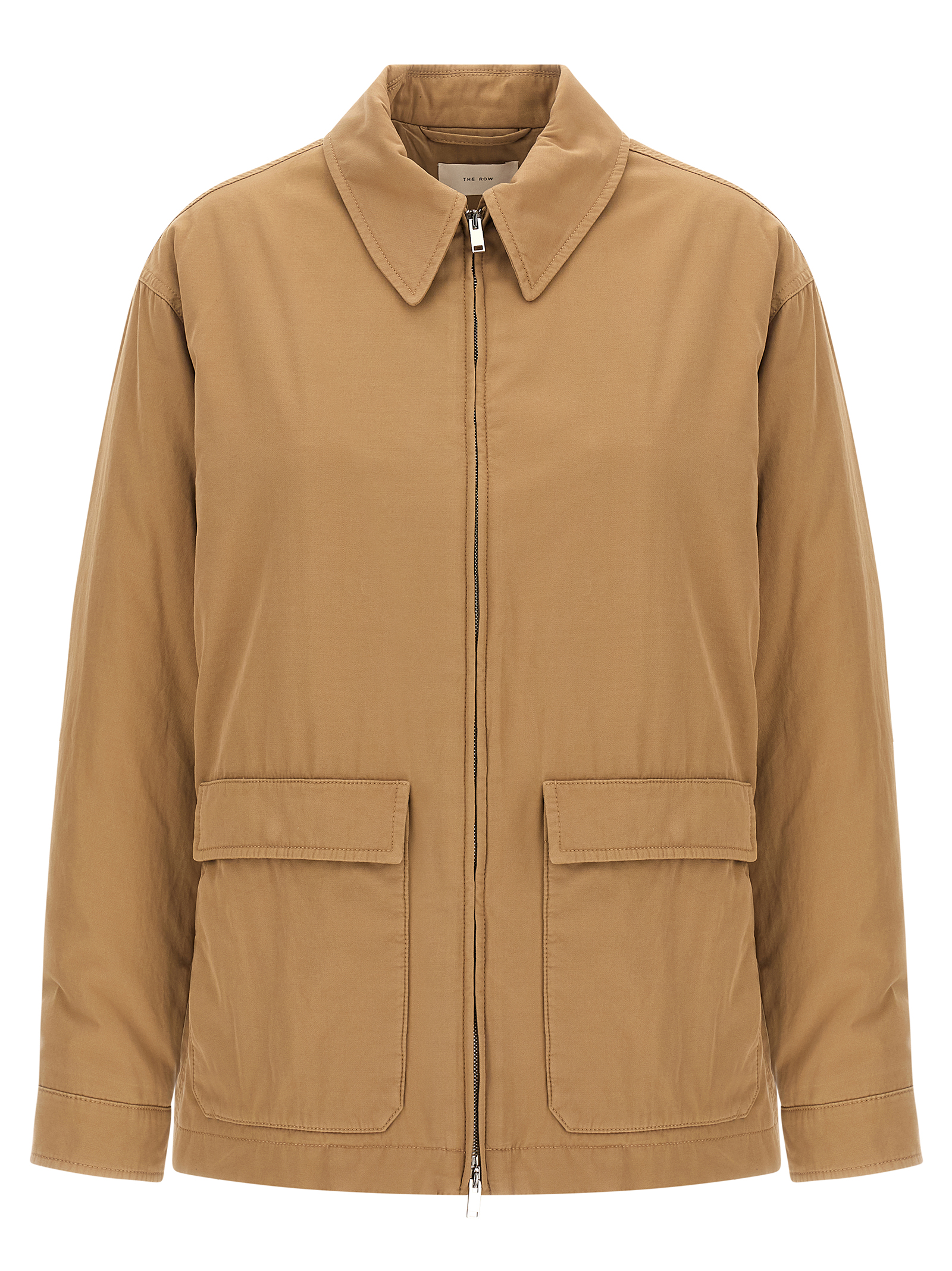 'Aurelius' slightly padded cotton gabardine and cashmere jacket, shirt collar, front zip closure, pockets, long cuffed sleeves and dropped shoulders, adjustable side straps.
