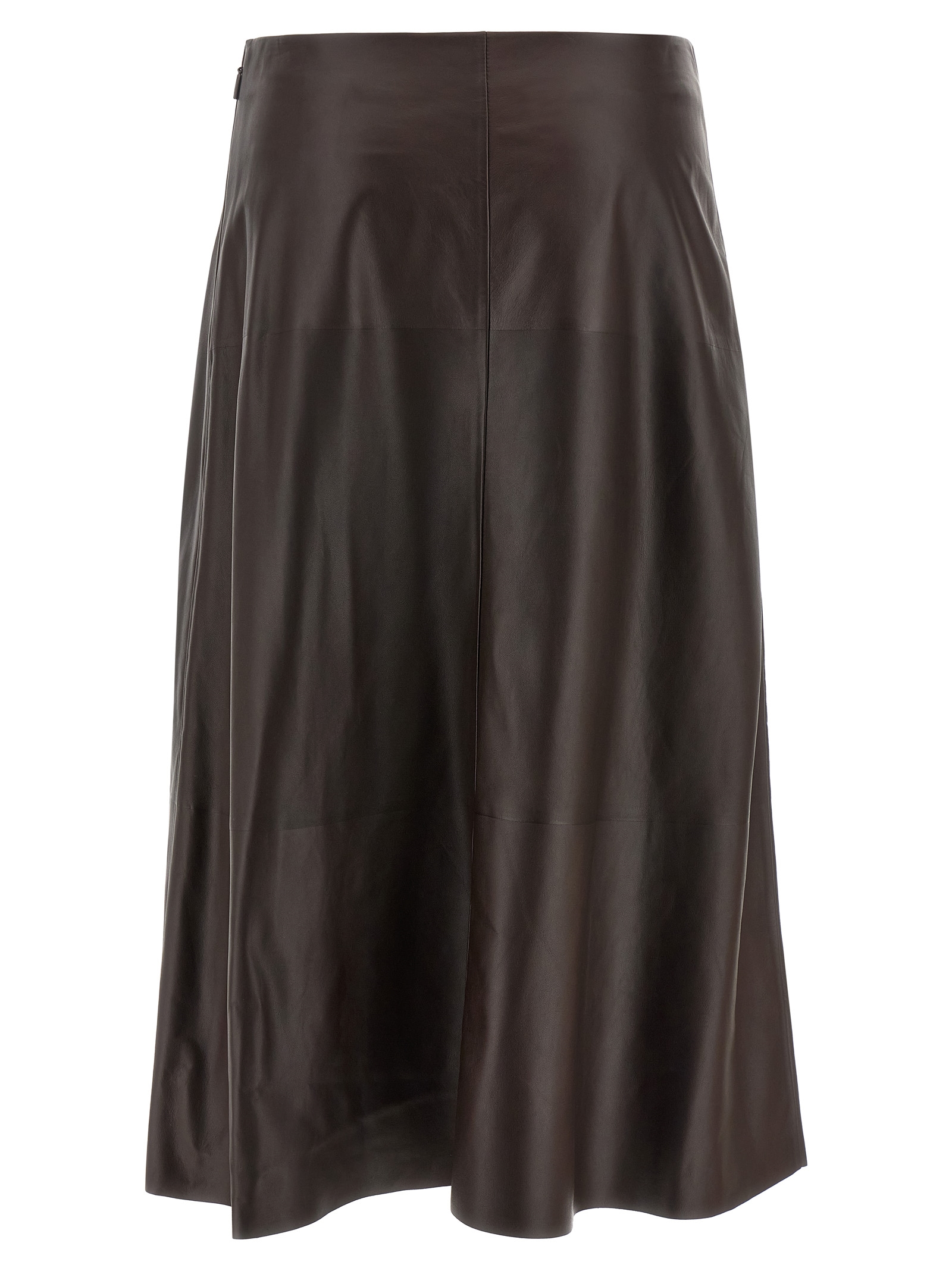 'Hedora' flared midi skirt in leather with side zip and hook closure.