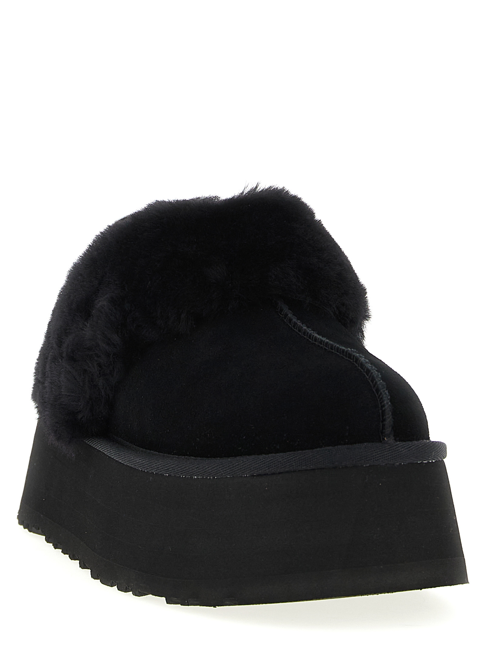 Suede Funkette sabots, sheepskin collar and insole, UGGplush™ lining, back logo elastic strap, EVA midsole, SugarSole™ or Treadlite by UGG™ platform sole.Өнімнің ерекшеліктері