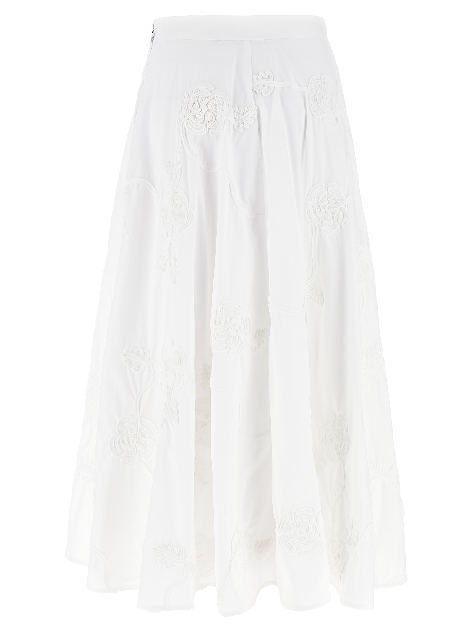 Flower Maxi' high waist midi skirt in cotton with all-over floral tonal embroidery, pockets, side zip closure, and underskirt. SUSTAINABLE: This product is made of organic cotton.