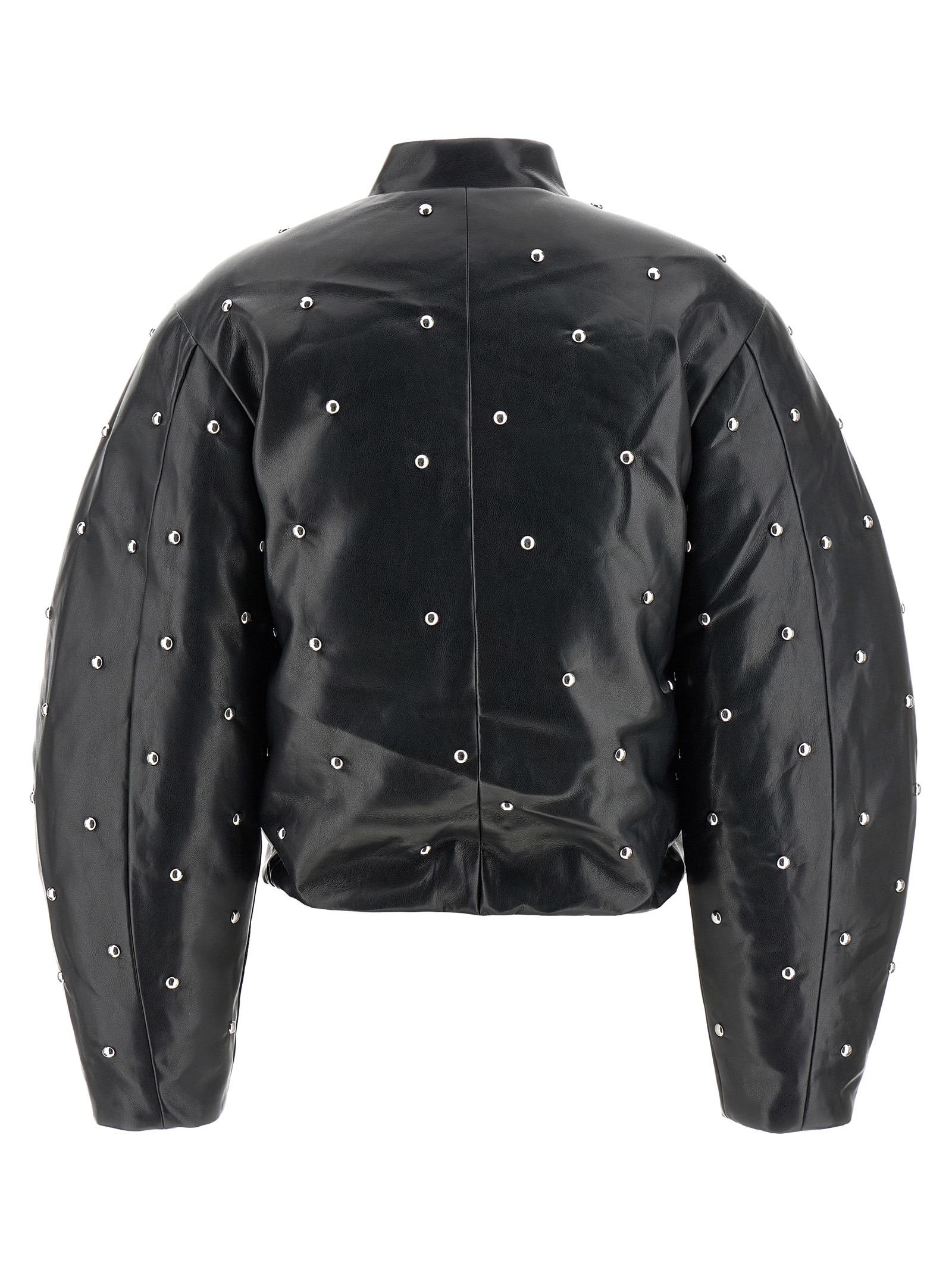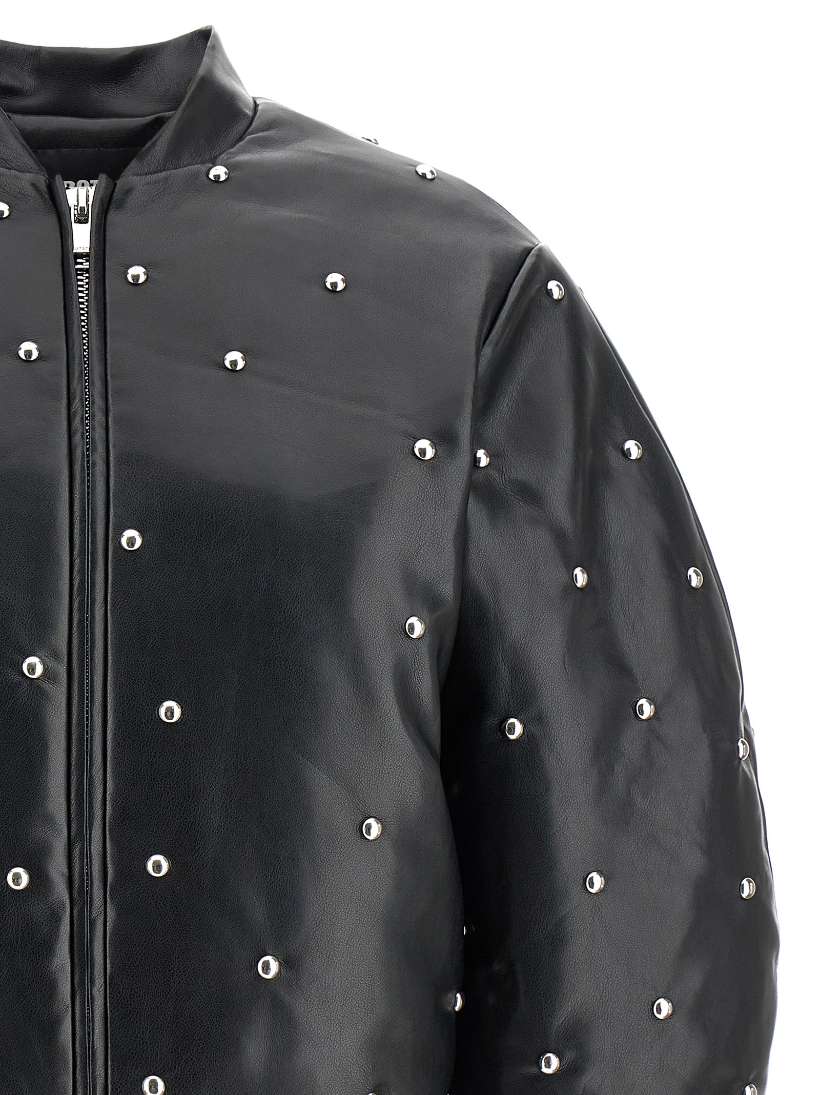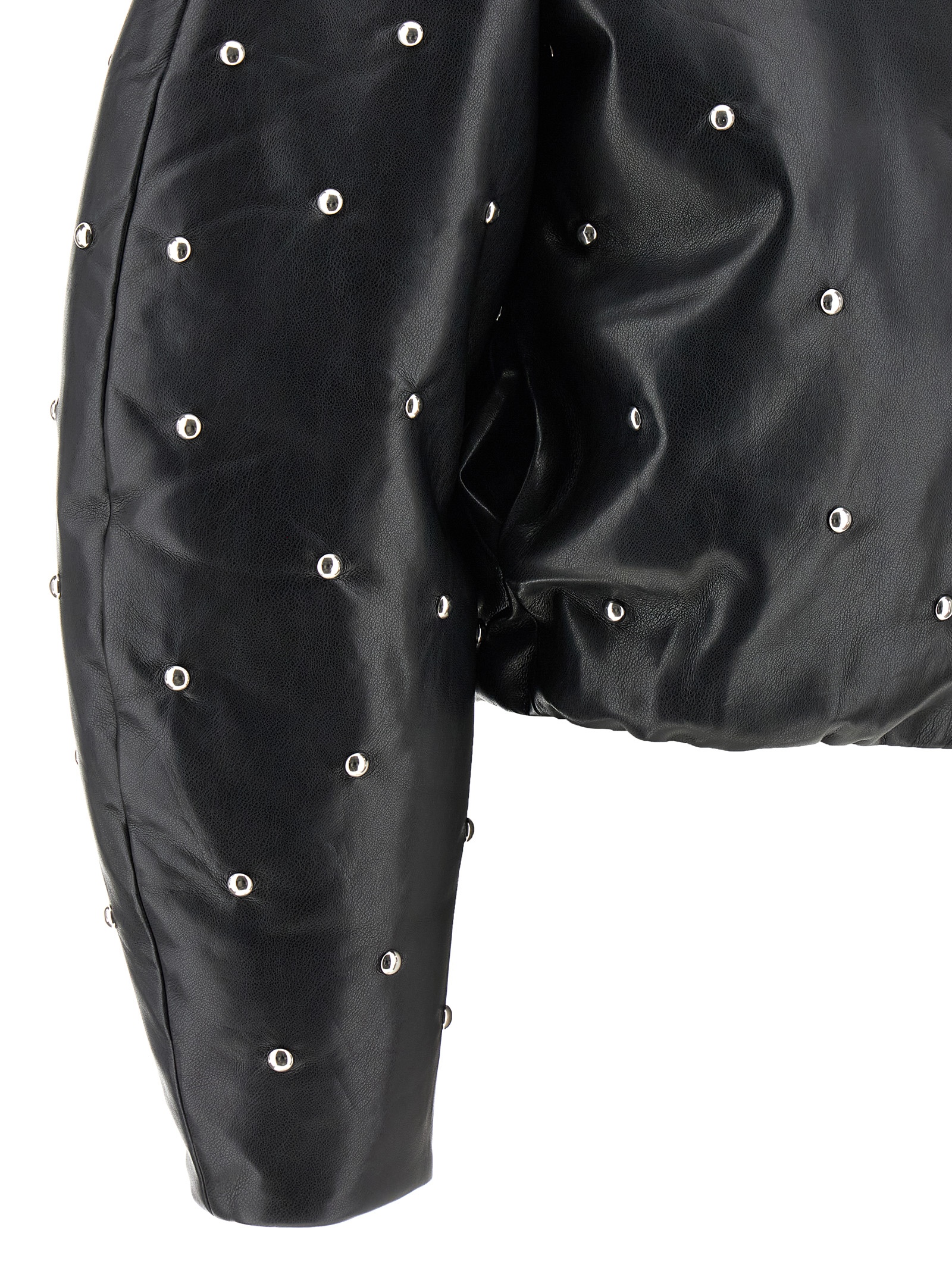 'Studded Padded' bomber jacket in leather-effect fabric with all-over metal stud appliqué, padded lining, crop model, front zip closure, pockets, wide long sleeves.