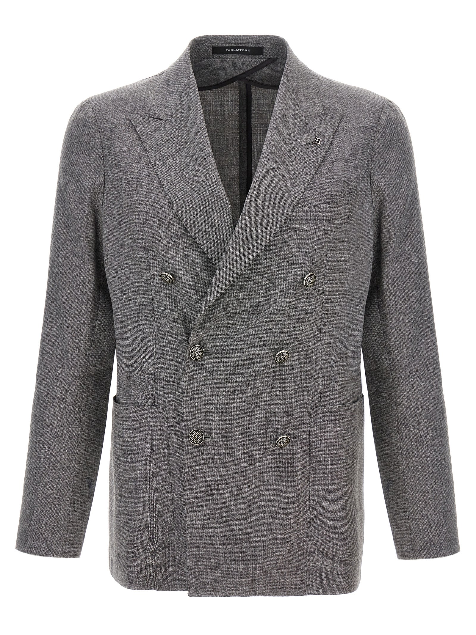 'Montecarlo' blazer in micro opsac wool, double-breasted lapels, button closure, pockets, long sleeves, back vents.